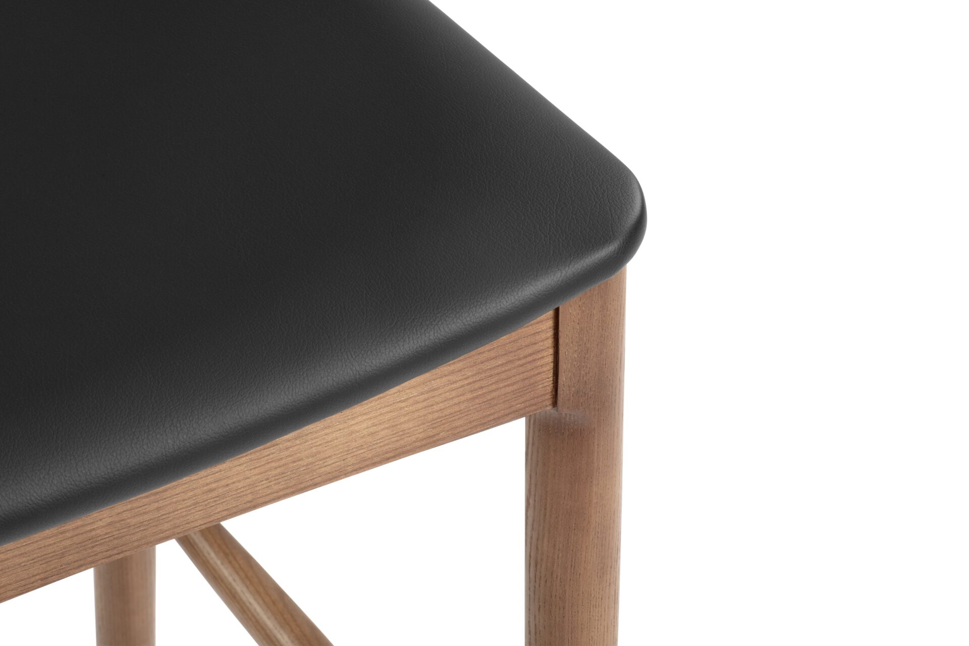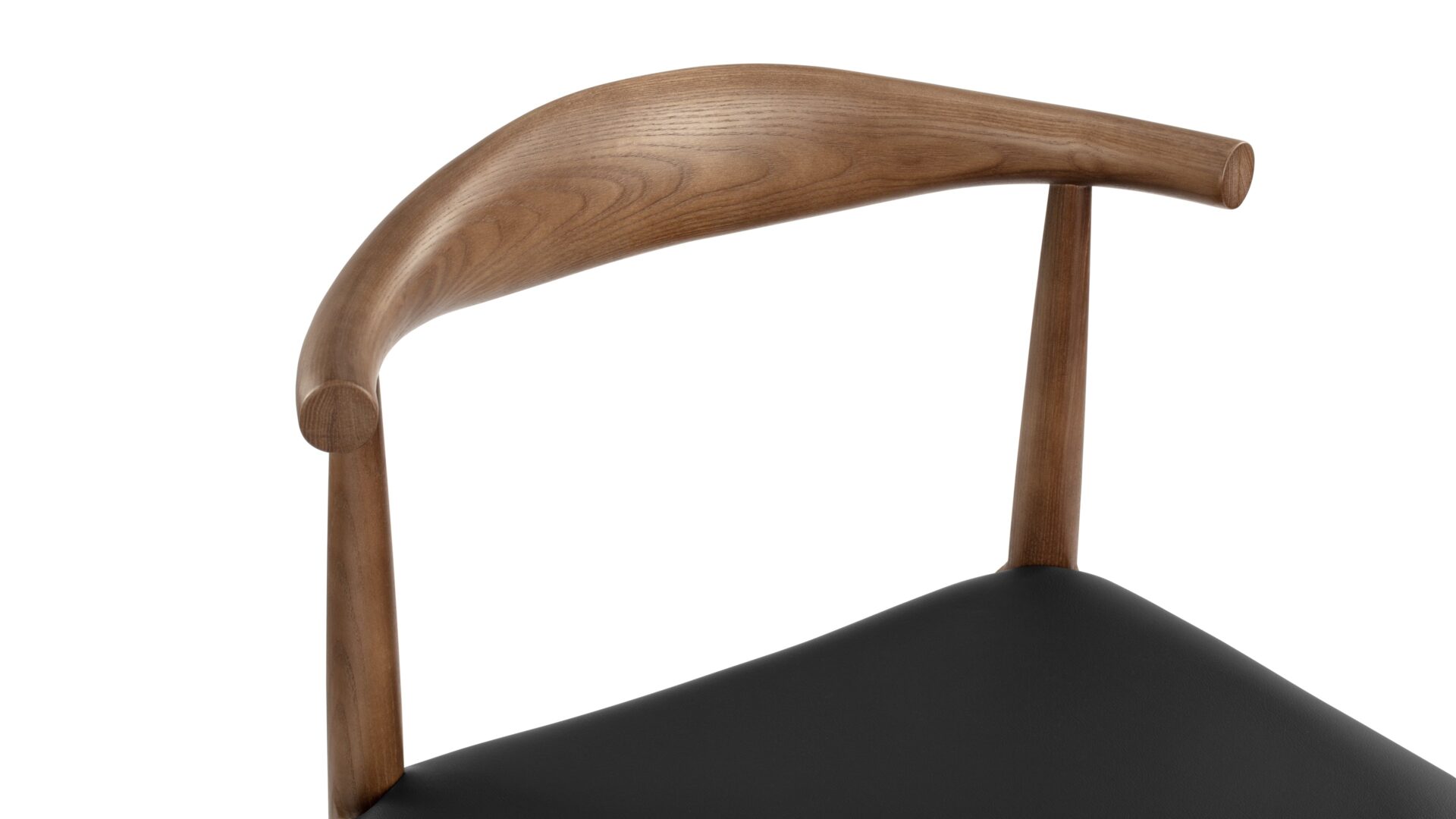 Experience ample back support with this chair, featuring a skillfully steam-bent rounded backrest crafted from a single piece of wood.