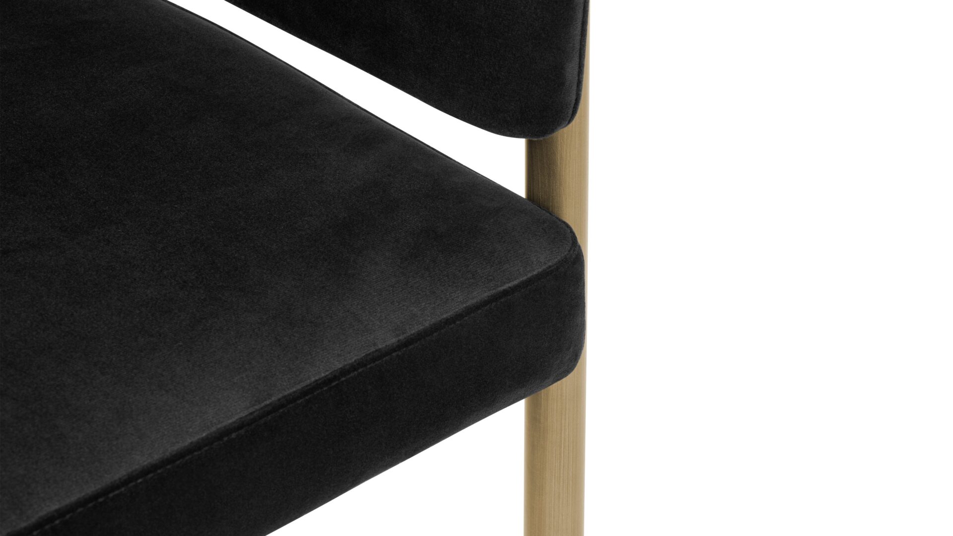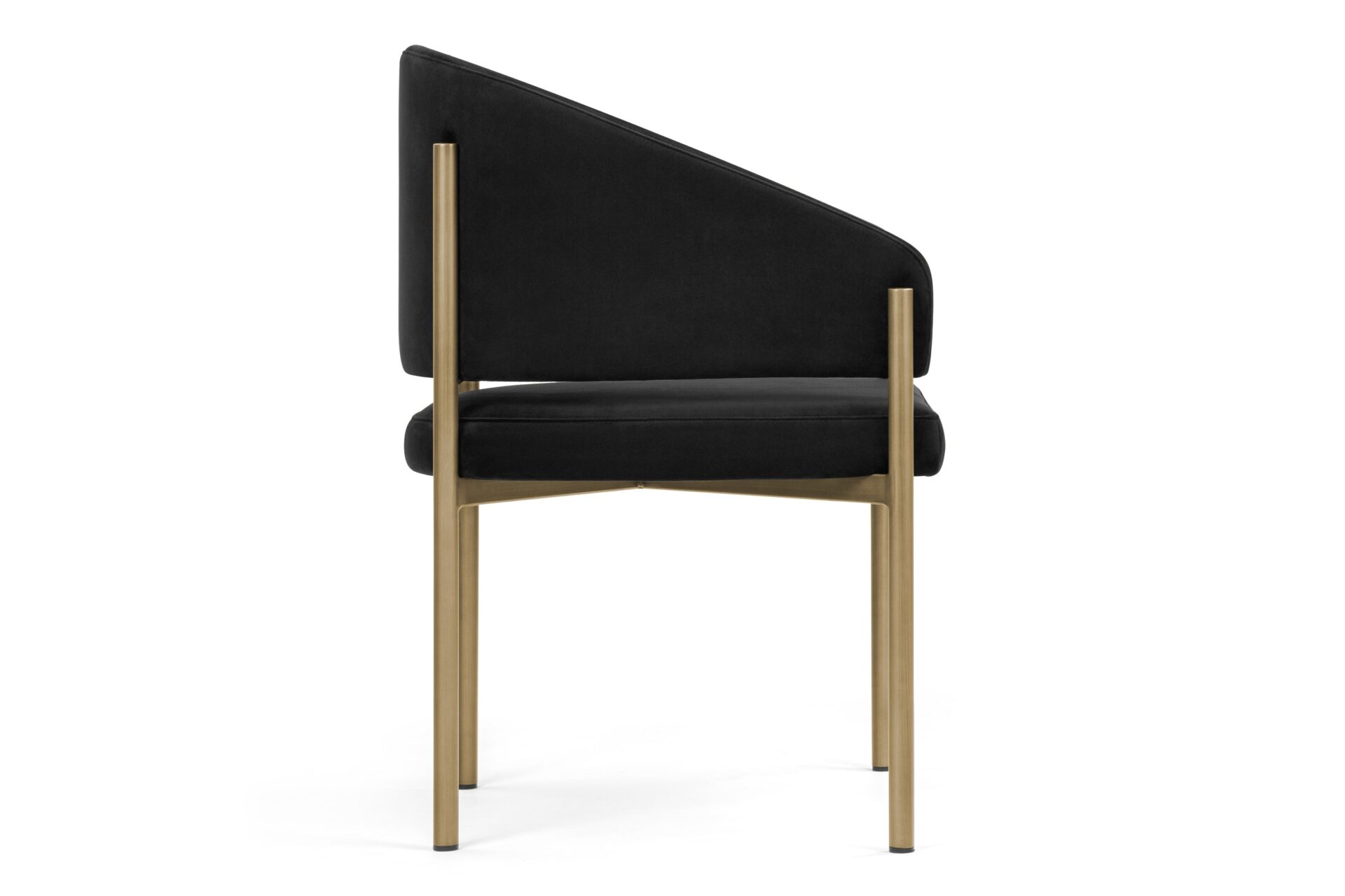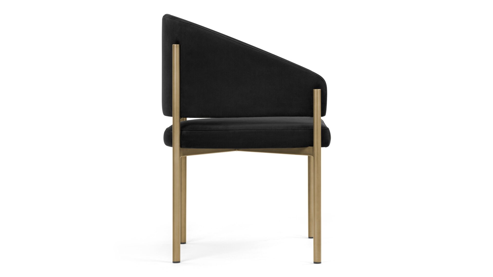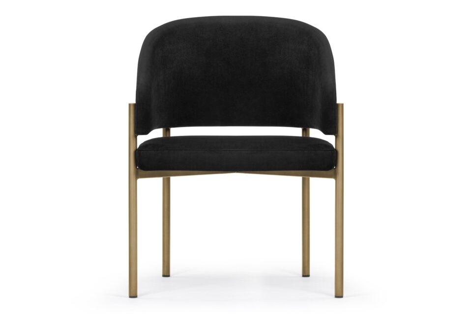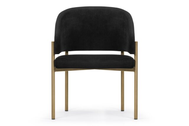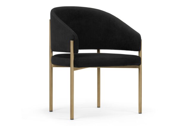Experience unmatched luxury and refined style with the Esme Dining Chair. Crafted with Italian-inspired finesse and available in Black Plush Velvet upholstery, this chair exudes sophistication with its sleek silhouette and modern brushed brass legs. Elevate your dining space with a blend of opulence and comfort, creating a harmonious fusion of textures and tones for a truly elegant dining experience.
