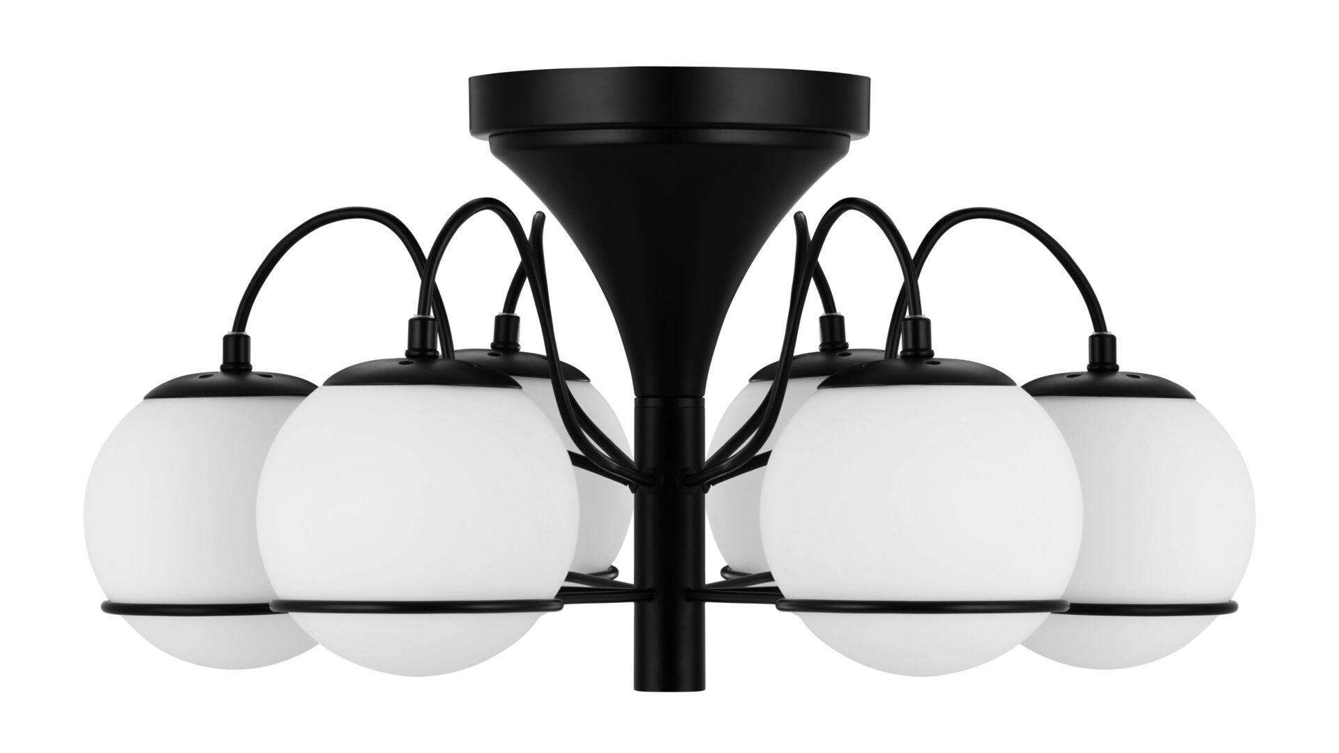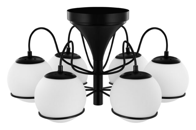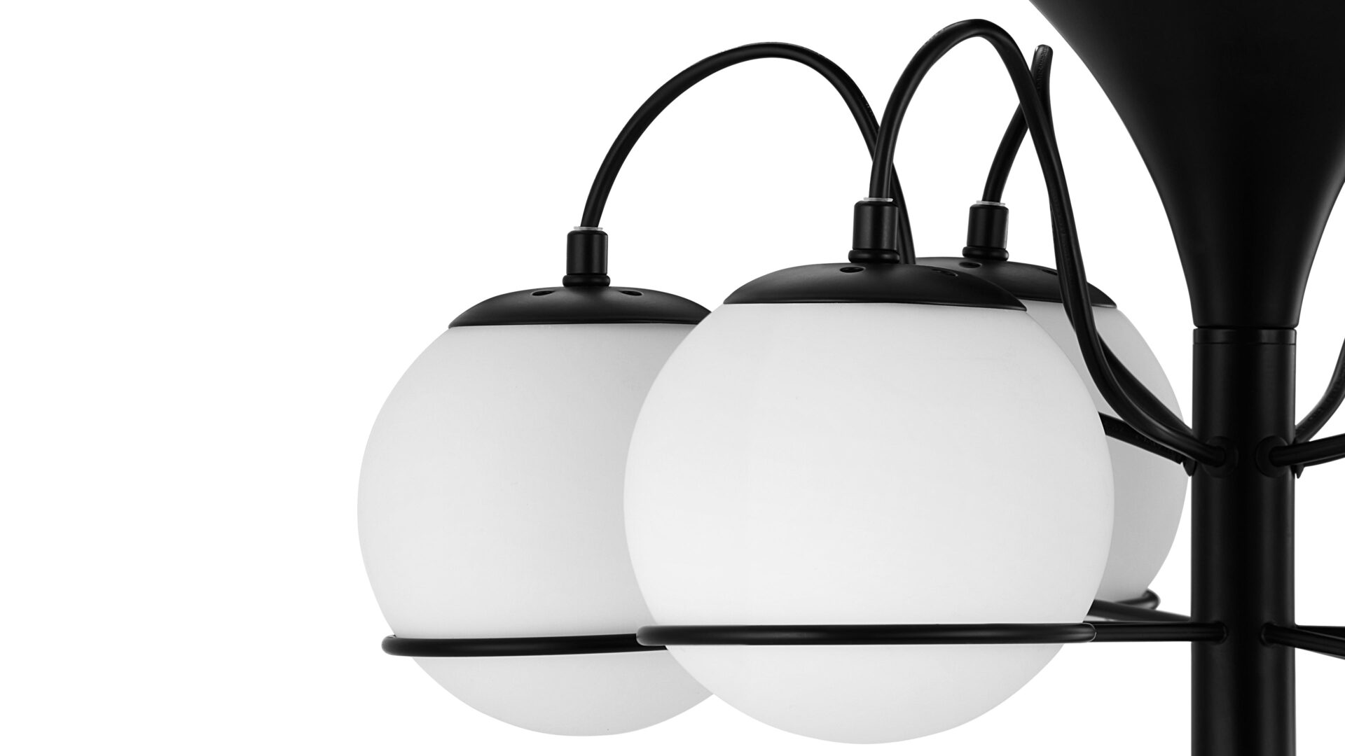 Elevate your living area with the Ette Ceiling Light, a chic chandelier blending style and substance. Crafted from sturdy iron metal with a striking matte black finish, this fixture features delicate white glass globes that cast a soft, welcoming radiance. Its bold yet understated design suits modern interiors, creating a captivating focal point adding an upscale charm to any space.