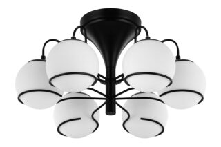Elevate your living area with the Ette Ceiling Light, a chic chandelier blending style and substance. Crafted from sturdy iron metal with a striking matte black finish, this fixture features delicate white glass globes that cast a soft, welcoming radiance. Its bold yet understated design suits modern interiors, creating a captivating focal point adding an upscale charm to any space.