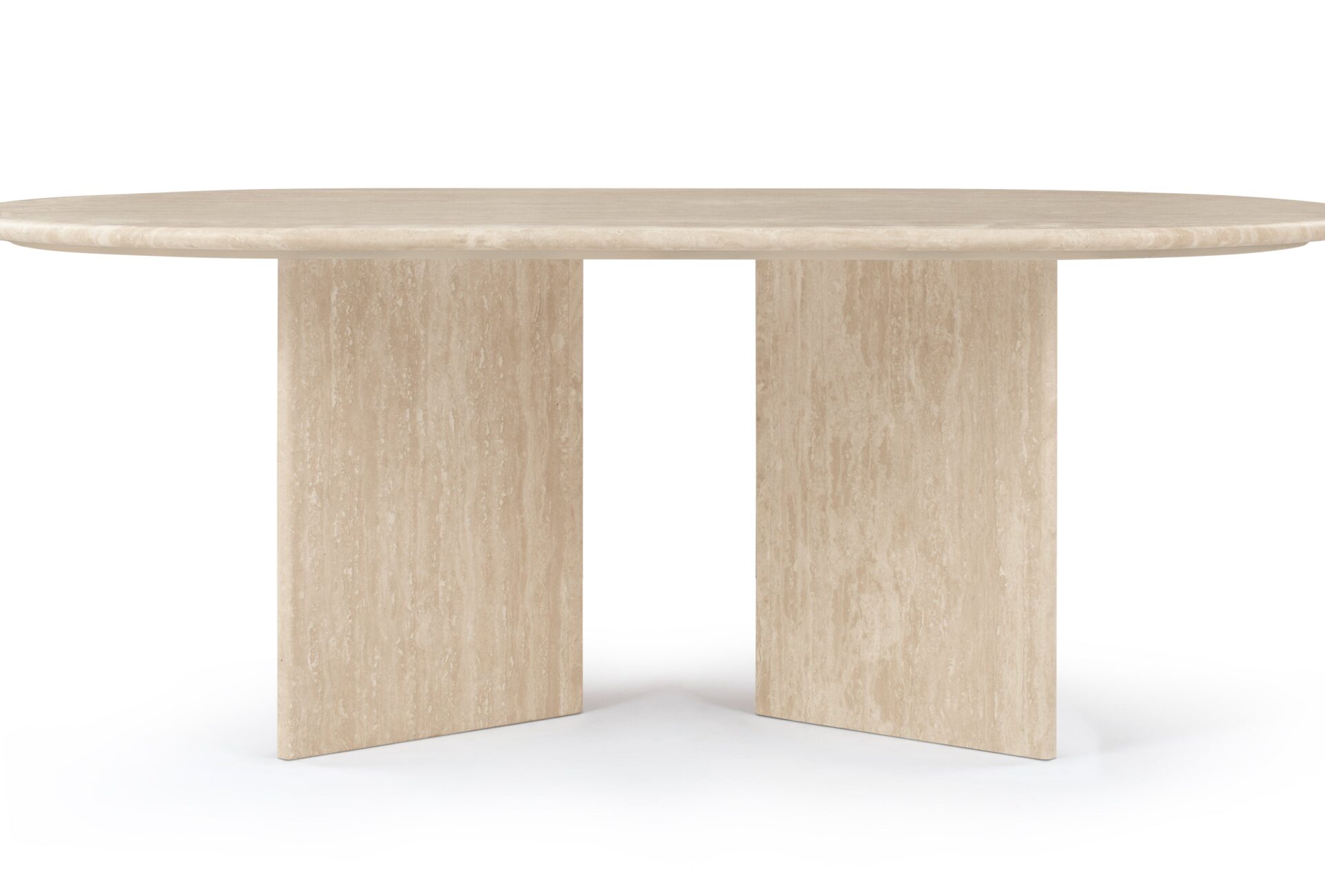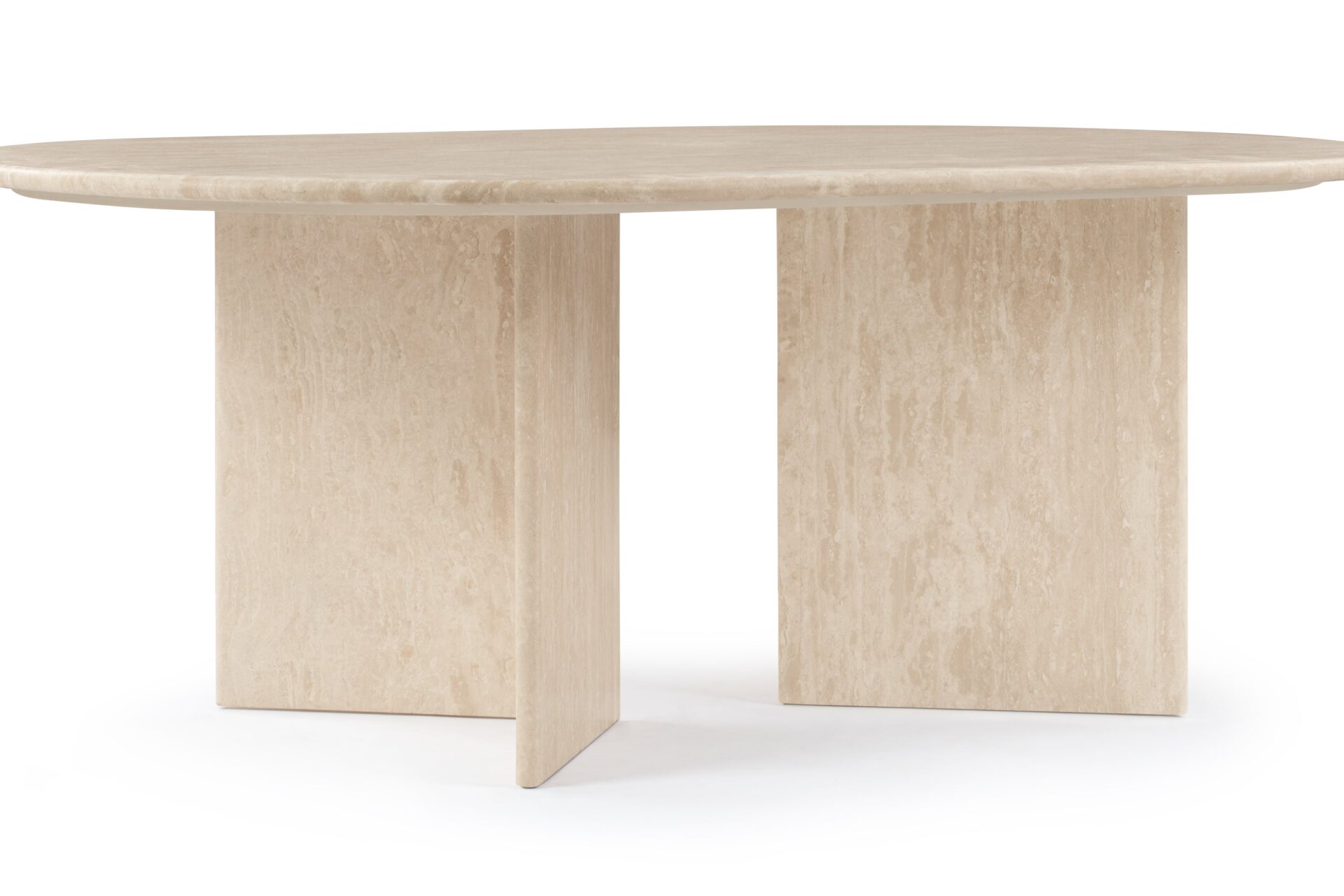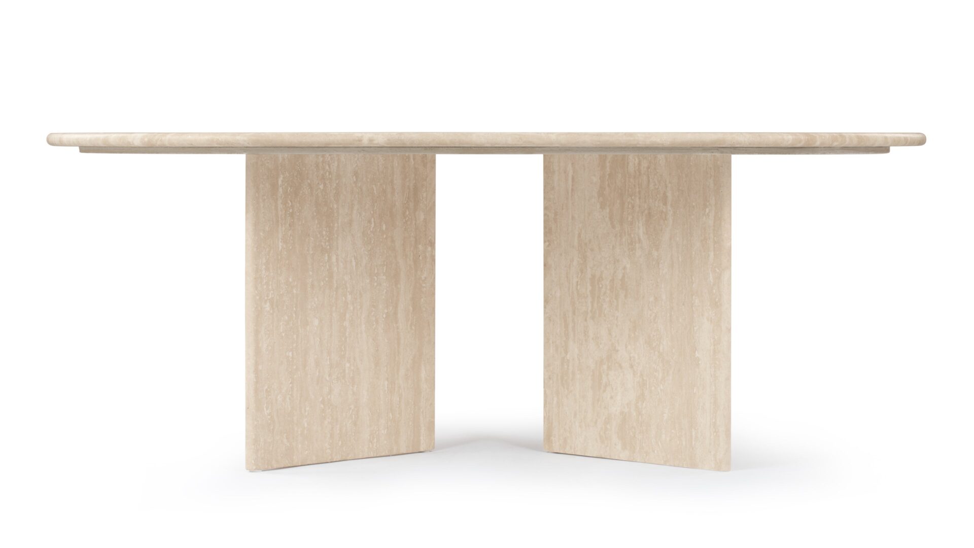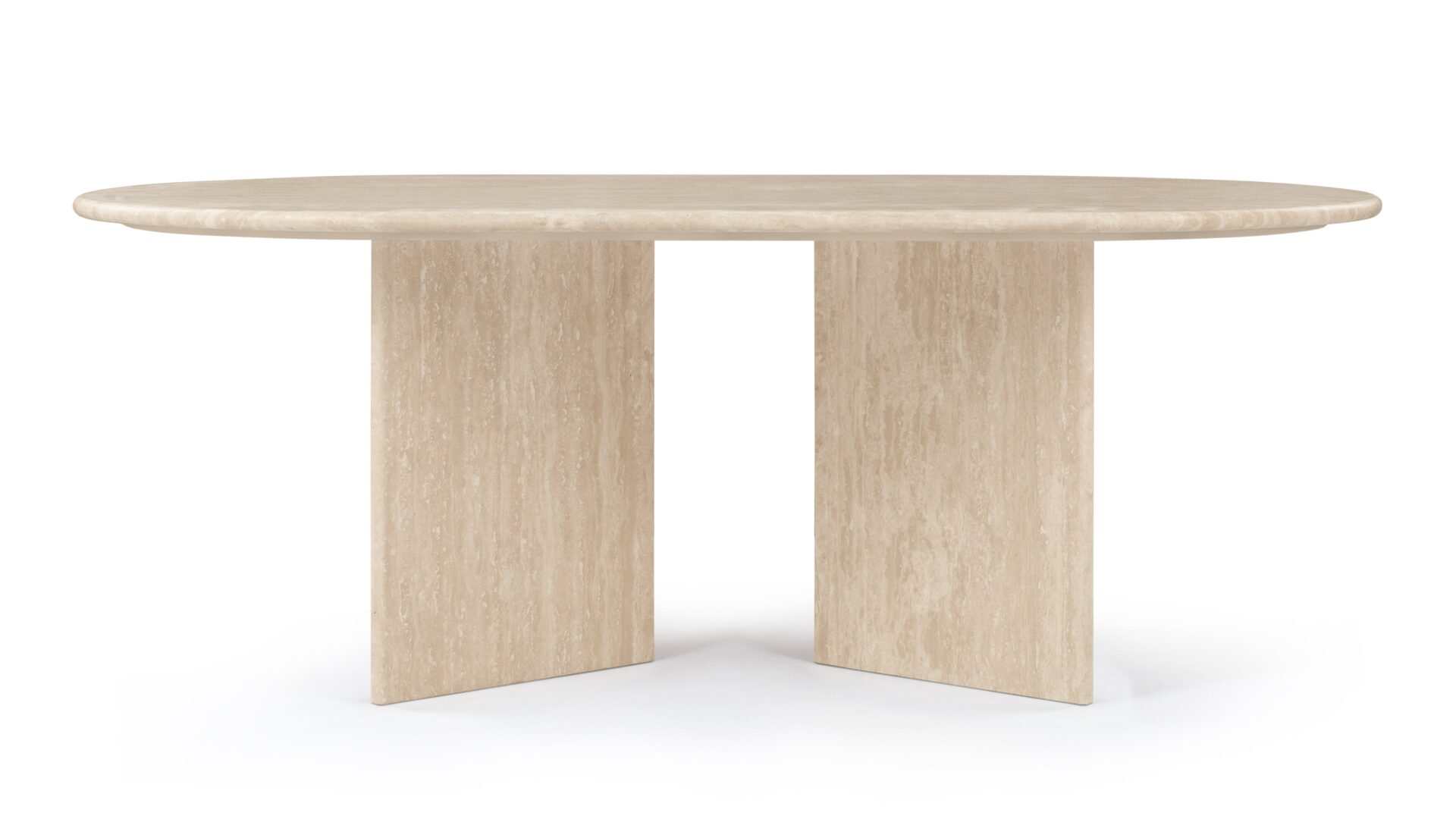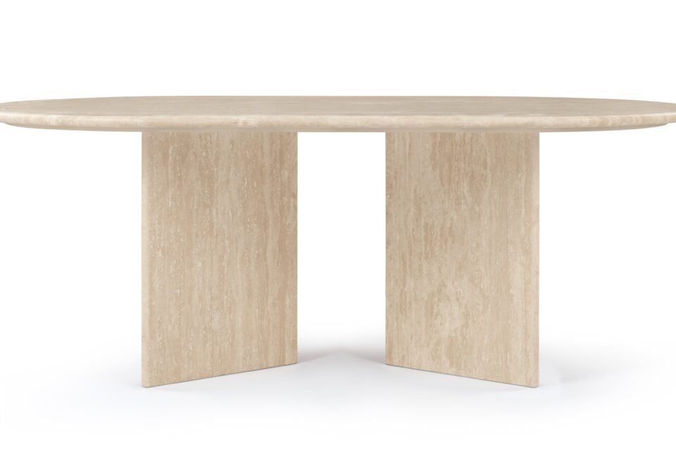Discover the Feltham Coffee Table, a sleek and understated piece expertly constructed from premium travertine stone, revered for its inherent veining and intricate textures. Featuring a lustrous, refined finish, it harmoniously merges organic allure with contemporary design sensibilities. The elongated oval top and architectural, perpendicular base not only ensure stability but also imbue a modern aesthetic. Ideal for harmonizing with a range of décor themes, this table effortlessly elevates the refinement of any living area.