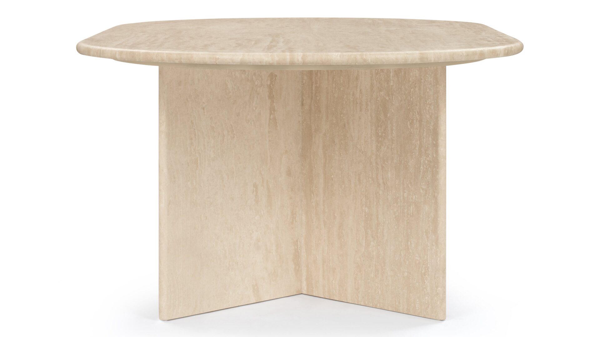 Discover the sophisticated allure of the Feltham Coffee Table, a testament to minimalist elegance that harmoniously blends the natural allure of travertine stone with a sleek and modern sculptural aesthetic. Its elegant light beige tone and lustrous finish effortlessly elevate the ambiance of any contemporary living area.