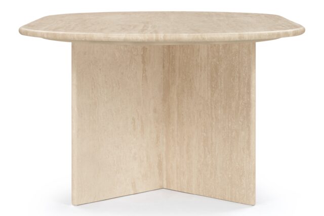 Apt for lounges, its soft beige hue with natural veining effortlessly complements diverse interior styles. This medium-sized table strikes a perfect balance between practicality and sophistication, serving as a striking focal point to accentuate the natural splendor of raw materials.