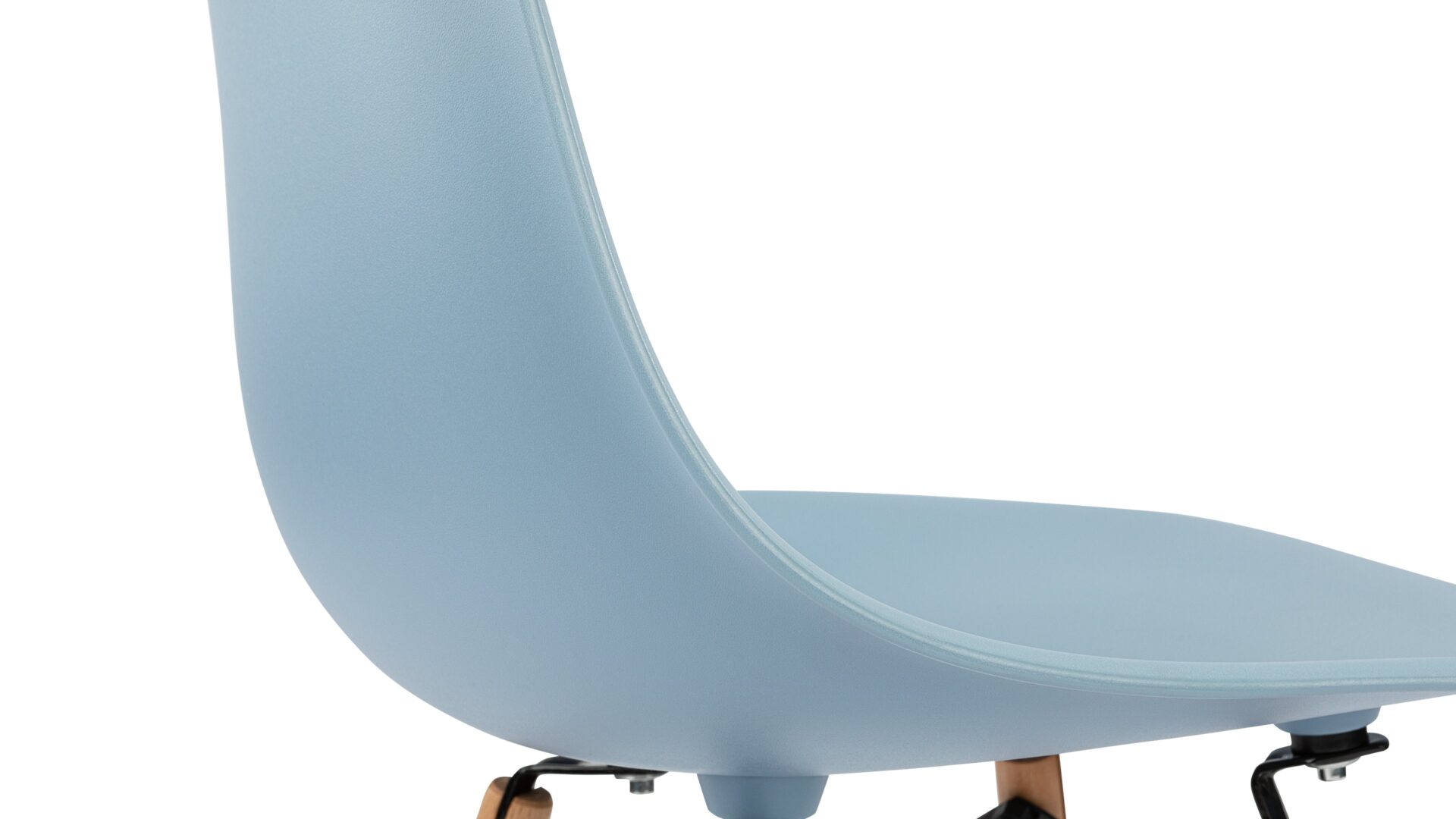 Indulge in the exquisite design of the Flynn Chair, where elegance seamlessly intertwines with simplicity, setting it apart from the rest. The molded plastic seat in a captivating blue hue, highlighted by the sturdy wooden legs, forms a stylish contrast that exudes sophistication. Its bent wire legs are not just about aesthetics; they provide unparalleled support and durability, ensuring a harmonious balance of style, comfort, and ergonomics. Available in a chic blue finish, the Flynn Chair is a timeless piece that promises both style and functionality, making it an exceptional choice for any space.