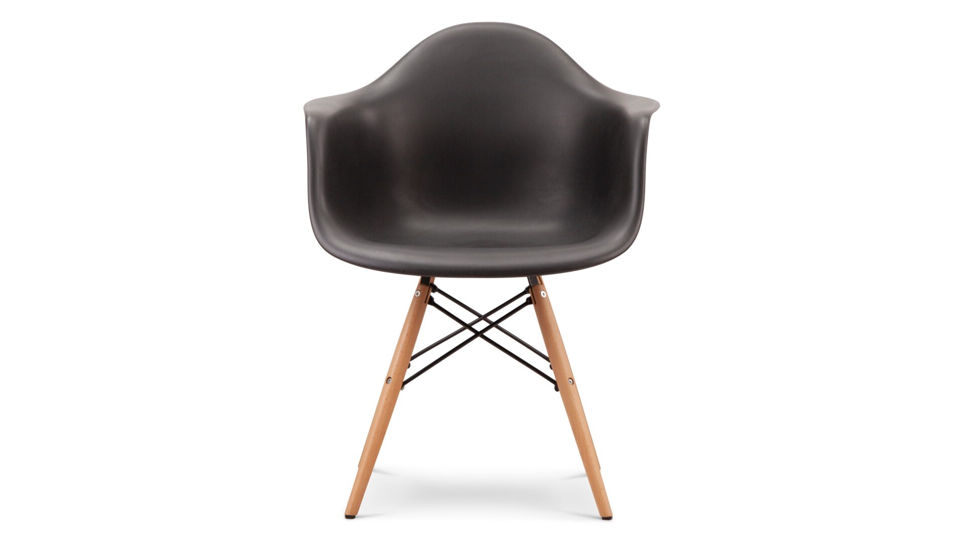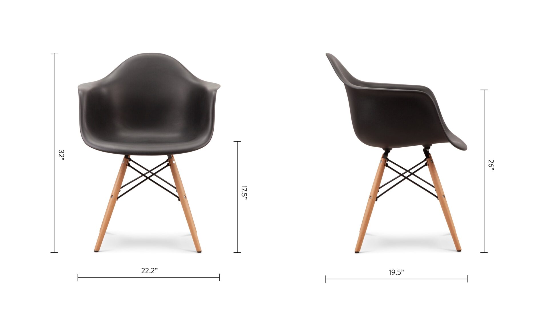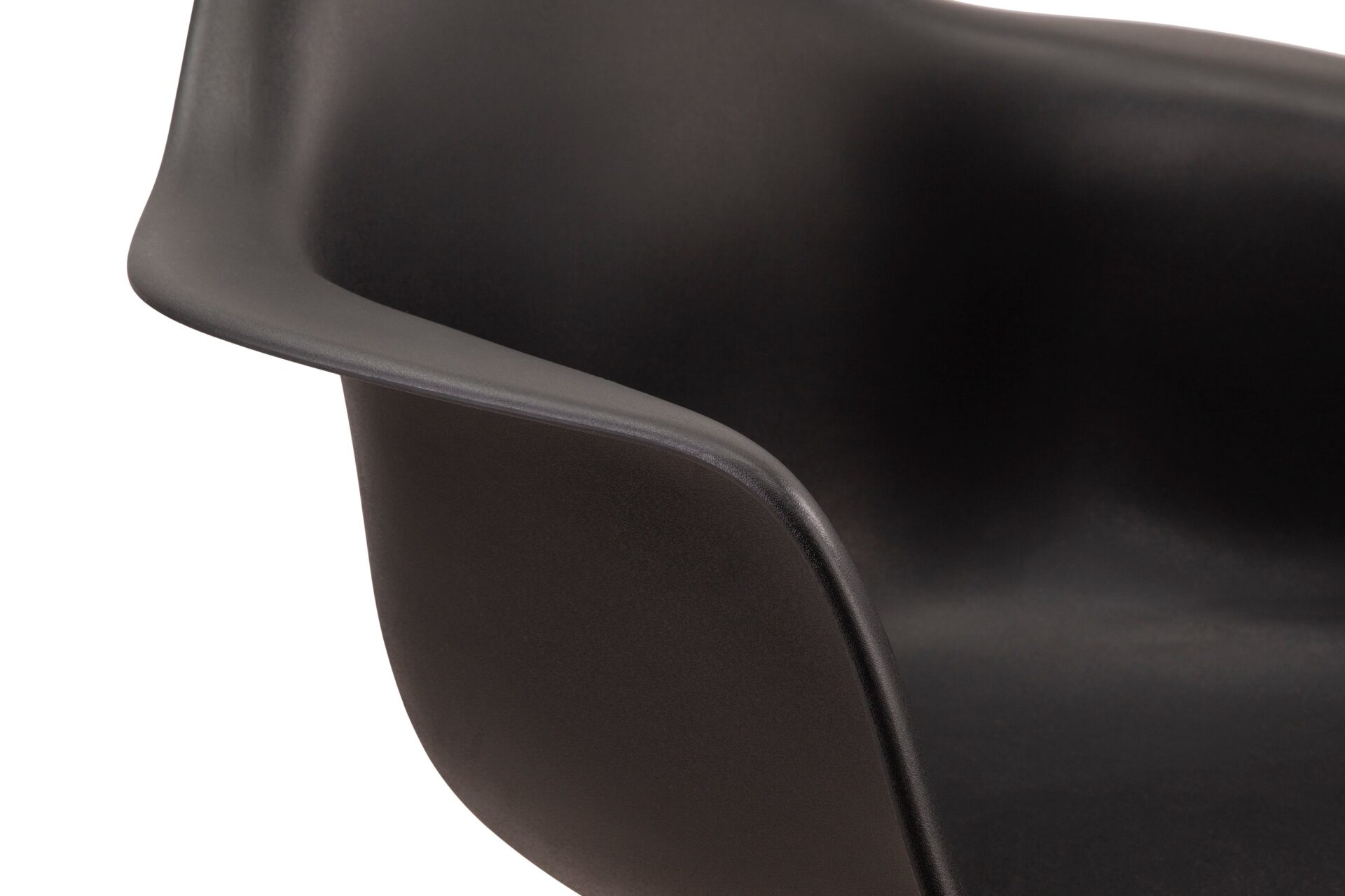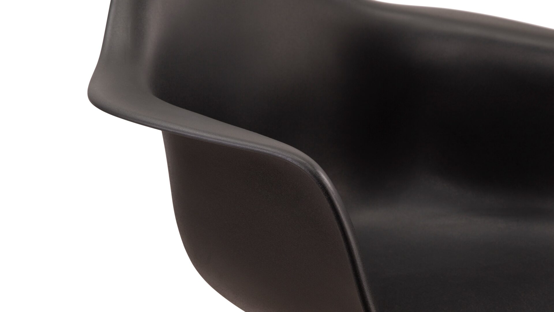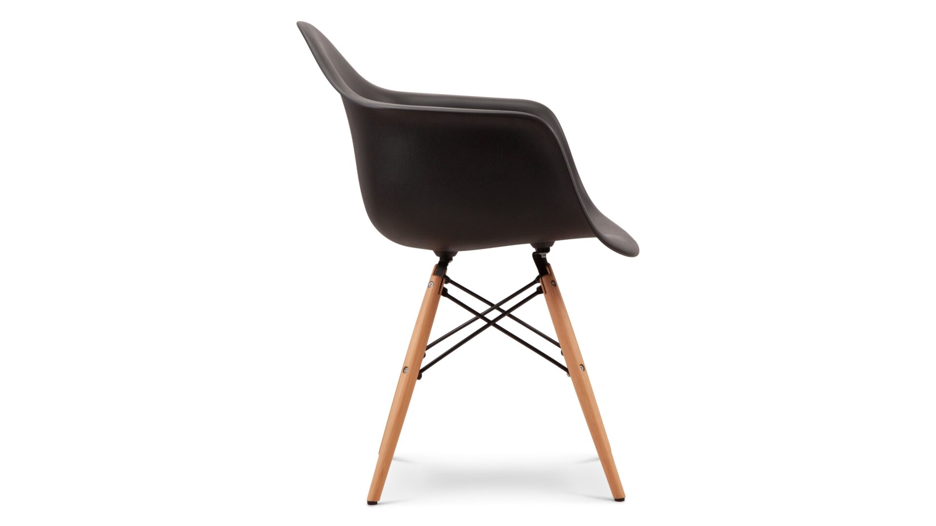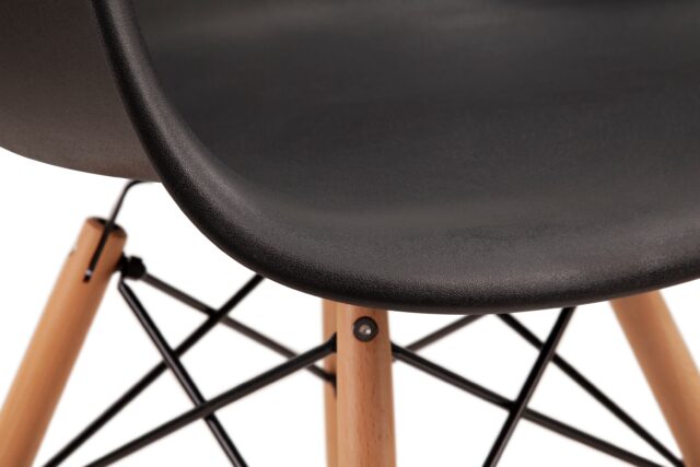 While significant focus is placed on the Flynn Side Chair within the range of plastic molded chairs, the Flynn Armchair stands out as a similarly stylish and practical addition to the series. Distinguished by its armrests for enhanced comfort unlike the Side Chair version, this chair boasts a seat held up by four exquisitely sculpted wooden legs, complemented by steel wire reinforcement for added durability.