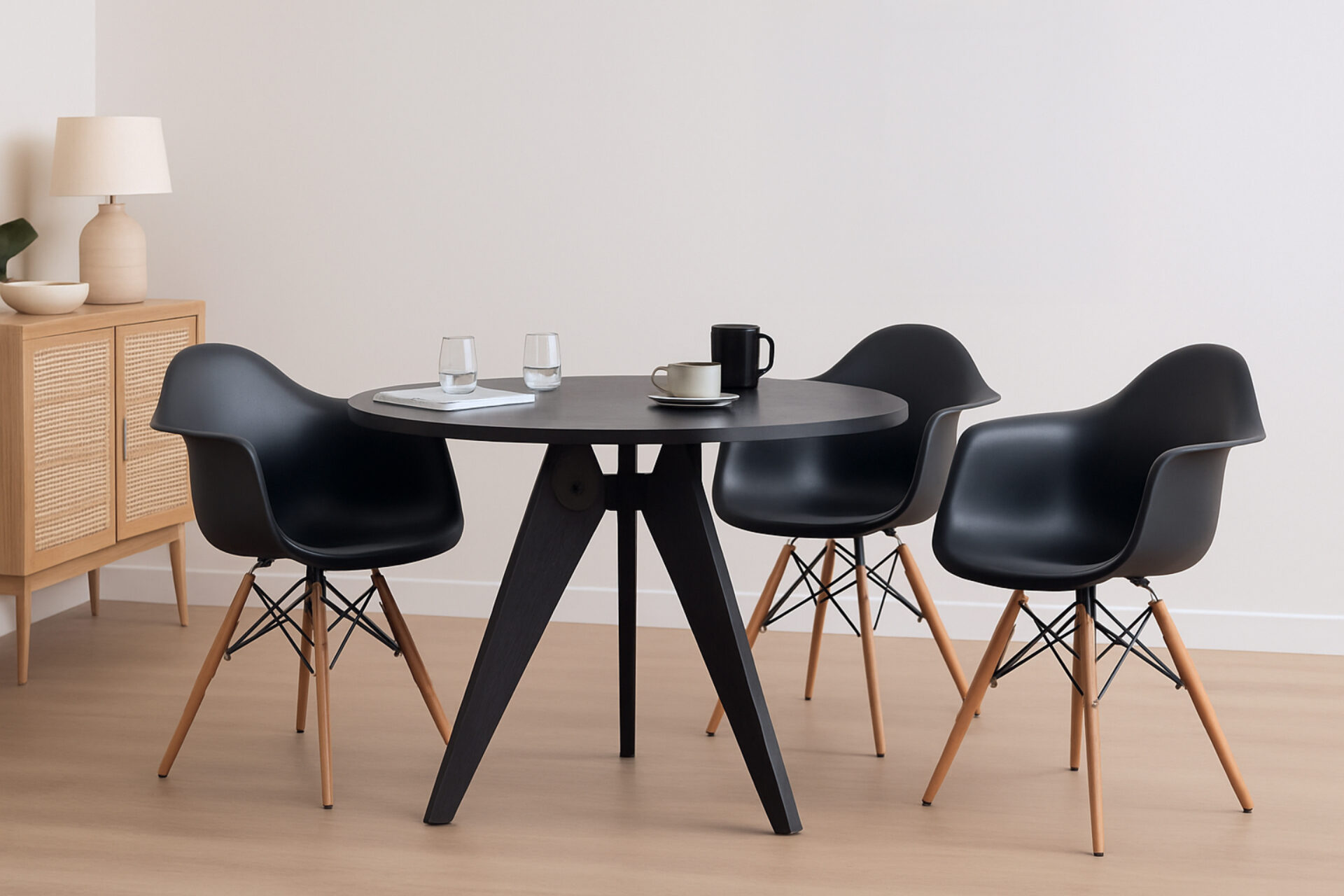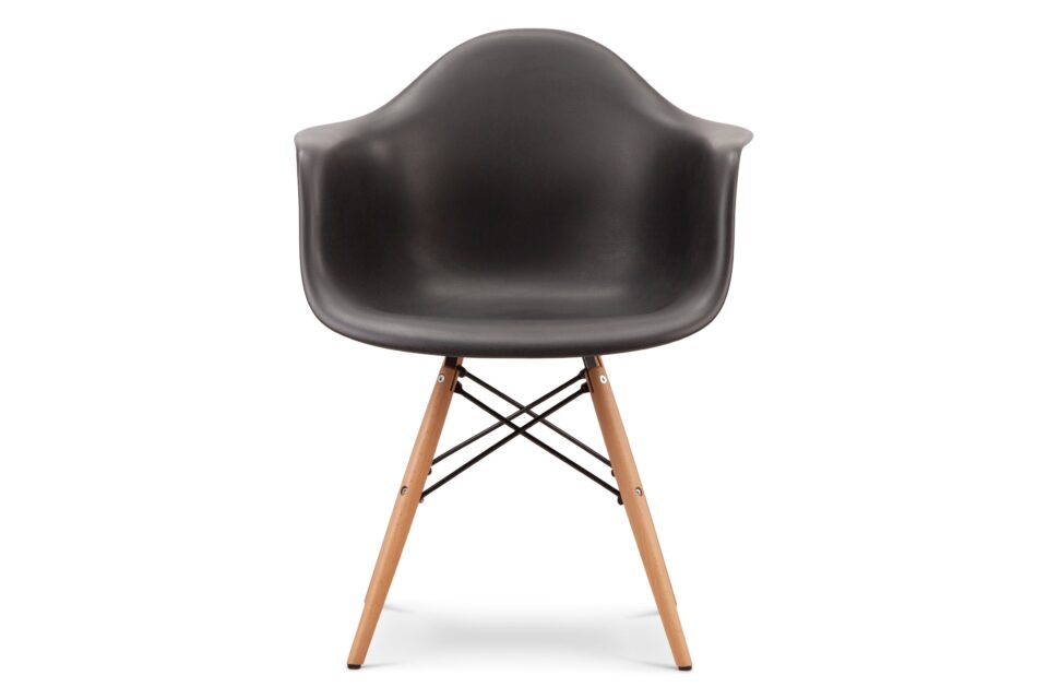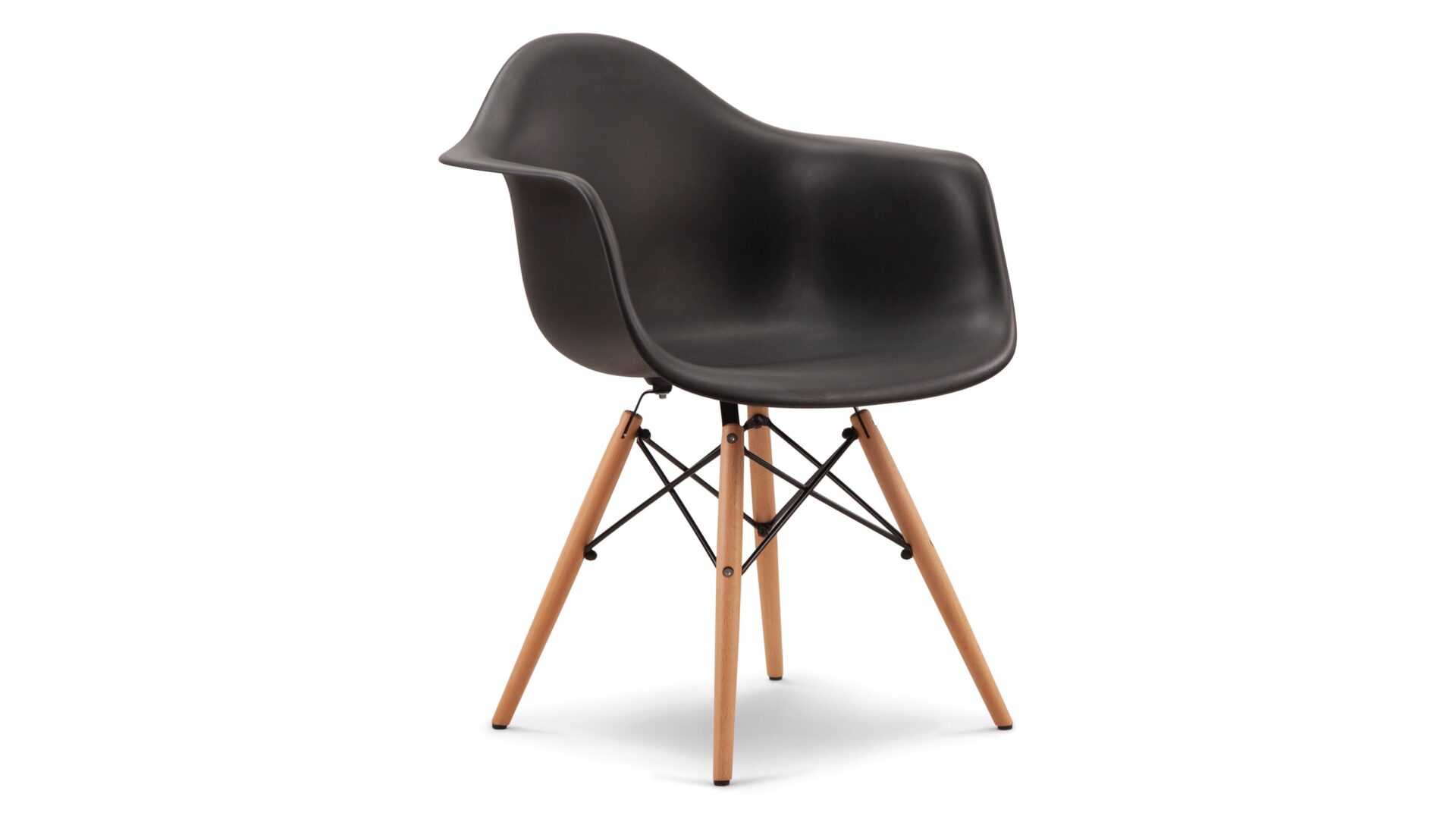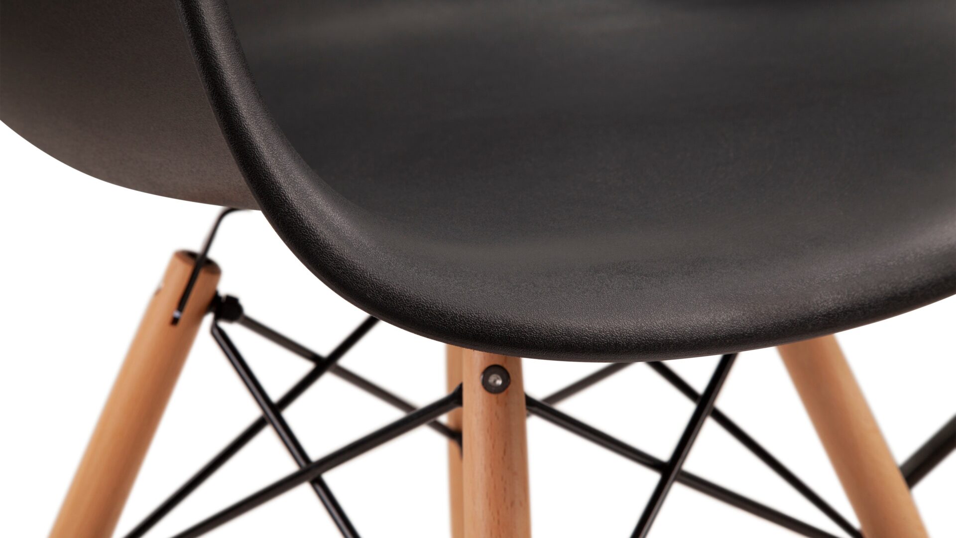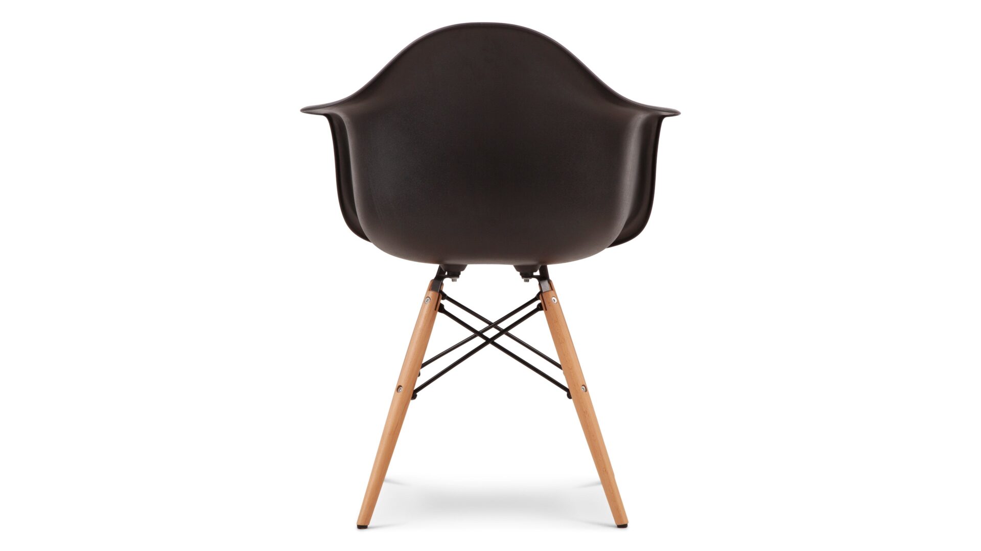 While significant focus is placed on the Flynn Side Chair within the range of plastic molded chairs, the Flynn Armchair stands out as a similarly stylish and practical addition to the series. Distinguished by its armrests for enhanced comfort unlike the Side Chair version, this chair boasts a seat held up by four exquisitely sculpted wooden legs, complemented by steel wire reinforcement for added durability.