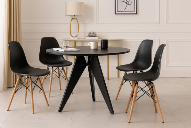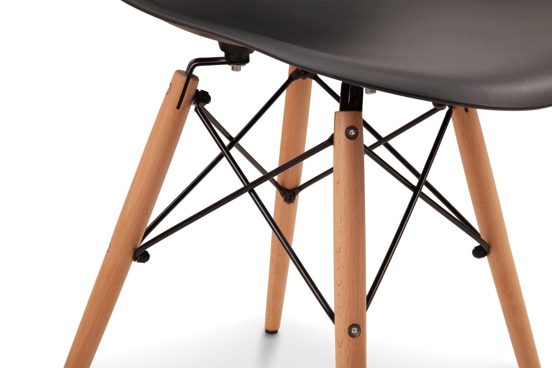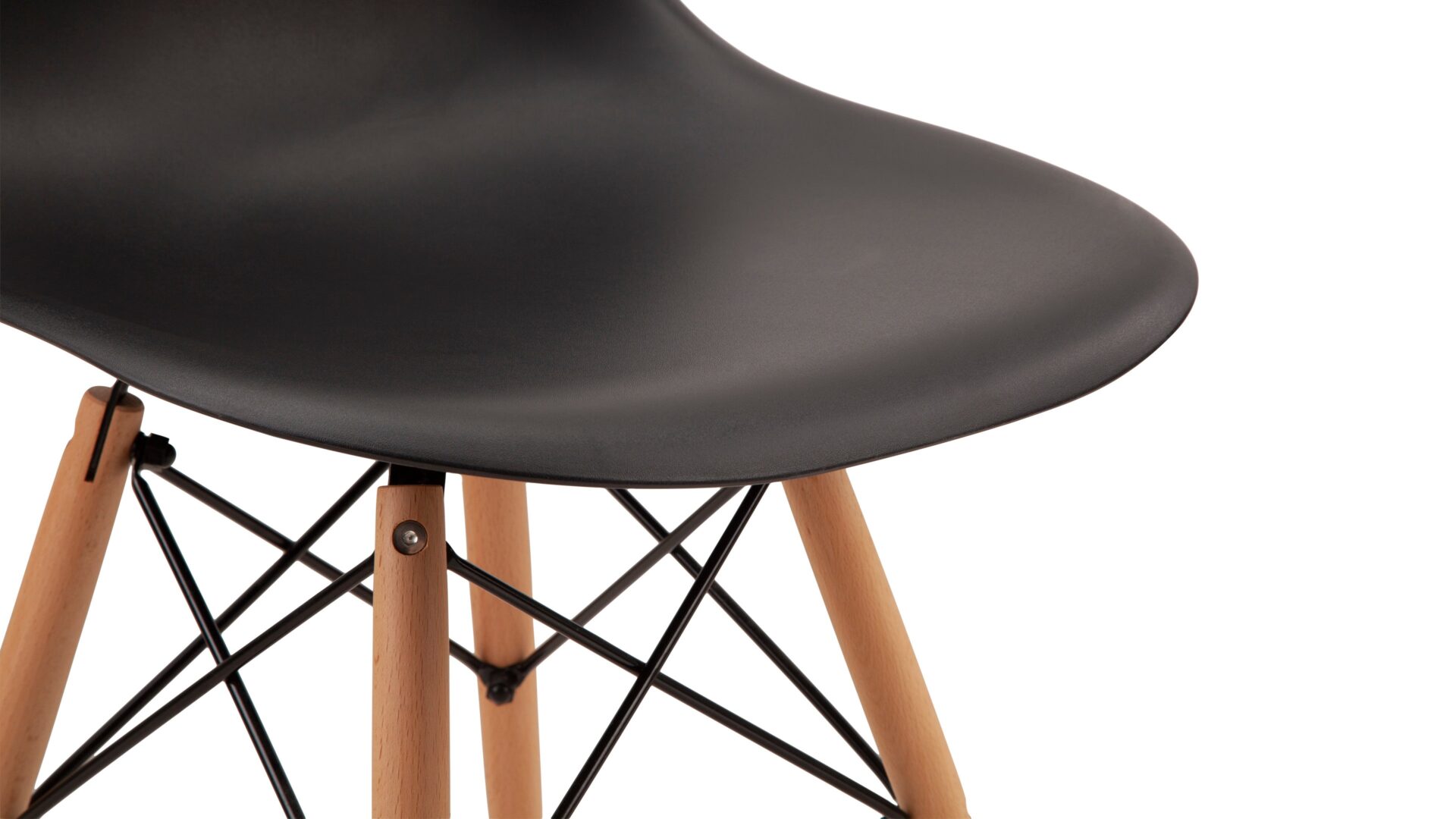 Experience the sophisticated design of the Flynn Chair, where elegance meets simplicity unlike any other. The molded plastic seat, in stylish black, offers delightful comfort, harmonizing with the sturdy wooden legs featuring a contrasting black finish. The bent wire construction strengthens the legs, creating a blend of ergonomics, aesthetics, and comfort that is unparalleled.