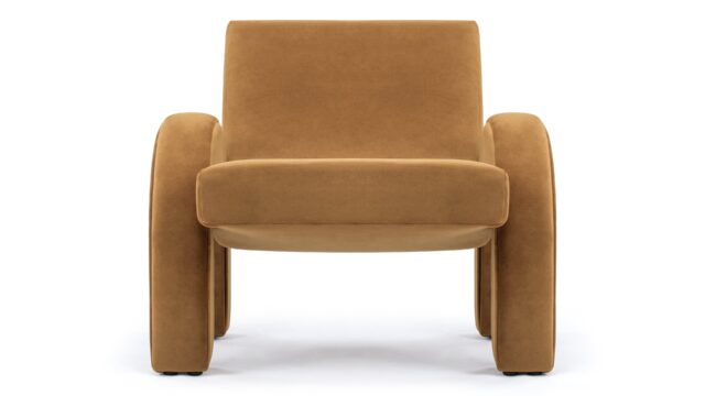 Experience the exquisite design of the Giocosa Side Chair, a delightful fusion of mid-century aesthetics. Its defining feature is a unique circular cutout on the round backrest, elegantly connecting the two back legs. The chair exudes sophistication with its combination of luxurious fabrics and premium wood finishes, making each piece a refined statement of elegance.