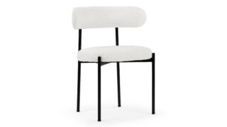 Experience ultimate style and comfort with the Hanna Dining Chair. Featuring a distinctive doughnut-shaped backrest with thick padding, this chair offers exceptional support. Upholstered in cozy warm white boucle, it exudes luxury with a sleek, minimalist look.