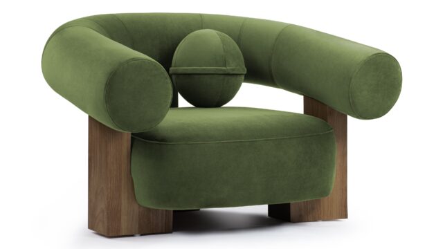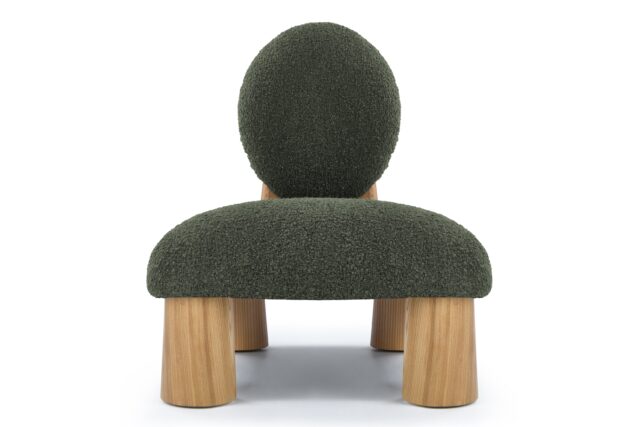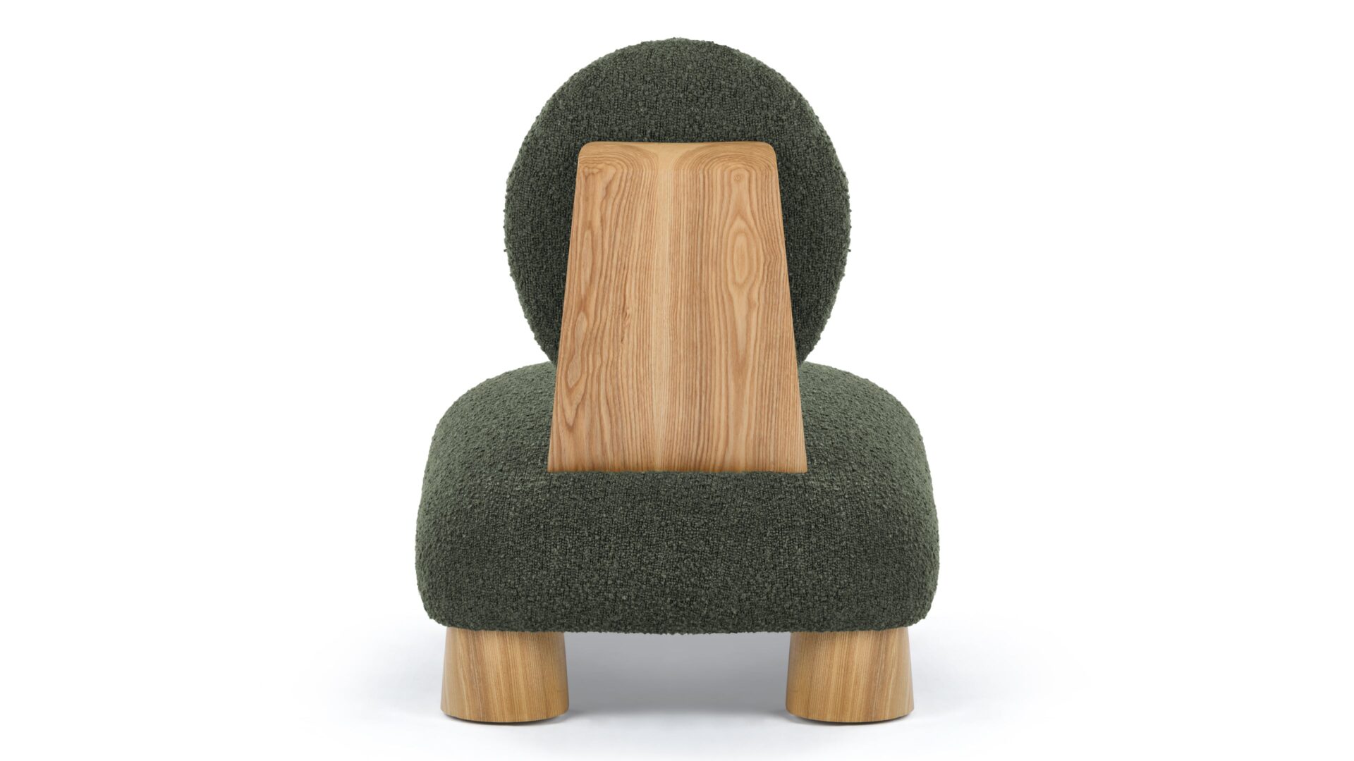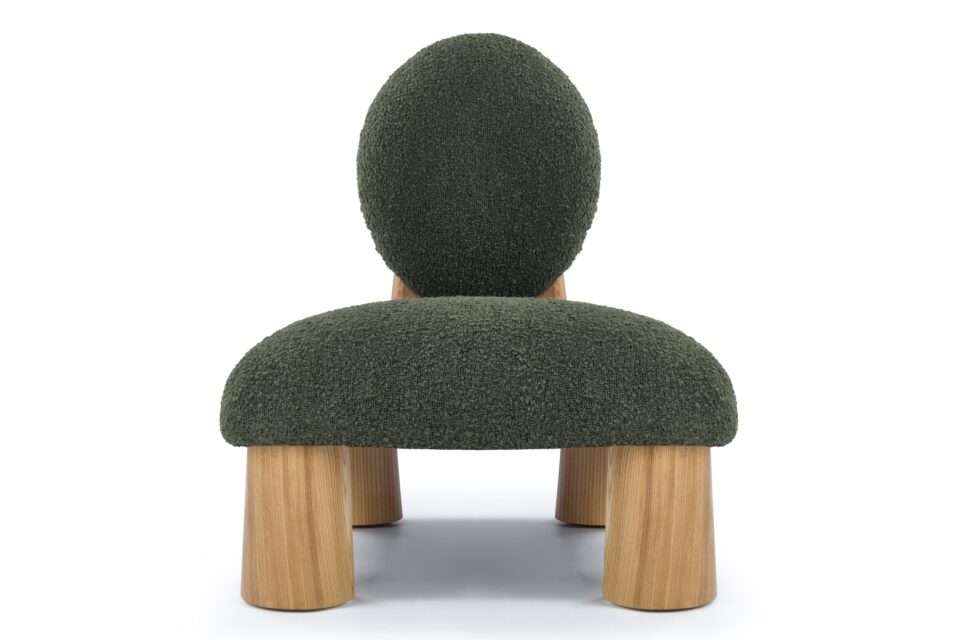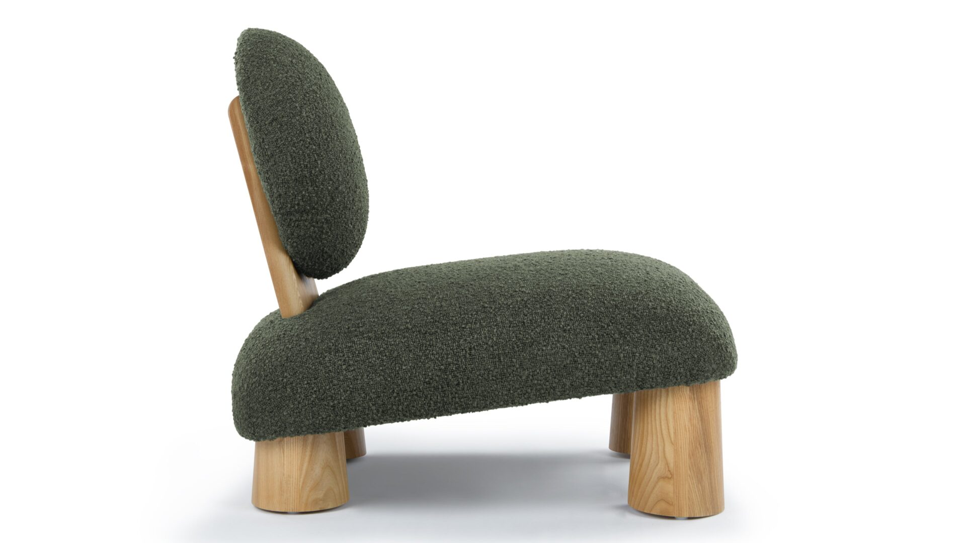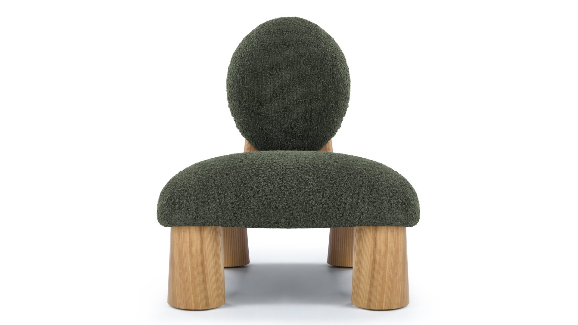 Experience a seamless fusion of modern aesthetics and comfort with the Hayes Lounge Chair. Upholstered in a luxurious dark green boucle fabric, this chair showcases a unique round backrest that exudes a bold yet welcoming appeal. Complemented by wide wooden legs, the Hayes Lounge Chair effortlessly brings a natural and grounded look to any space.