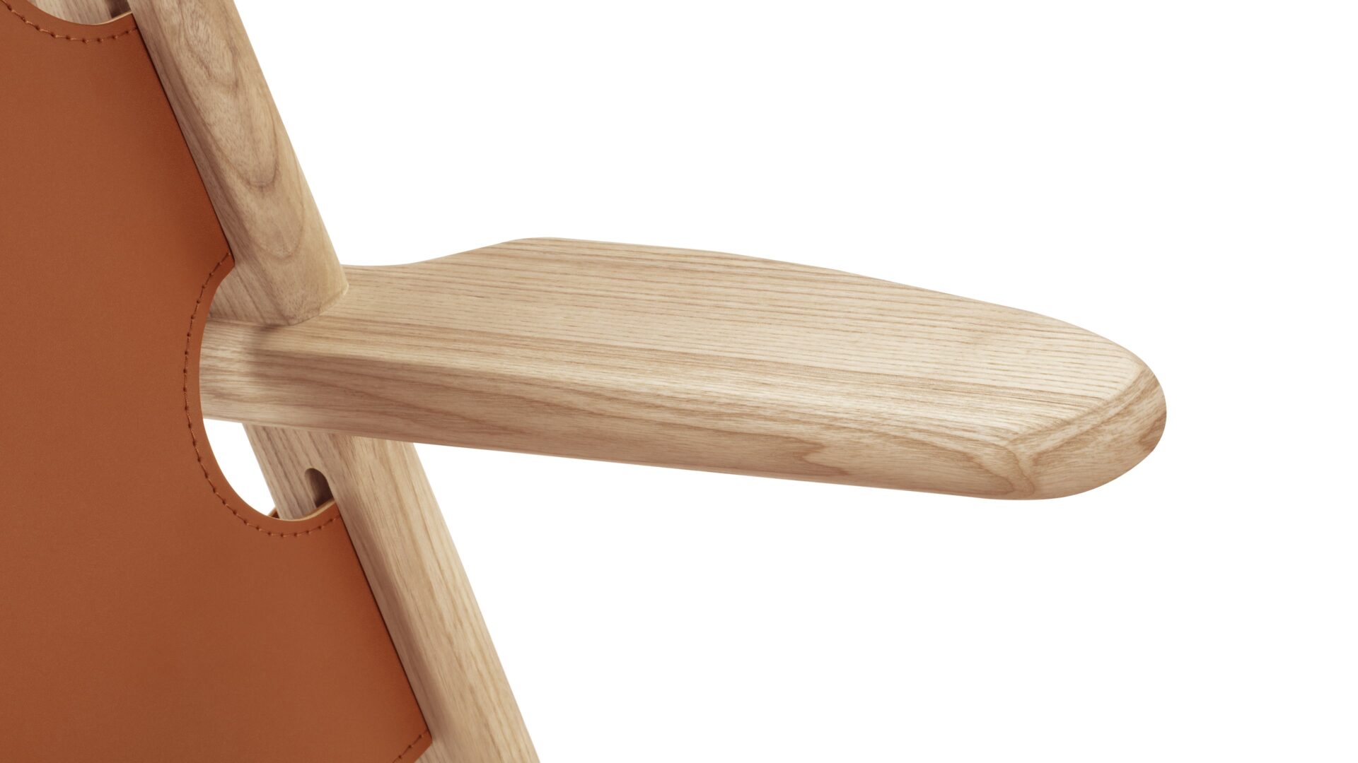 Experience optimal comfort with the unique and ergonomic design of the Hendrik Chair. The low, reclined seat and sling-like backrest provide superb support for a relaxing seating experience. Enhancing both comfort and elegance, the wooden armrests are a luxurious addition.