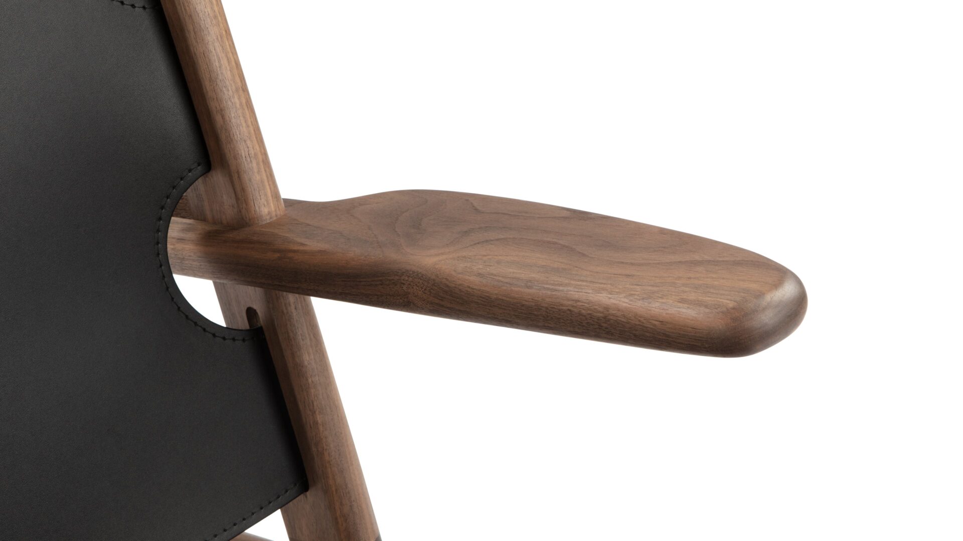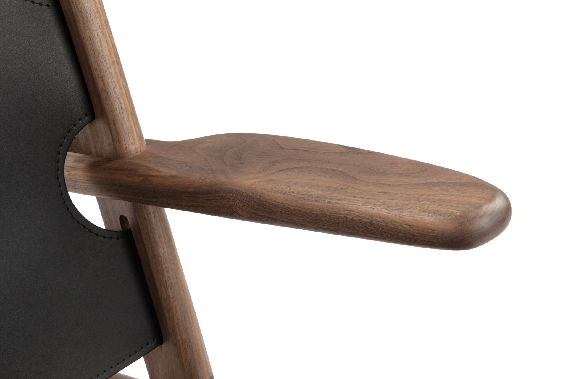 Experience optimal comfort with the unique and ergonomic design of the Hendrik Chair. The low, reclined seat and sling-like backrest provide superb support for a relaxing seating experience. Enhancing both comfort and elegance, the wooden armrests are a luxurious addition.