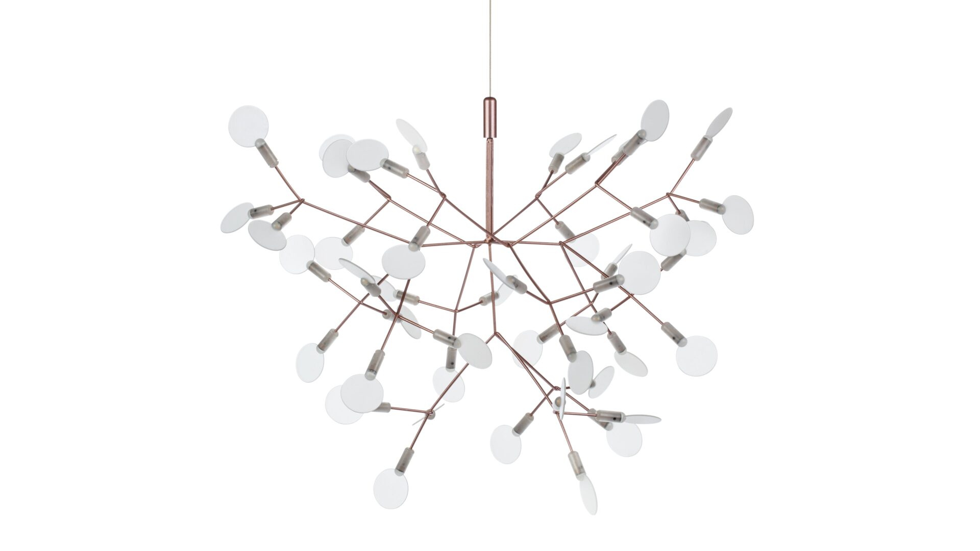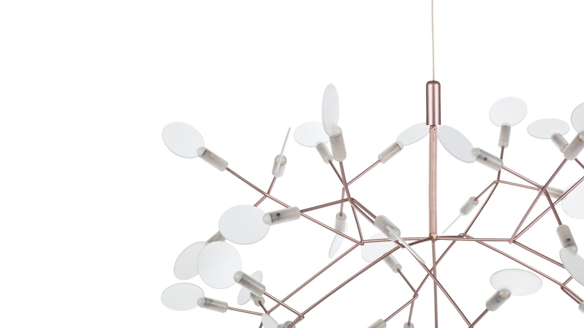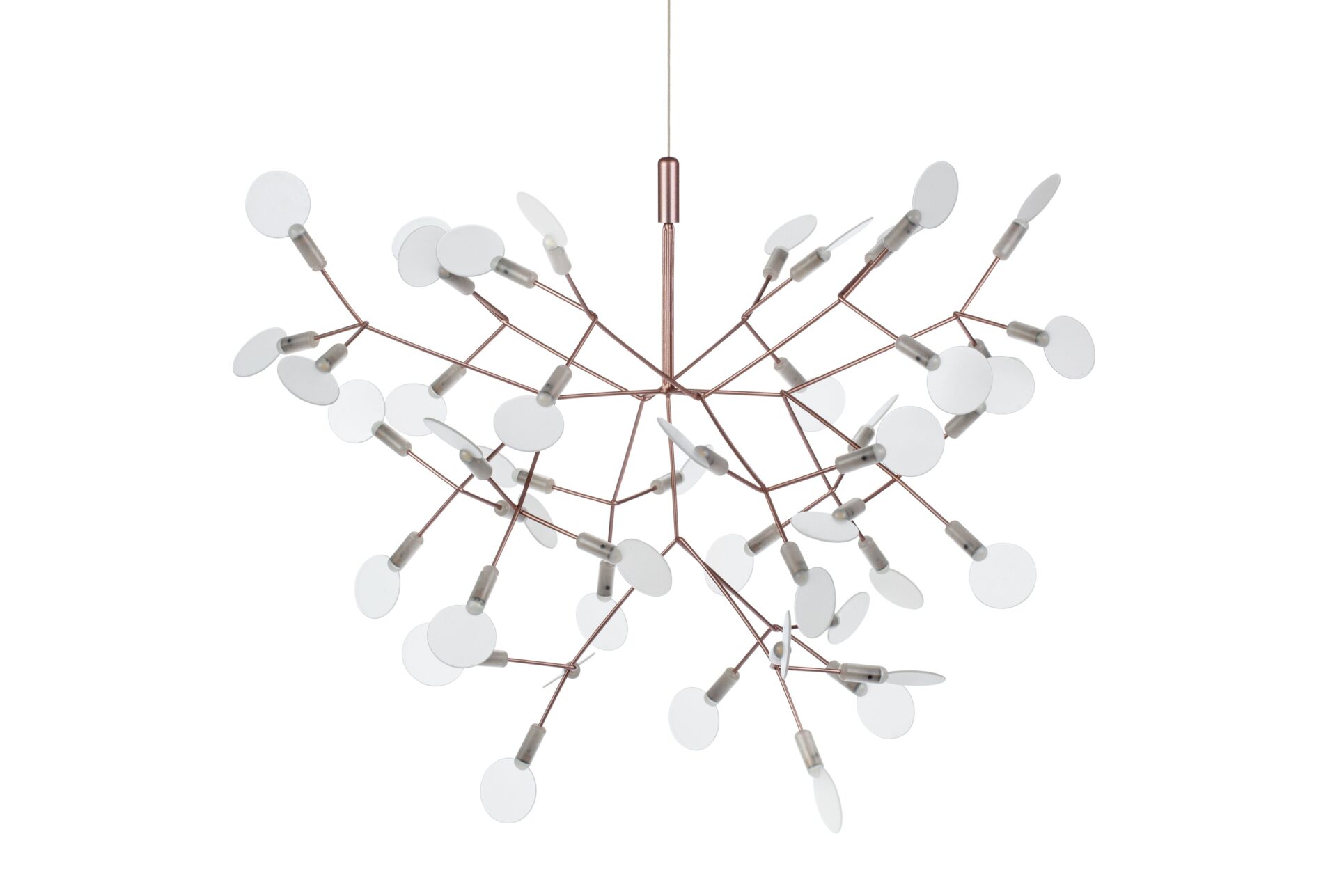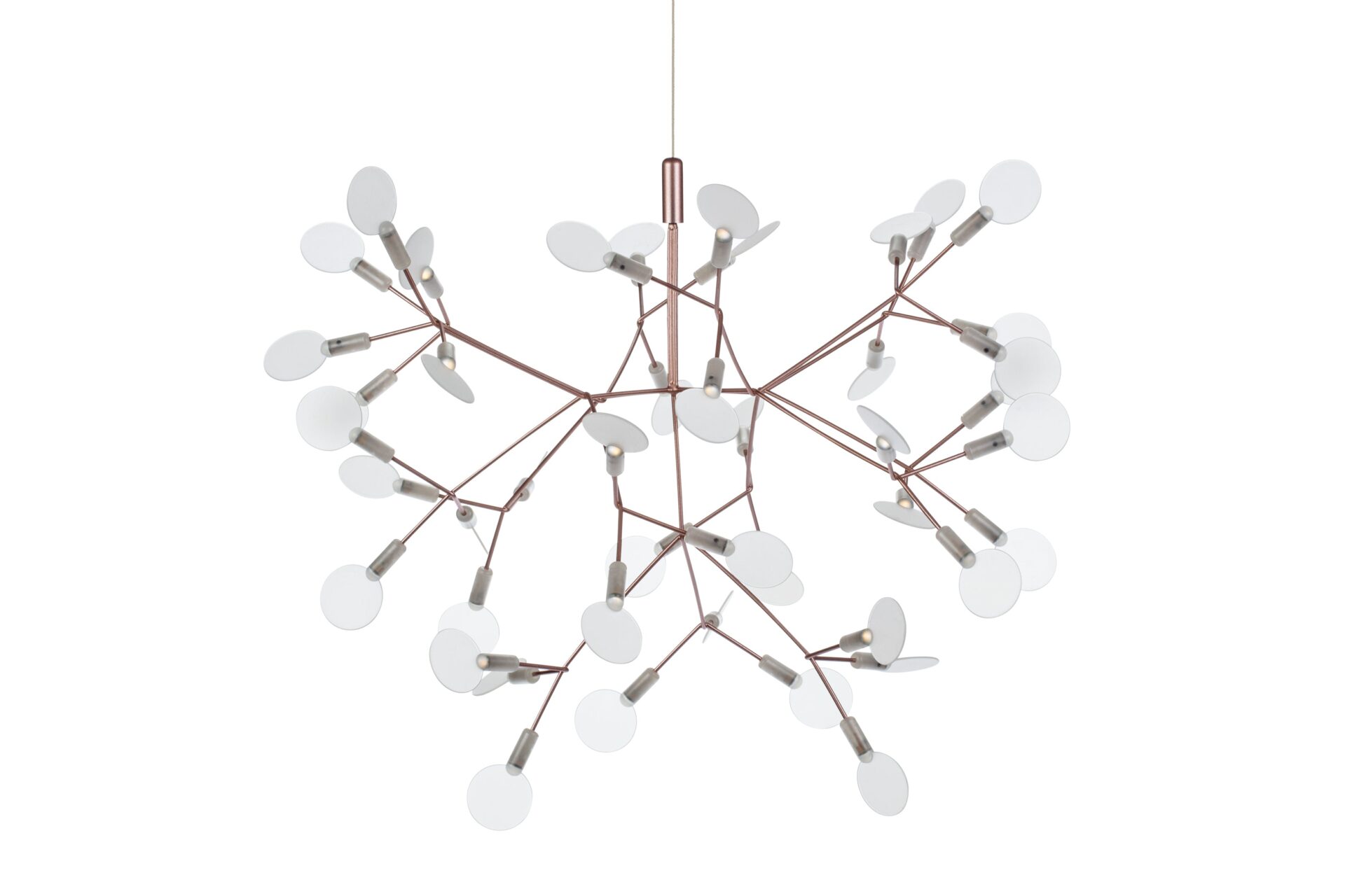 Inspired by nature, the Heracleum III Chandelier is a contemporary masterpiece fitting for upscale spaces. Crafted from stainless steel with a luxurious copper finish, its intricate design evokes a sense of refined elegance. Emitting a warm glow through acrylic diffusers reminiscent of dandelion seeds, this chandelier is a radiant and ethereal centerpiece, perfect for modern interiors seeking a touch of nature-inspired sophistication.
