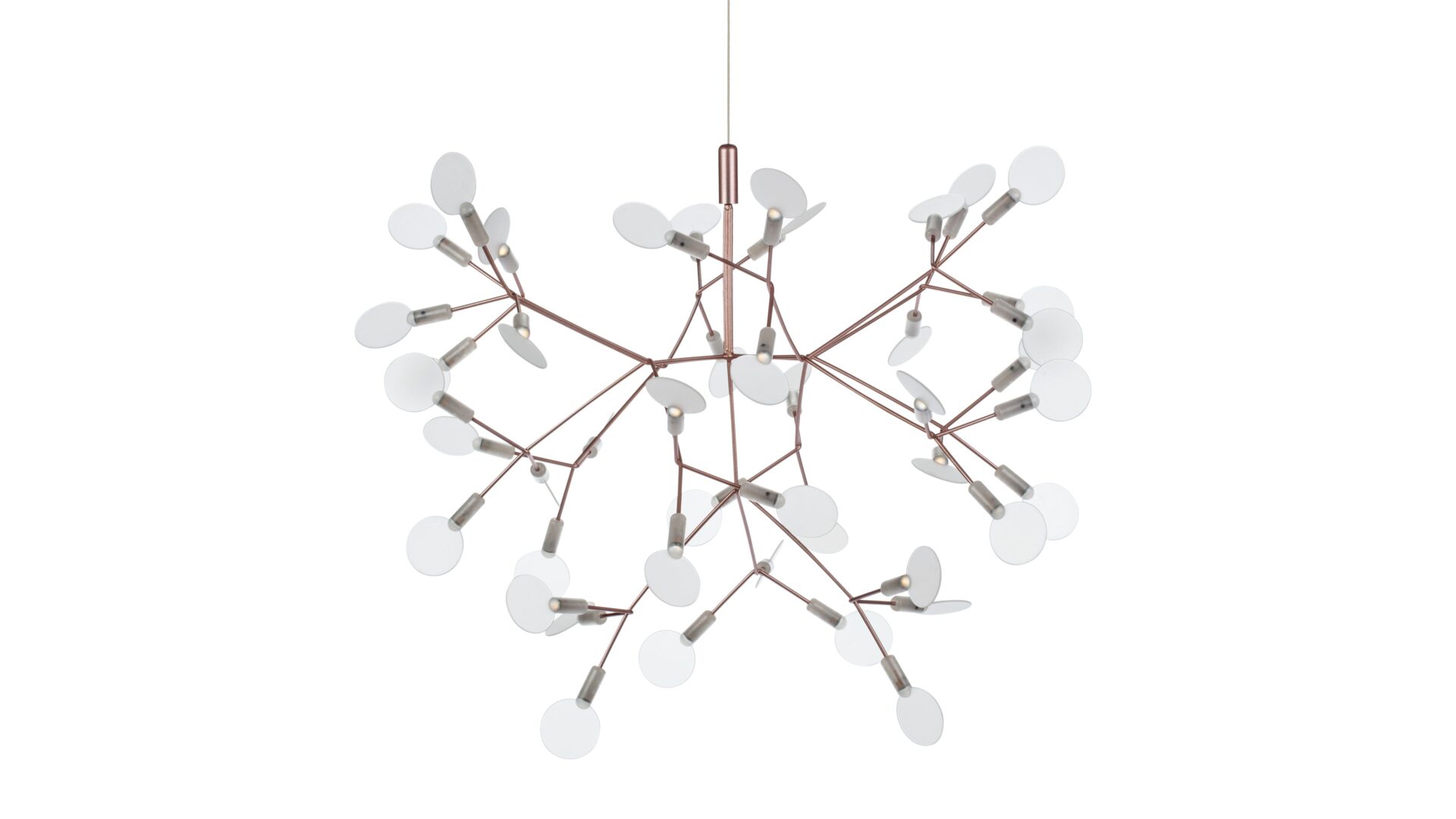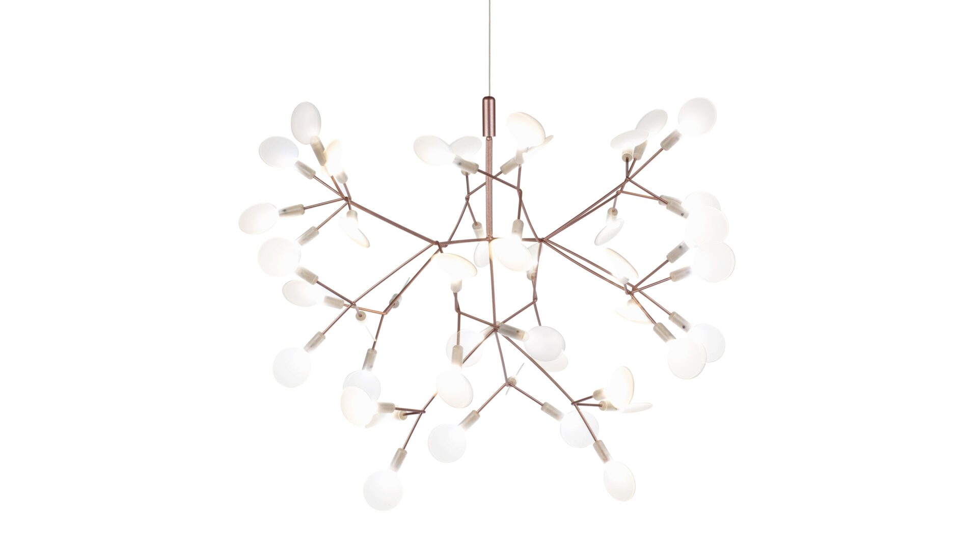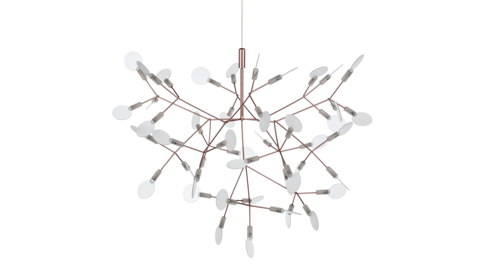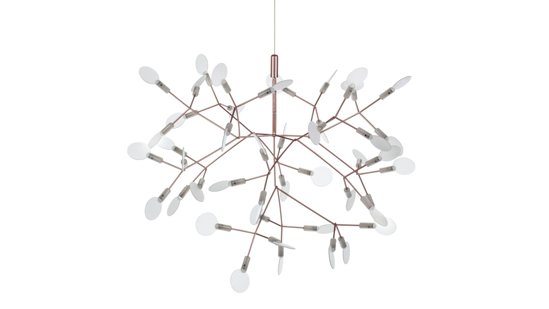 Inspired by nature, the Heracleum III Chandelier is a contemporary masterpiece fitting for upscale spaces. Crafted from stainless steel with a luxurious copper finish, its intricate design evokes a sense of refined elegance. Emitting a warm glow through acrylic diffusers reminiscent of dandelion seeds, this chandelier is a radiant and ethereal centerpiece, perfect for modern interiors seeking a touch of nature-inspired sophistication.