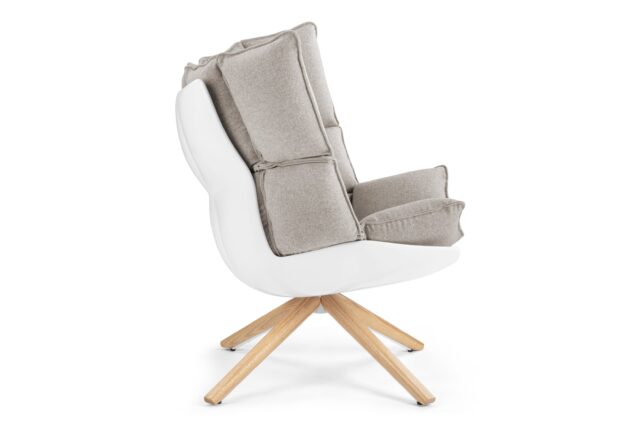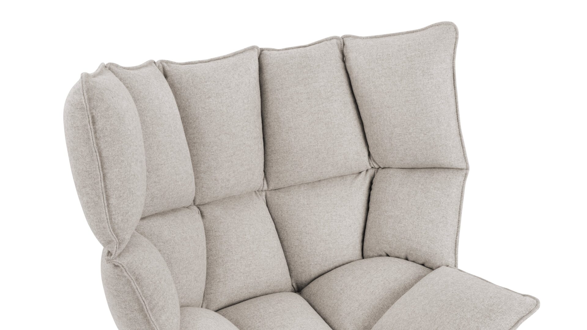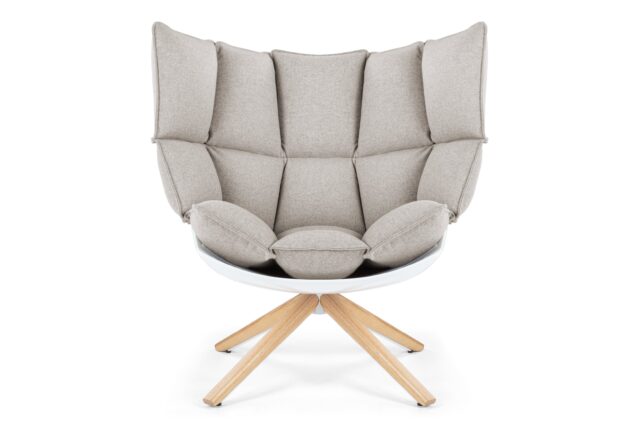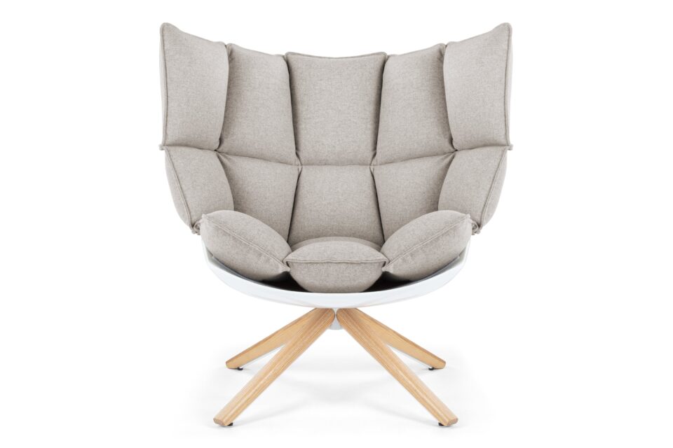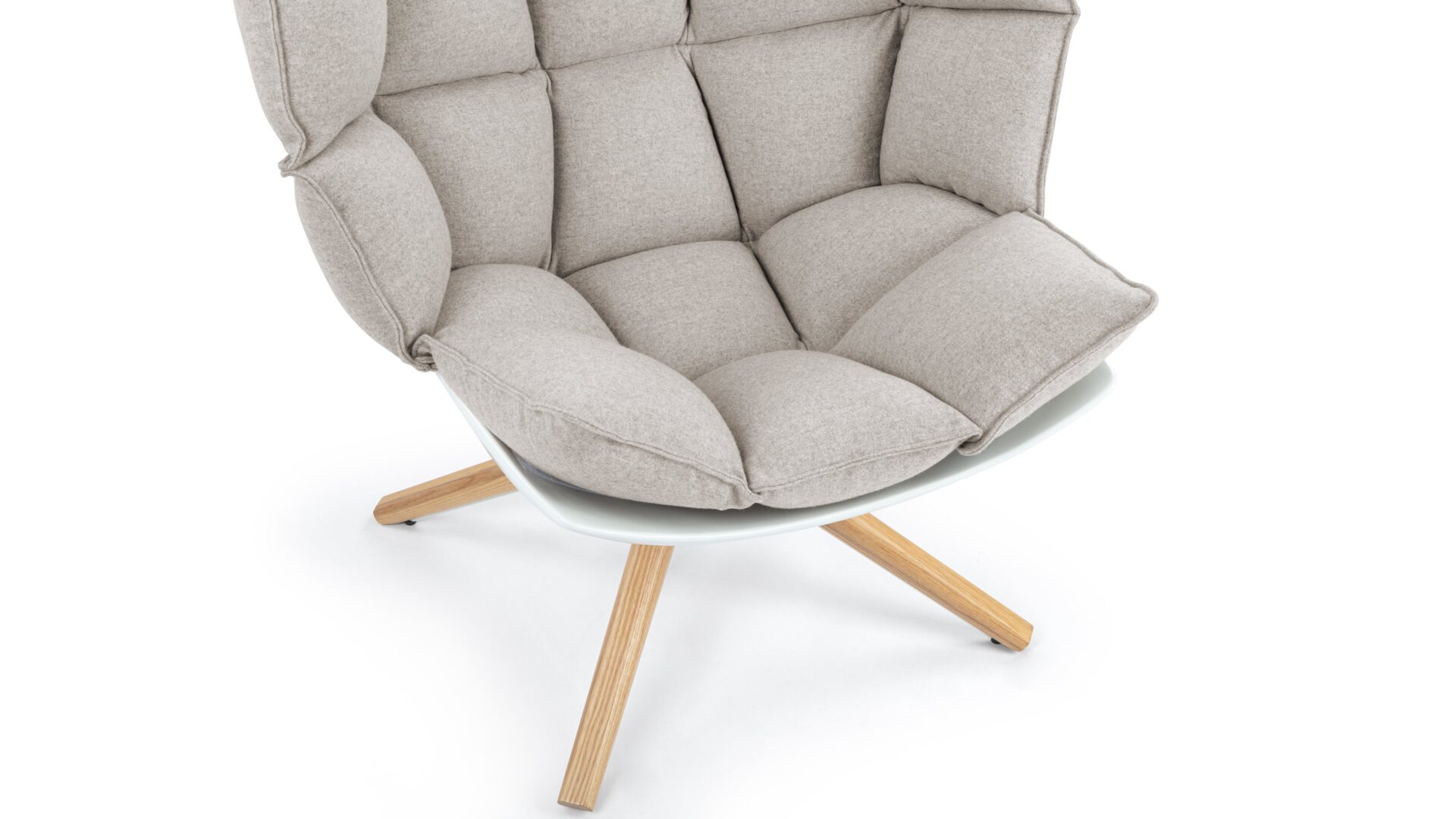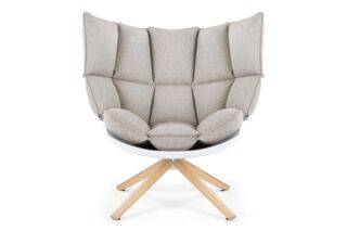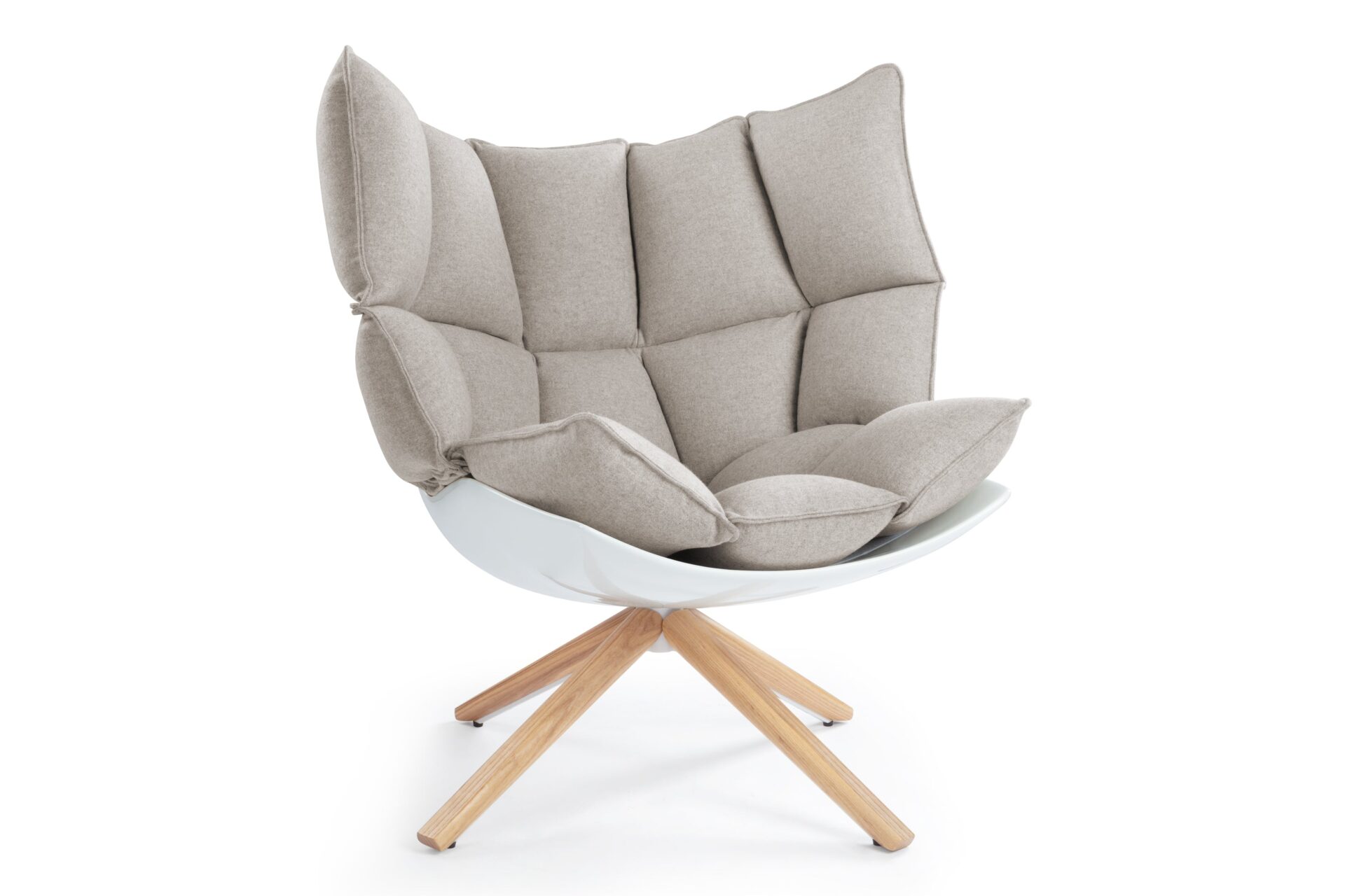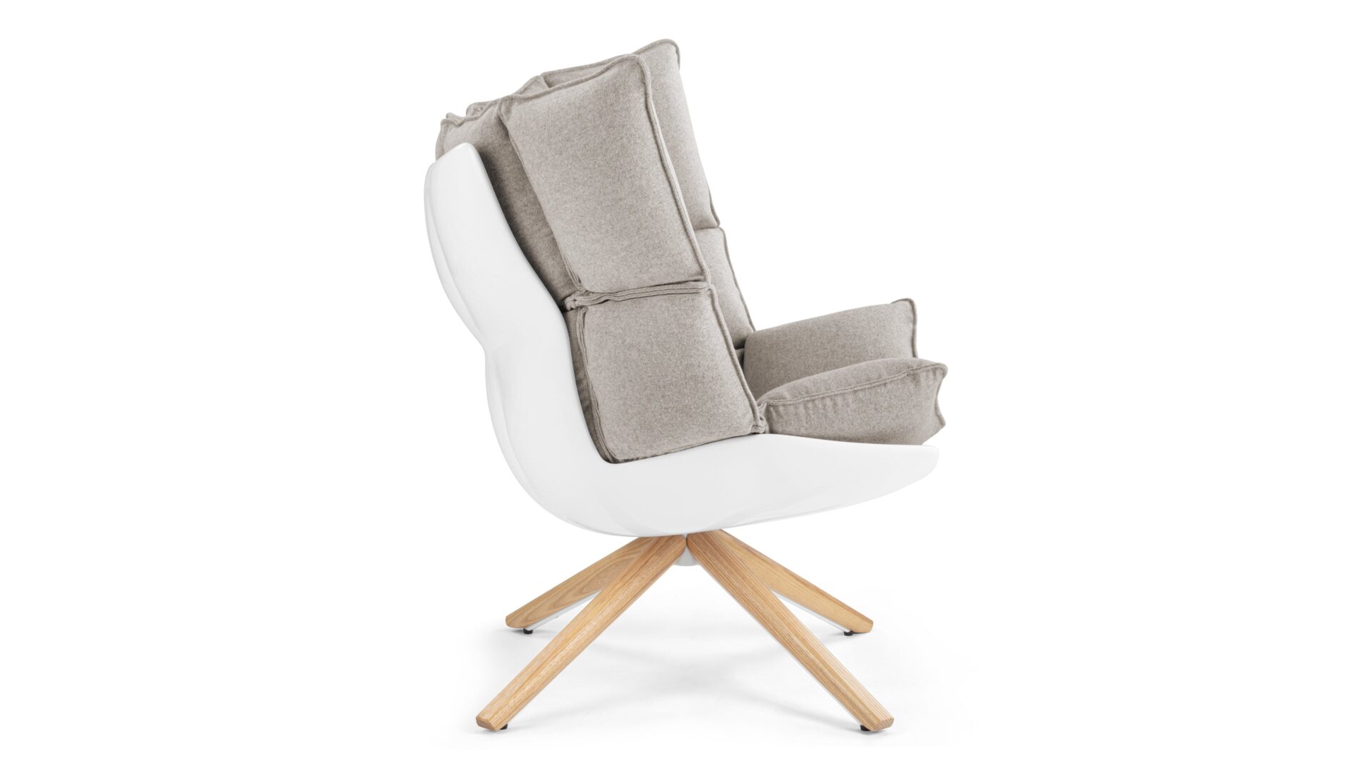 Experience the sophisticated charm of the Husk Lounge Chair, showcasing a contemporary design with its striking splayed legs and softly rounded edges. The cozy cocooning shape and inviting warm grey tones make it the perfect piece for unwinding in style.
