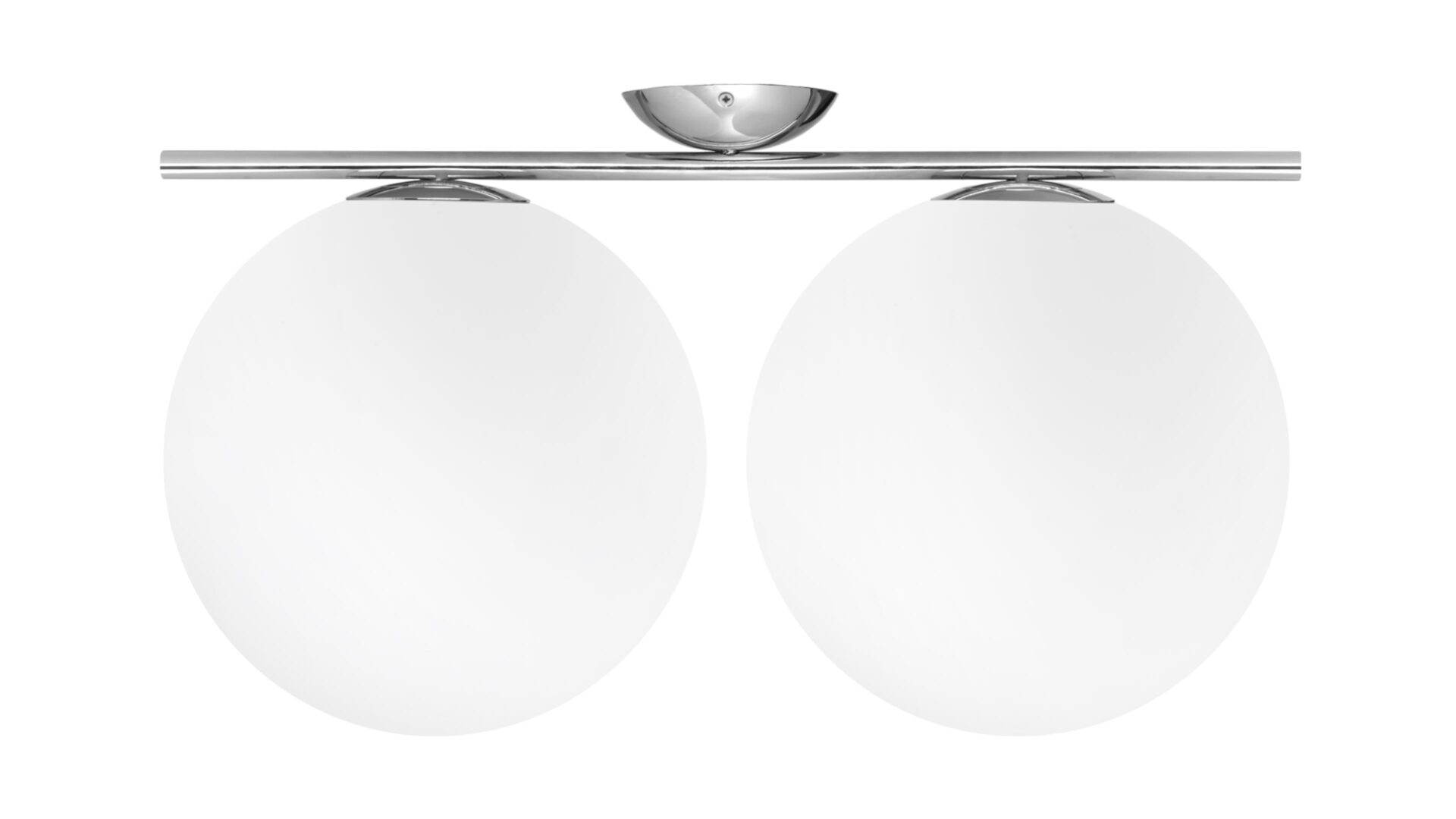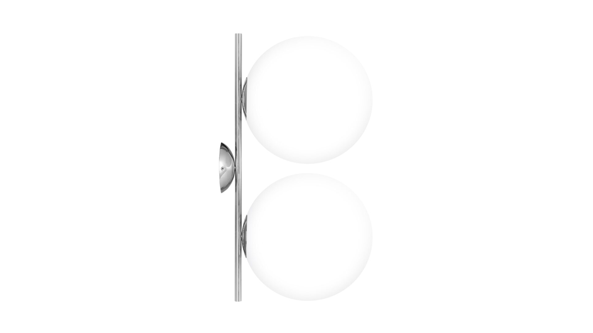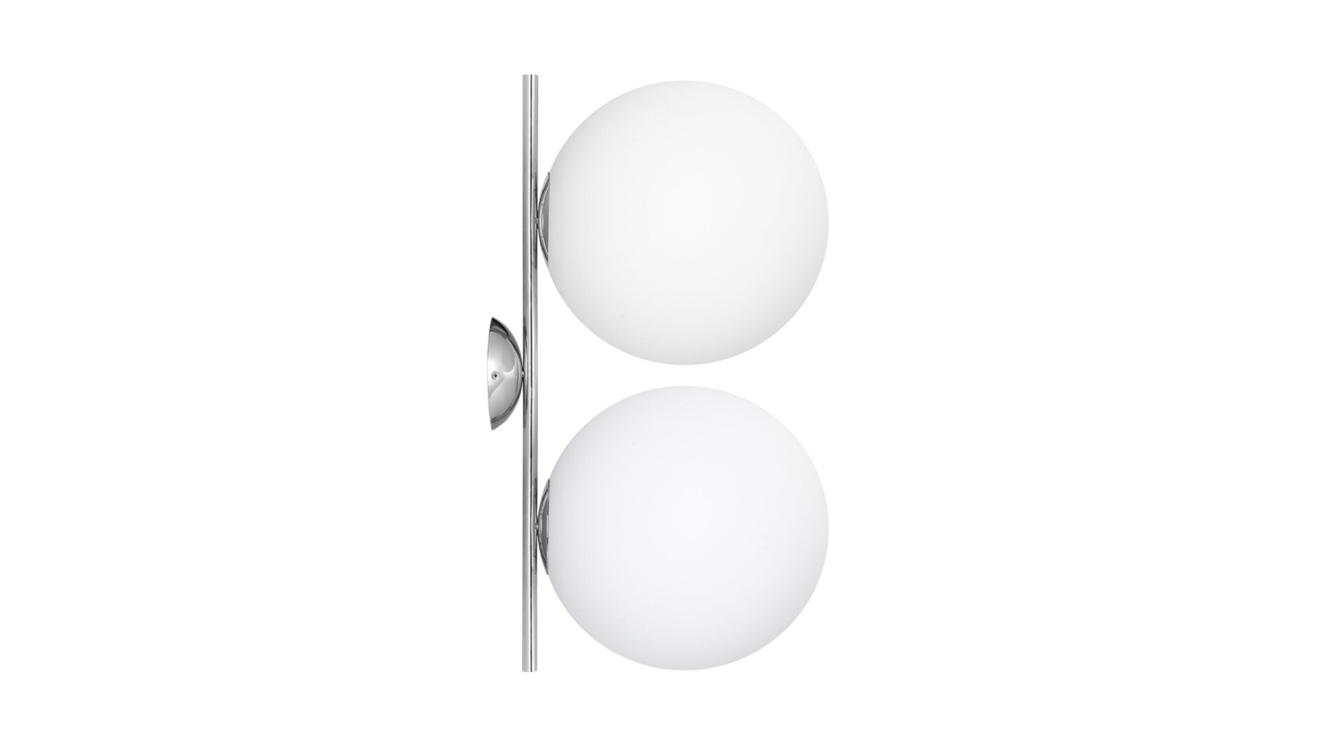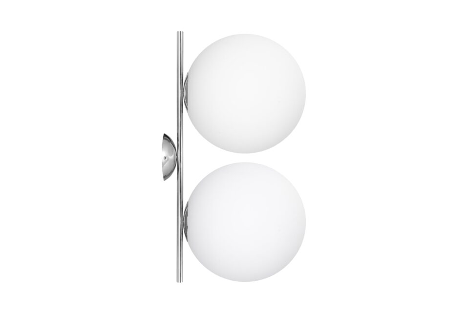 Inspired by the finesse of a juggler, the IC Double Wall and Ceiling Light features two opaline orbs delicately mounted on a metal bracket, exuding grace and beauty. Versatile as a wall sconce or ceiling fixture, it's perfect for narrow spaces like hallways. With Chrome finish, this sophisticated piece offers a lavish, contemporary touch to any modern interior.