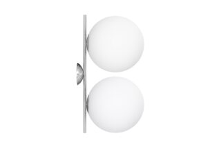 Inspired by the finesse of a juggler, the IC Double Wall and Ceiling Light features two opaline orbs delicately mounted on a metal bracket, exuding grace and beauty. Versatile as a wall sconce or ceiling fixture, it's perfect for narrow spaces like hallways. With Chrome finish, this sophisticated piece offers a lavish, contemporary touch to any modern interior.