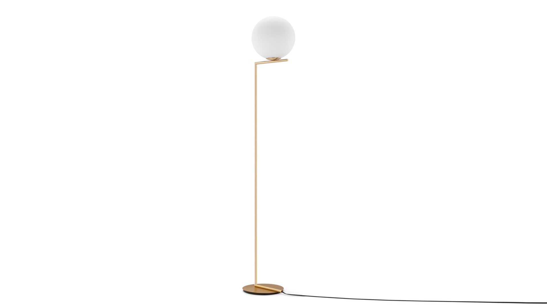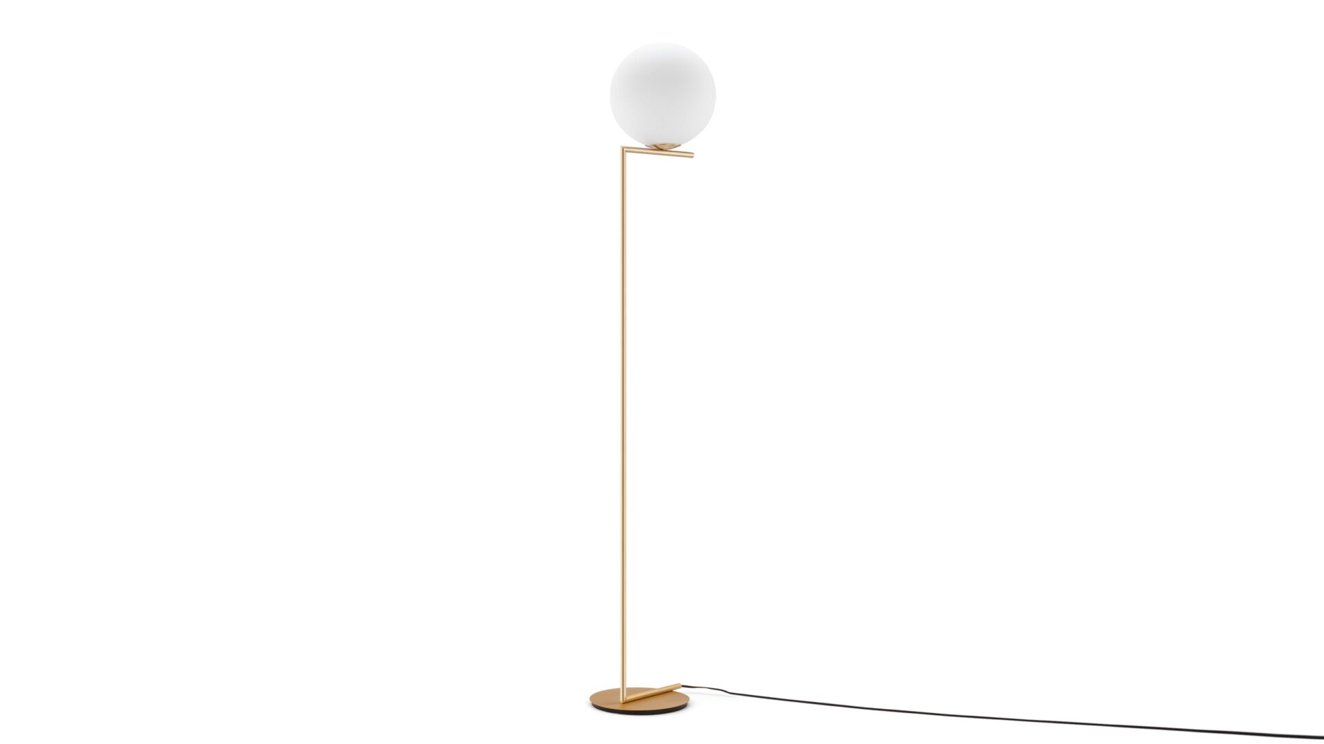 Elevate your space with the chic and stylish IC Floor Lamp from the IC Lights Collection, drawing inspiration from the glamour of the 1920s. The opulent brass finish adds a sense of luxury to your room while the opaline glass sphere exudes a timeless elegance. Combining a classic aesthetic with a modern charm, this lamp is a perfect addition to any contemporary setting, offering a sleek and atmospheric lighting experience that enhances the ambiance of your space. Discover the allure of balance and design with the IC Lights collection, where premium materials and minimalist aesthetics converge to create a visually striking piece that pays tribute to singular inspiration.