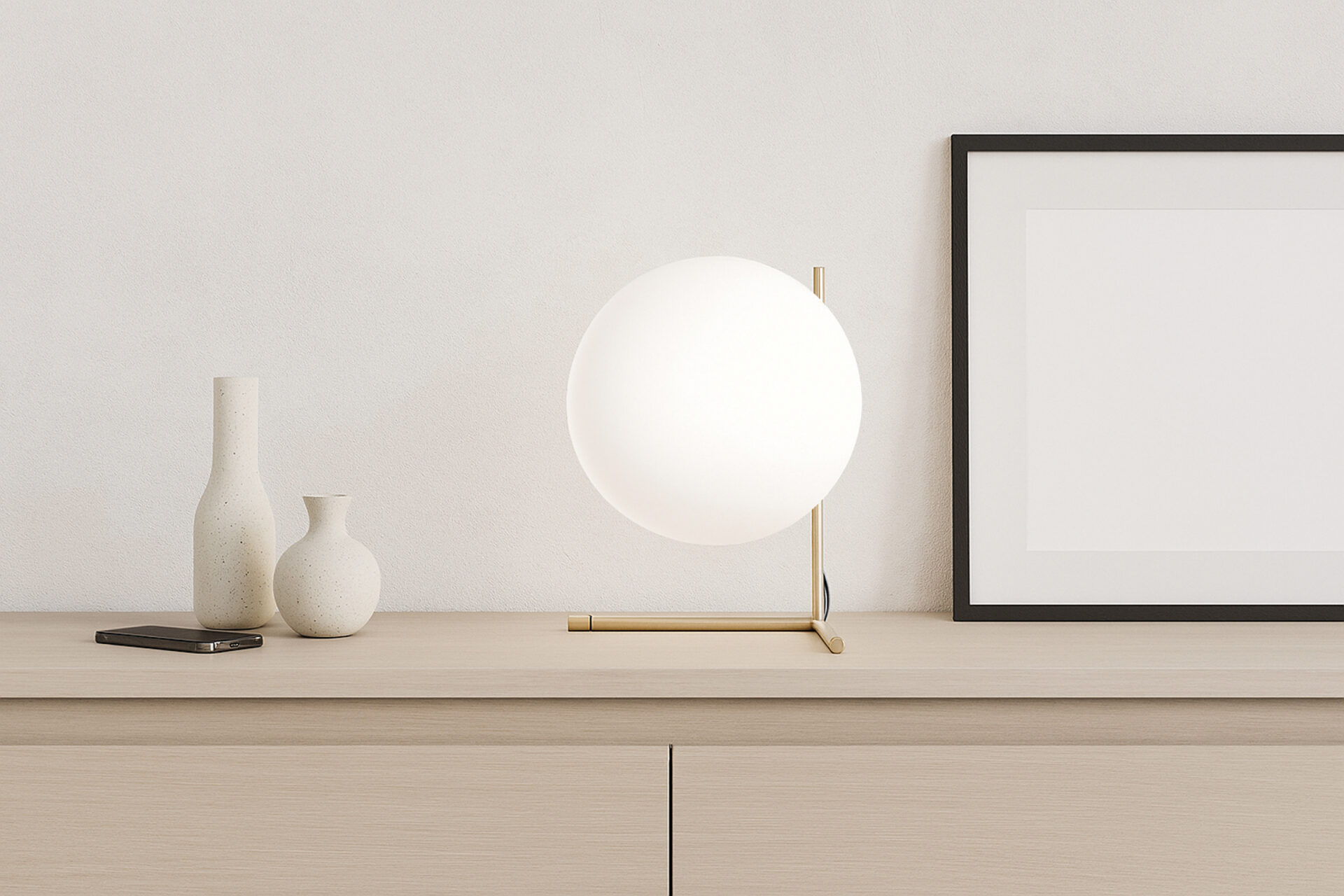Elevate your space with the sophisticated IC Table Lamp and sleek T2 Table Lamp. The IC lamp draws inspiration from the fluidity of a juggler, while the T2 boasts a minimalistic metal frame with opaline glass. The brushed brass finish of the IC T2 adds a touch of elegance, creating gentle ambient lighting. Explore the IC Lights range for a cohesive look.