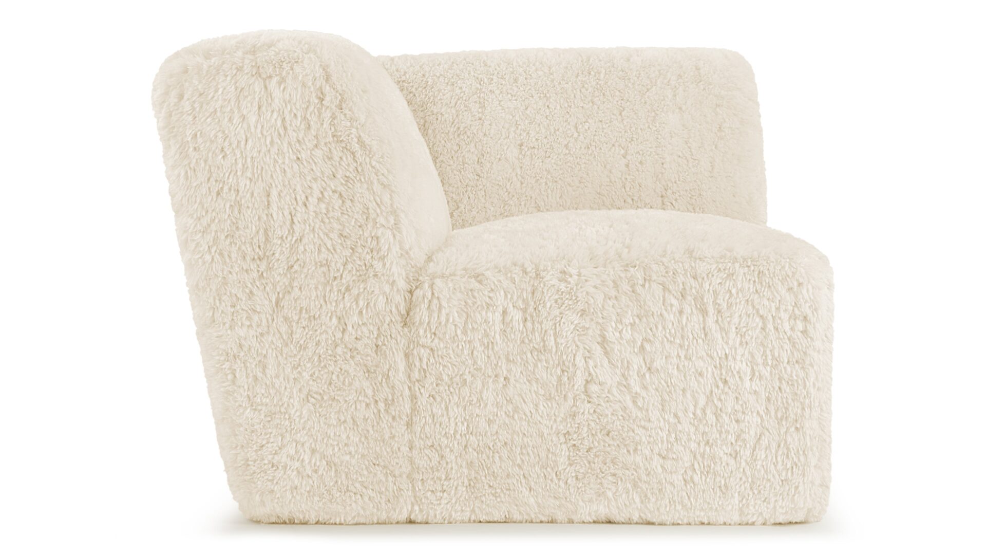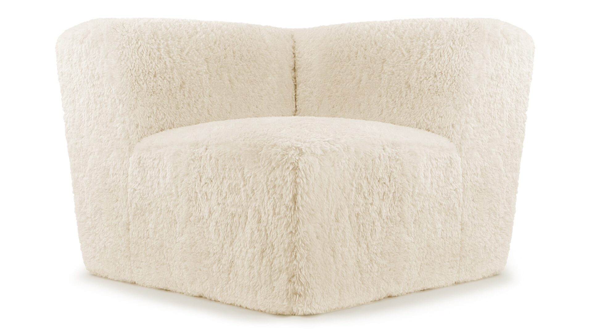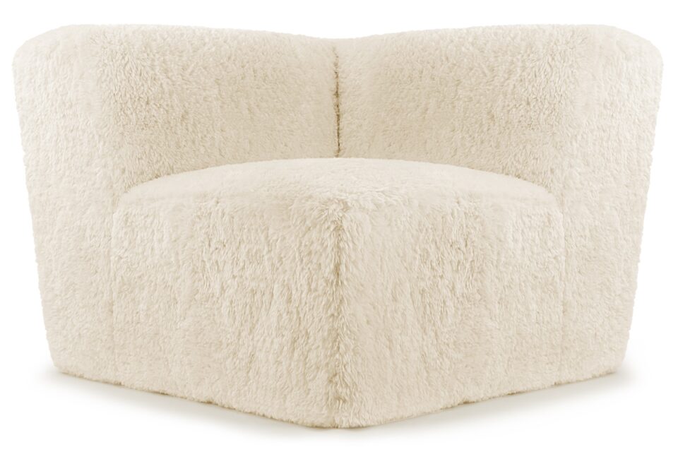 Experience ultimate luxury with the Iona Sectional Collection, featuring sumptuous faux sheepskin upholstery and a sleek, contemporary design. This customizable sectional allows you to choose from pre-defined configurations or individual modules, giving you the flexibility to create a personalized look that fits your space perfectly, adding a touch of individuality. Sink into its deep seats and plush cushioning for unmatched comfort, while the light cream color lends a touch of sophistication that complements a range of interior aesthetics. The sectional's rounded silhouette and simple block design blend modern trends with timeless elegance.