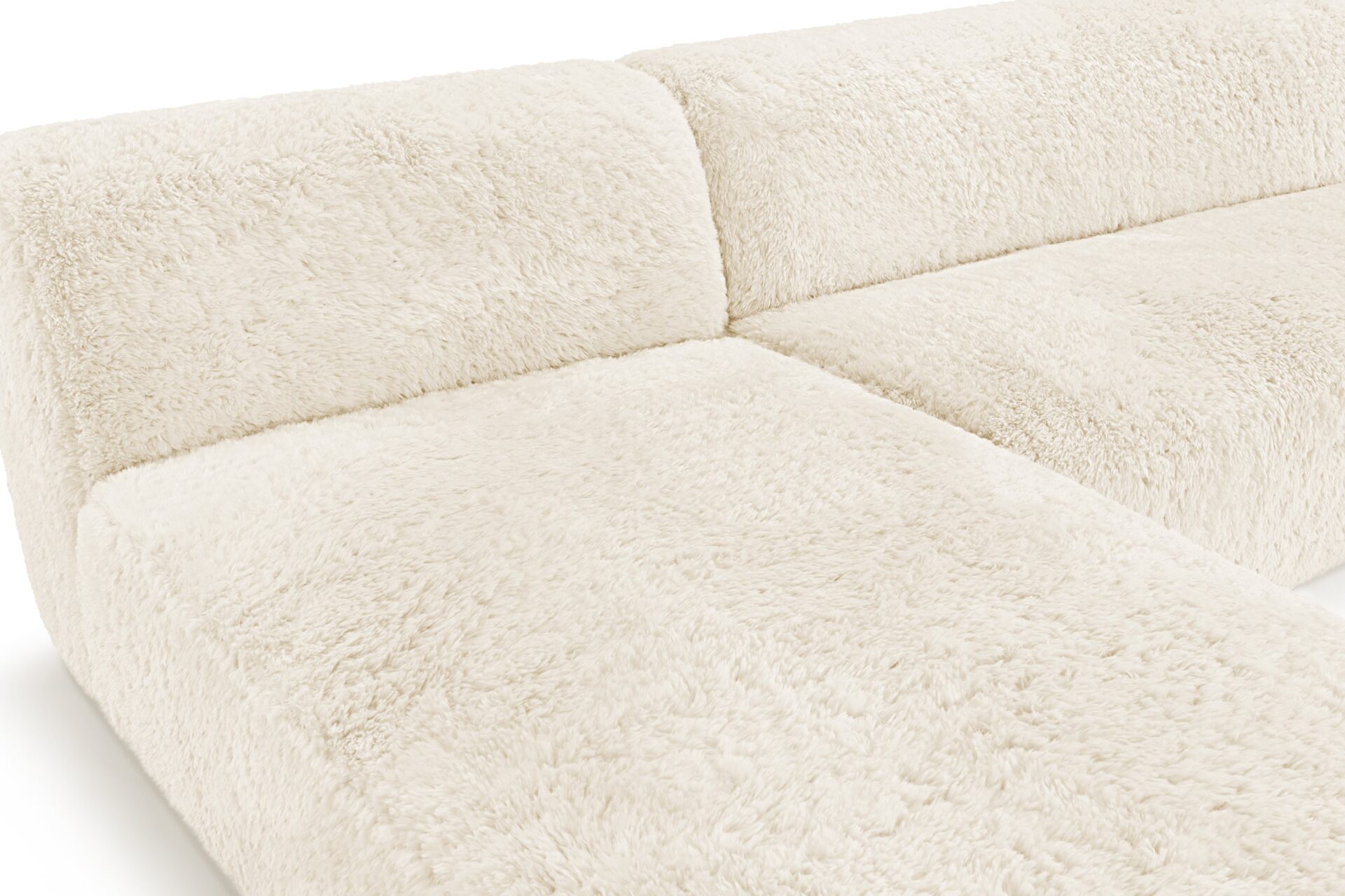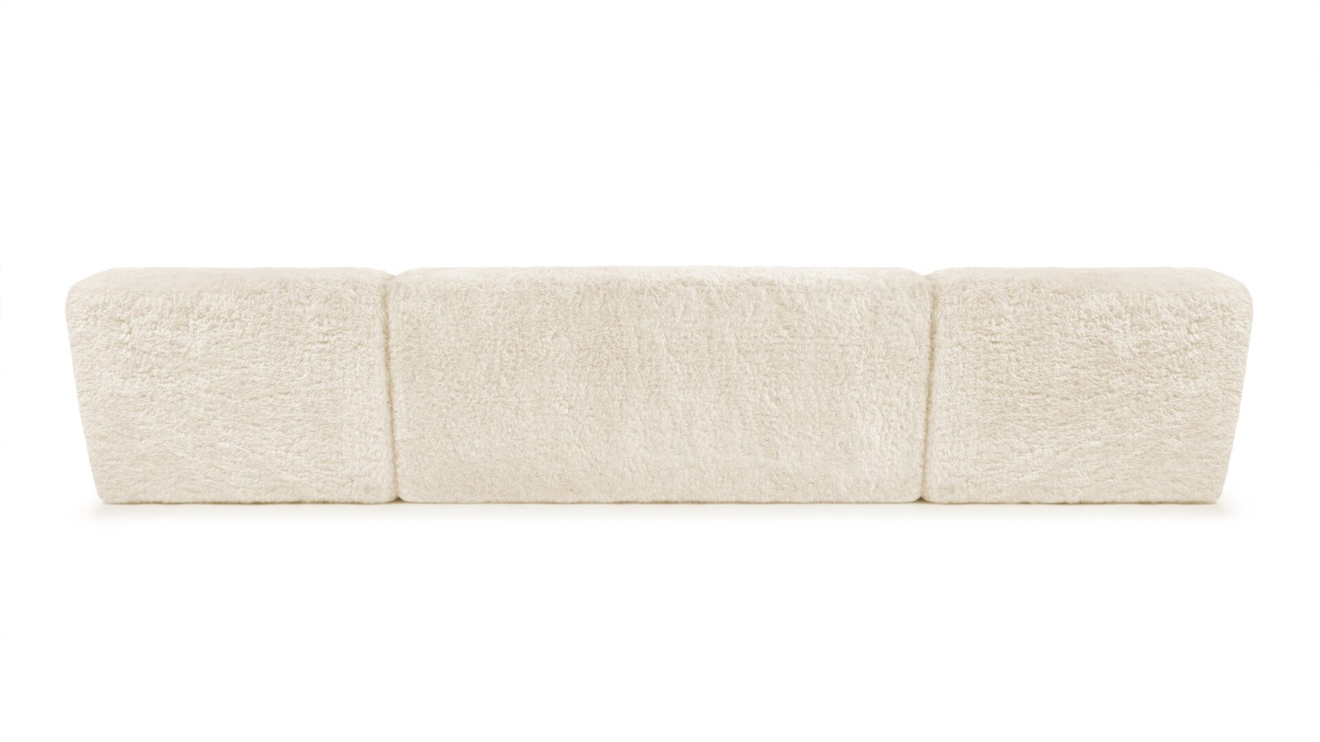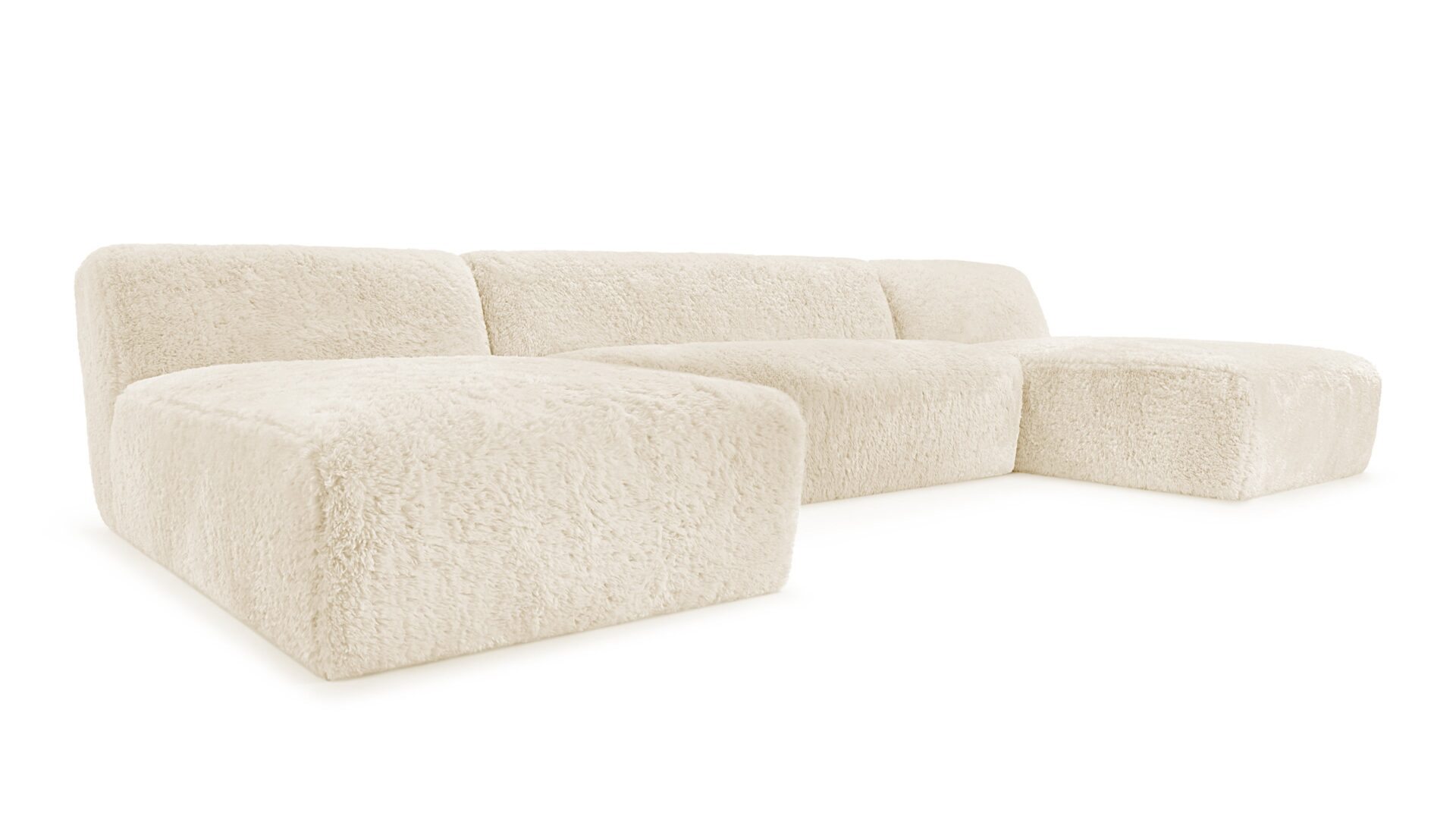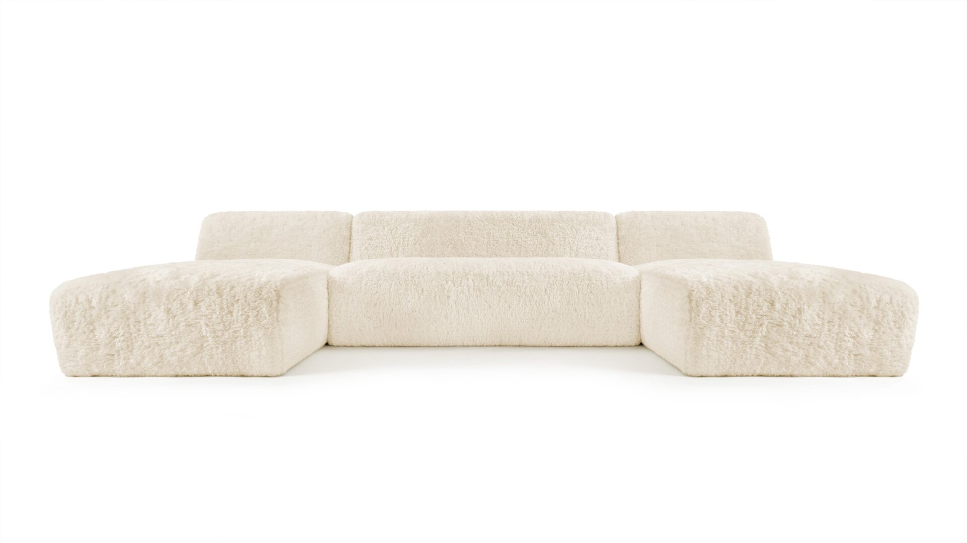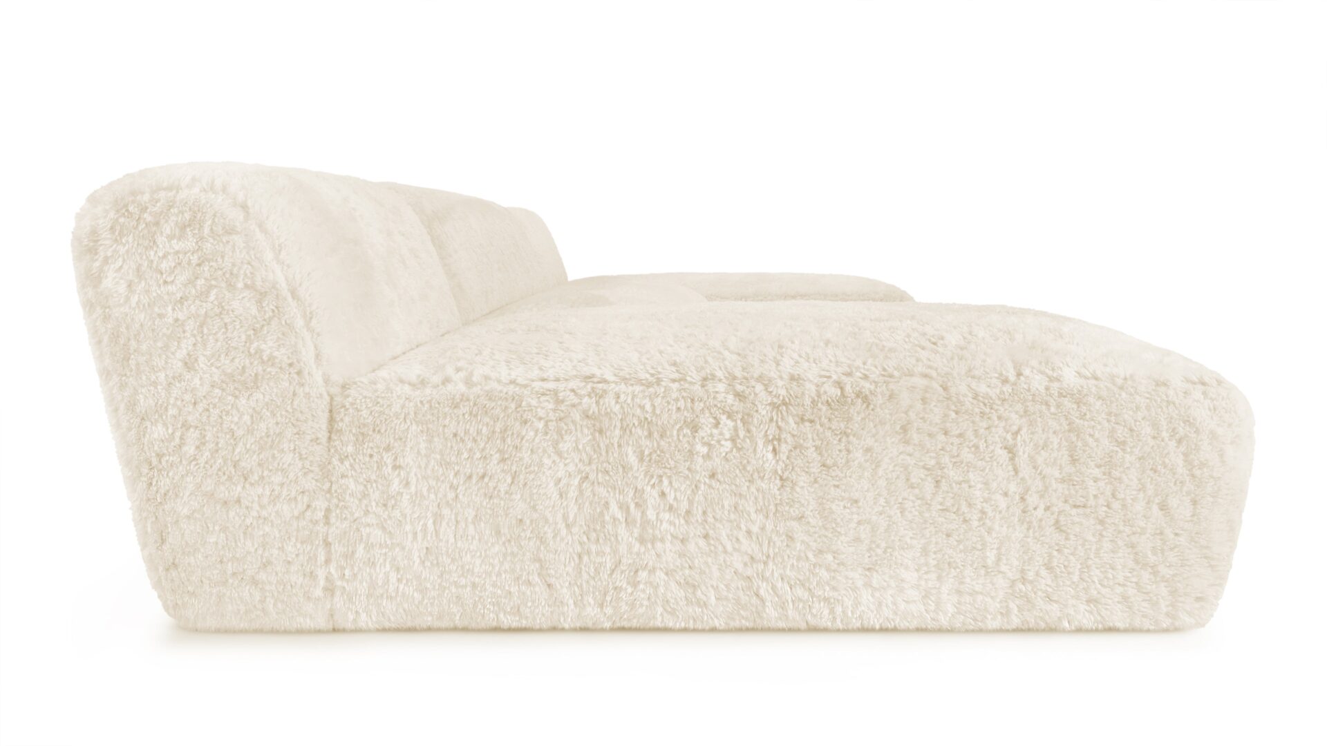 Experience ultimate luxury with the Iona Sectional Collection, featuring sumptuous faux sheepskin upholstery and a sleek, contemporary design. This customizable sectional allows you to choose from pre-defined configurations or individual modules, giving you the flexibility to create a personalized look that fits your space perfectly, adding a touch of individuality. Sink into its deep seats and plush cushioning for unmatched comfort, while the light cream color lends a touch of sophistication that complements a range of interior aesthetics. The sectional's rounded silhouette and simple block design blend modern trends with timeless elegance.
