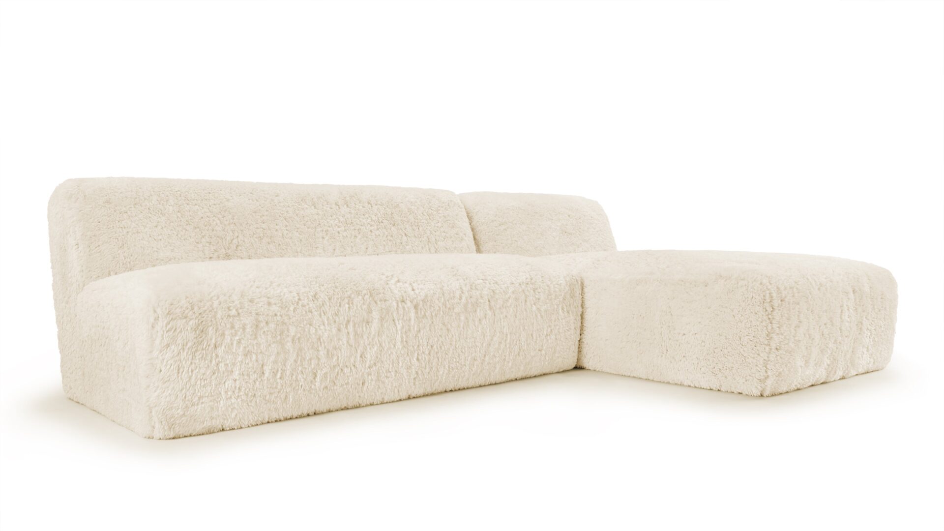 Experience ultimate luxury with the Iona Sectional Collection, featuring sumptuous faux sheepskin upholstery and a sleek, contemporary design. This customizable sectional allows you to choose from pre-defined configurations or individual modules, giving you the flexibility to create a personalized look that fits your space perfectly, adding a touch of individuality. Sink into its deep seats and plush cushioning for unmatched comfort, while the light cream color lends a touch of sophistication that complements a range of interior aesthetics. The sectional's rounded silhouette and simple block design blend modern trends with timeless elegance.
