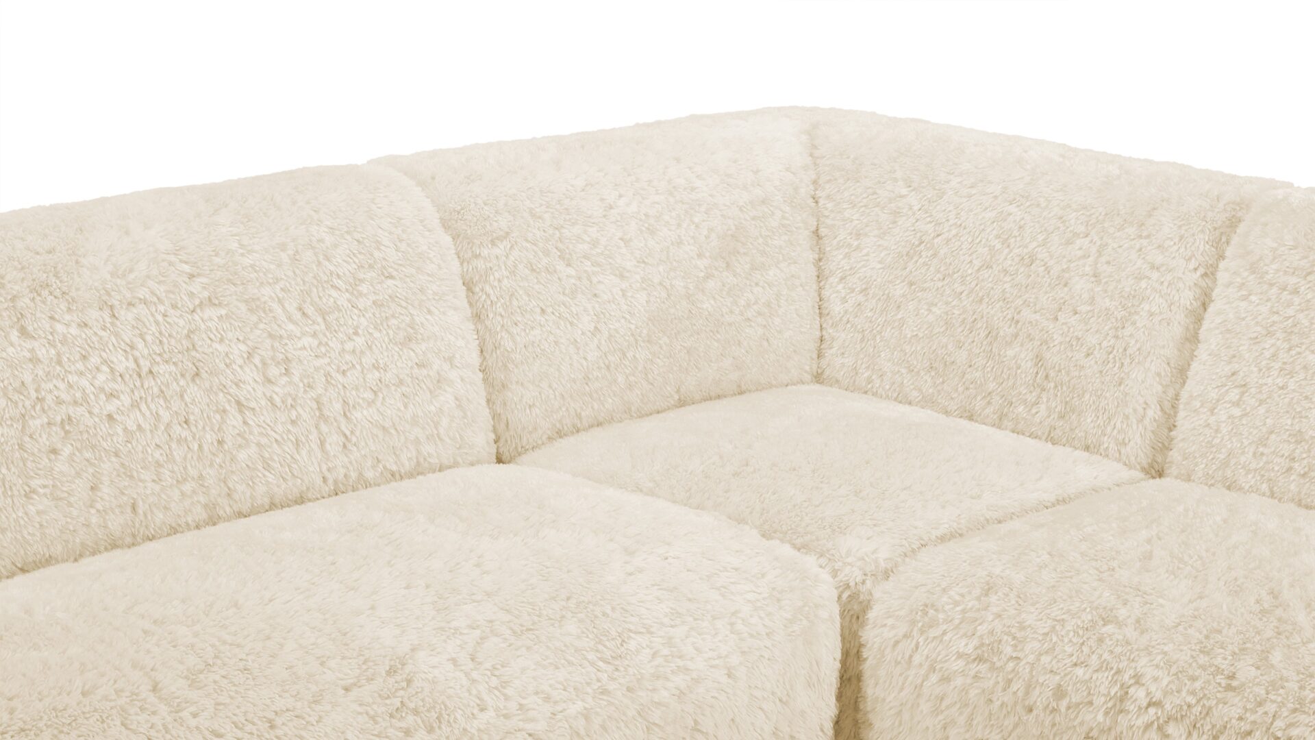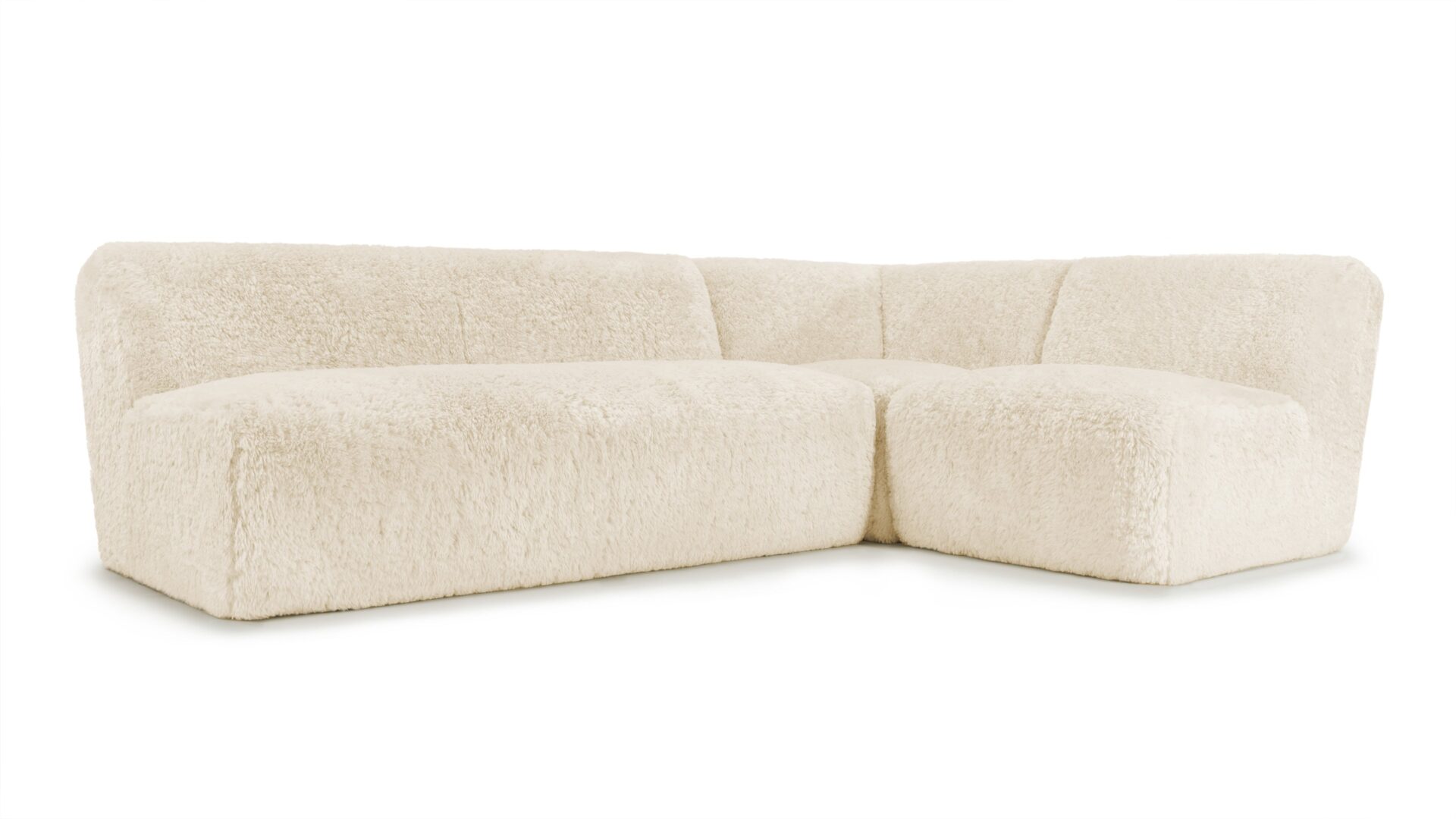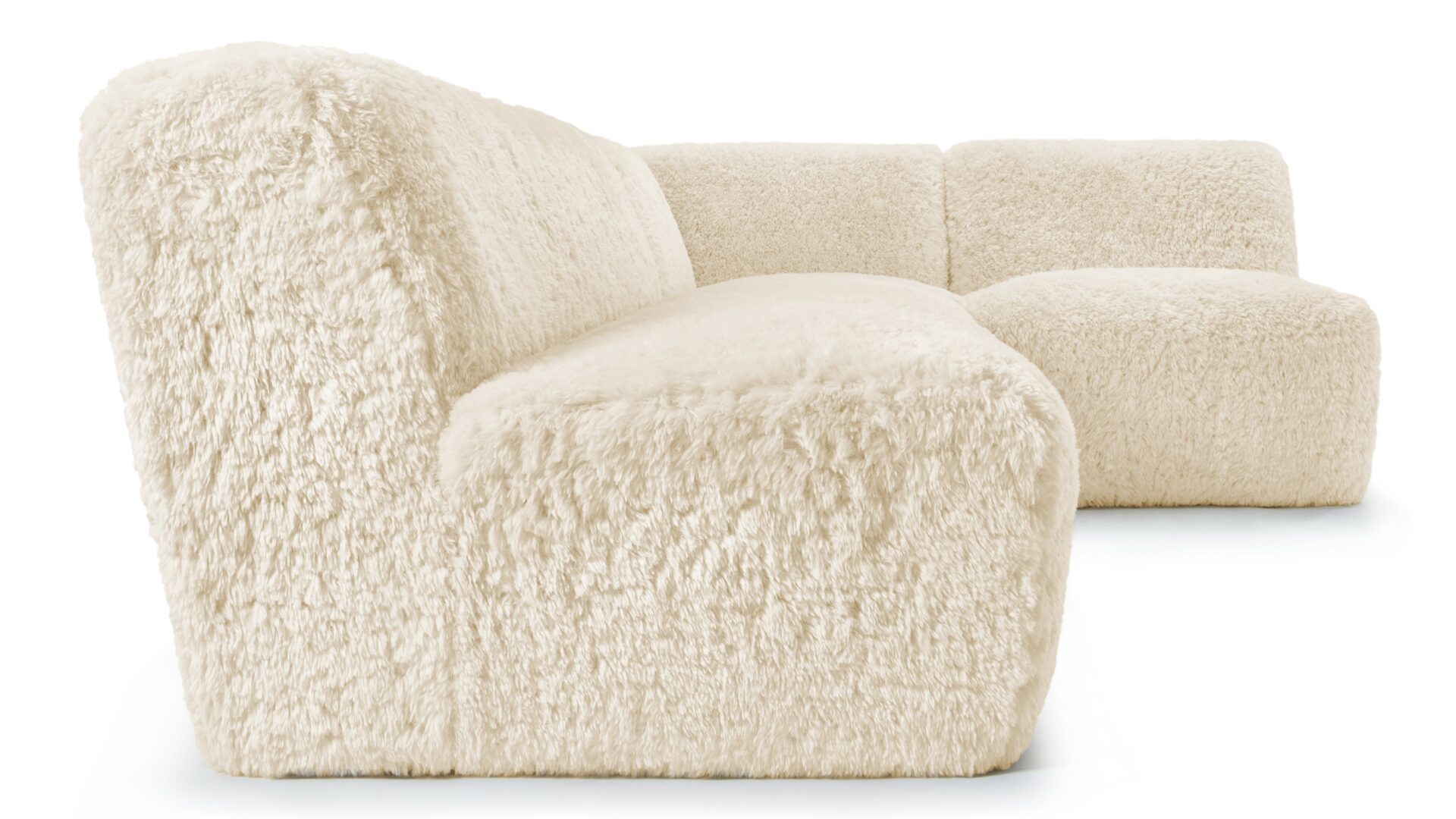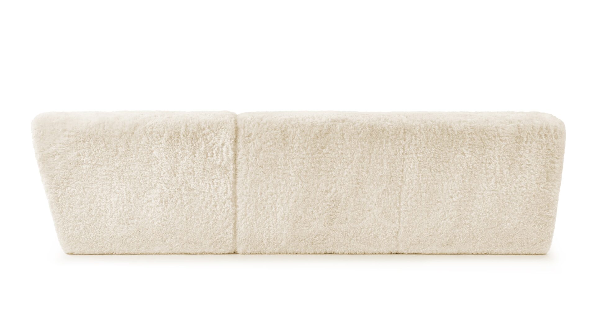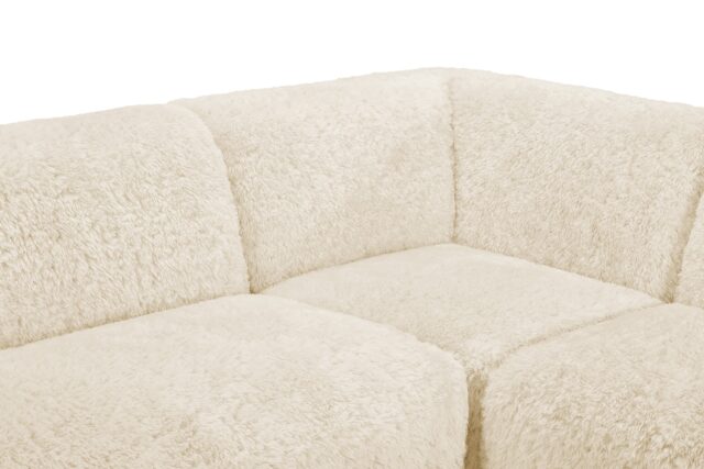 Experience ultimate luxury with the Iona Sectional Collection, featuring sumptuous faux sheepskin upholstery and a sleek, contemporary design. This customizable sectional allows you to choose from pre-defined configurations or individual modules, giving you the flexibility to create a personalized look that fits your space perfectly, adding a touch of individuality. Sink into its deep seats and plush cushioning for unmatched comfort, while the light cream color lends a touch of sophistication that complements a range of interior aesthetics. The sectional's rounded silhouette and simple block design blend modern trends with timeless elegance.