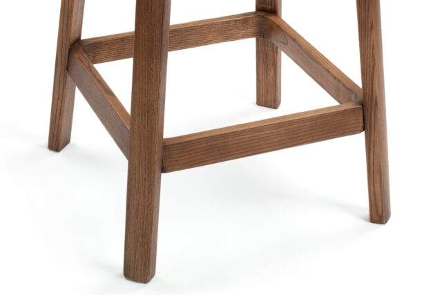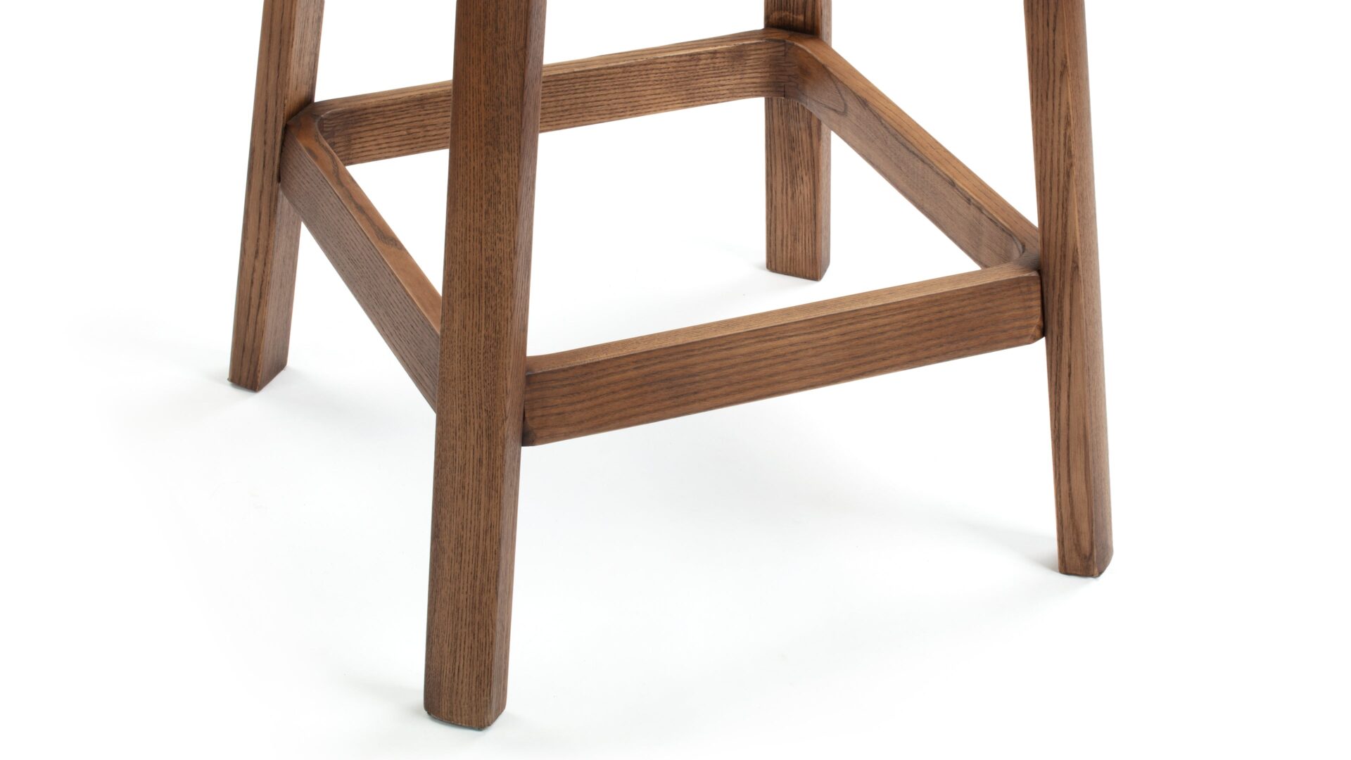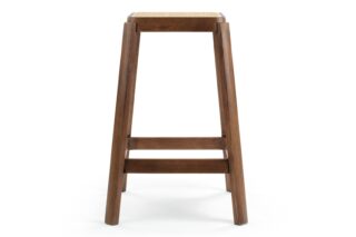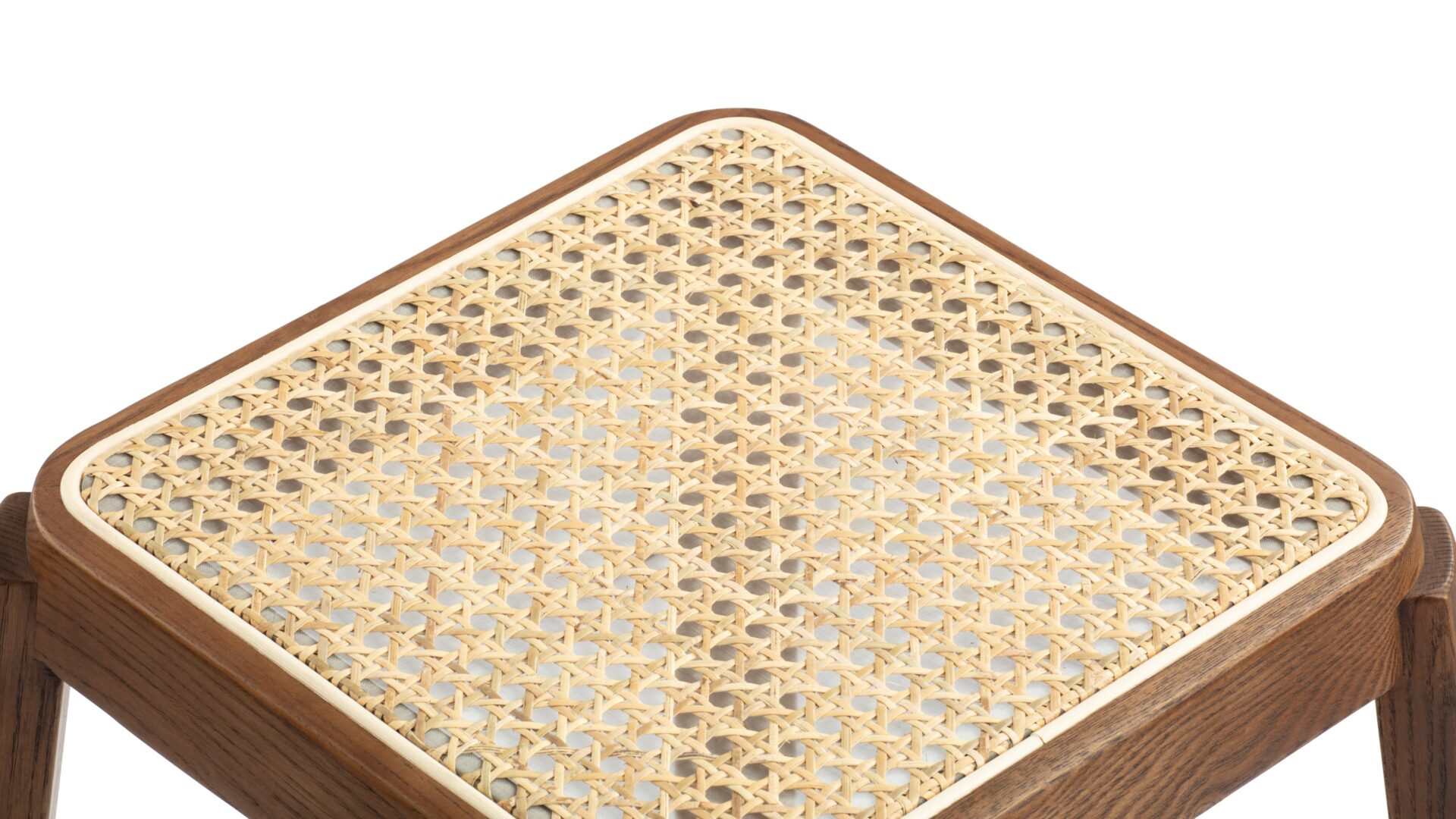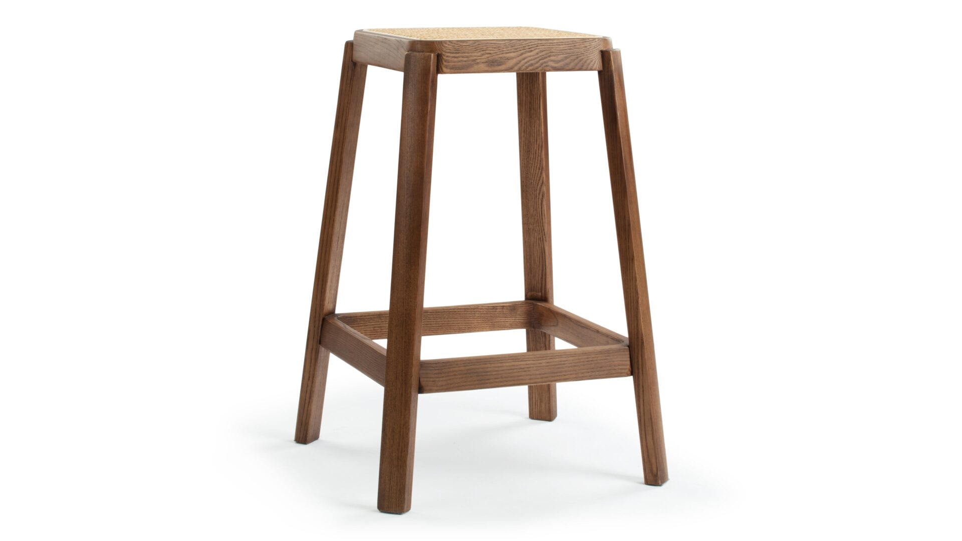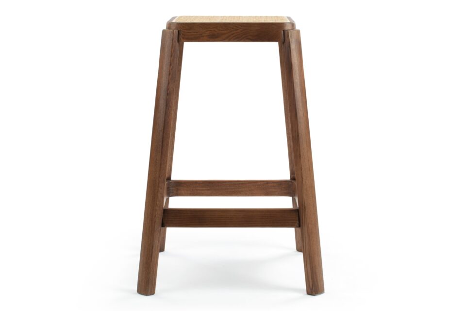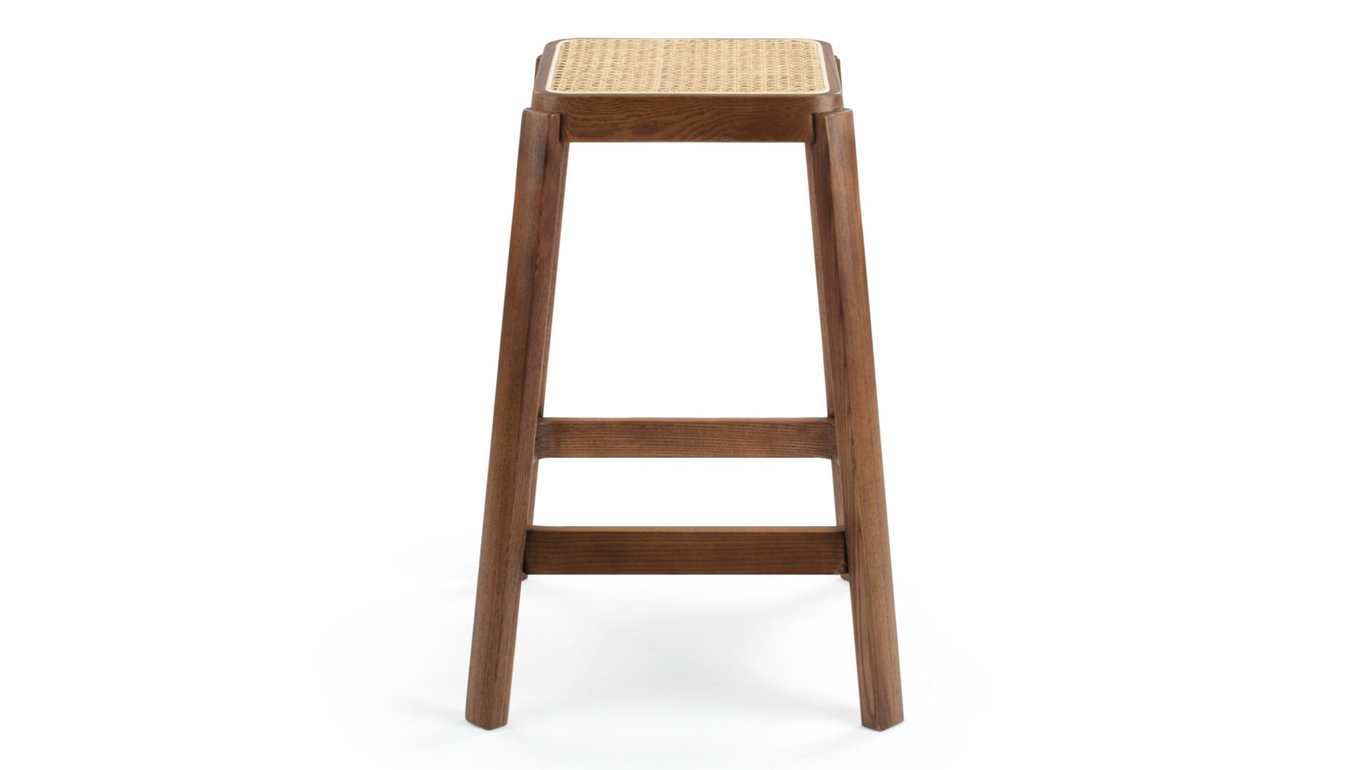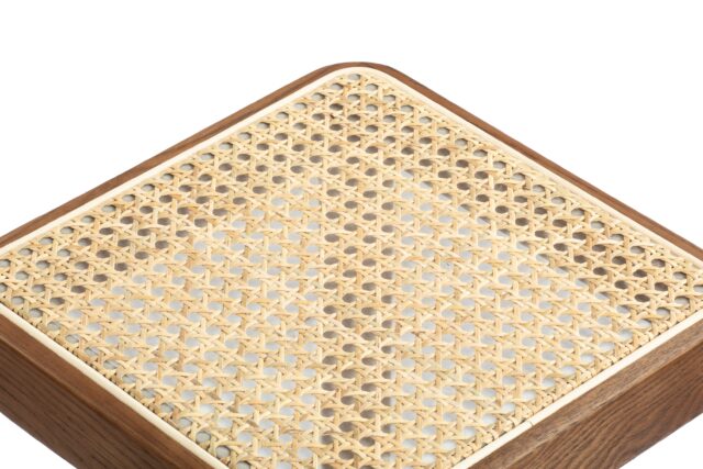 Enhance your space with the sleek design of the stool featuring a solid wood frame with clean lines and a rich finish that beautifully complements the rattan seat. The angled legs not only offer stability but also introduce a touch of architectural charm to the overall look.