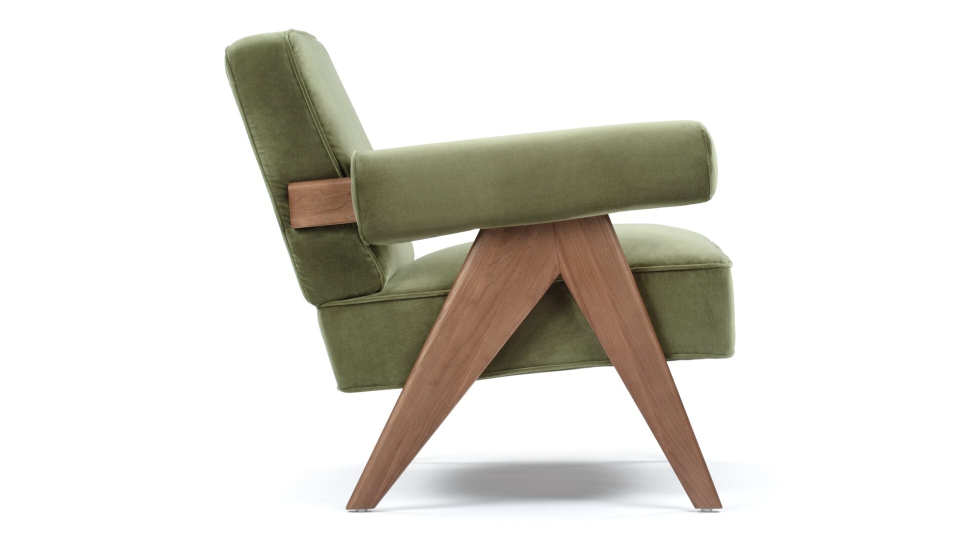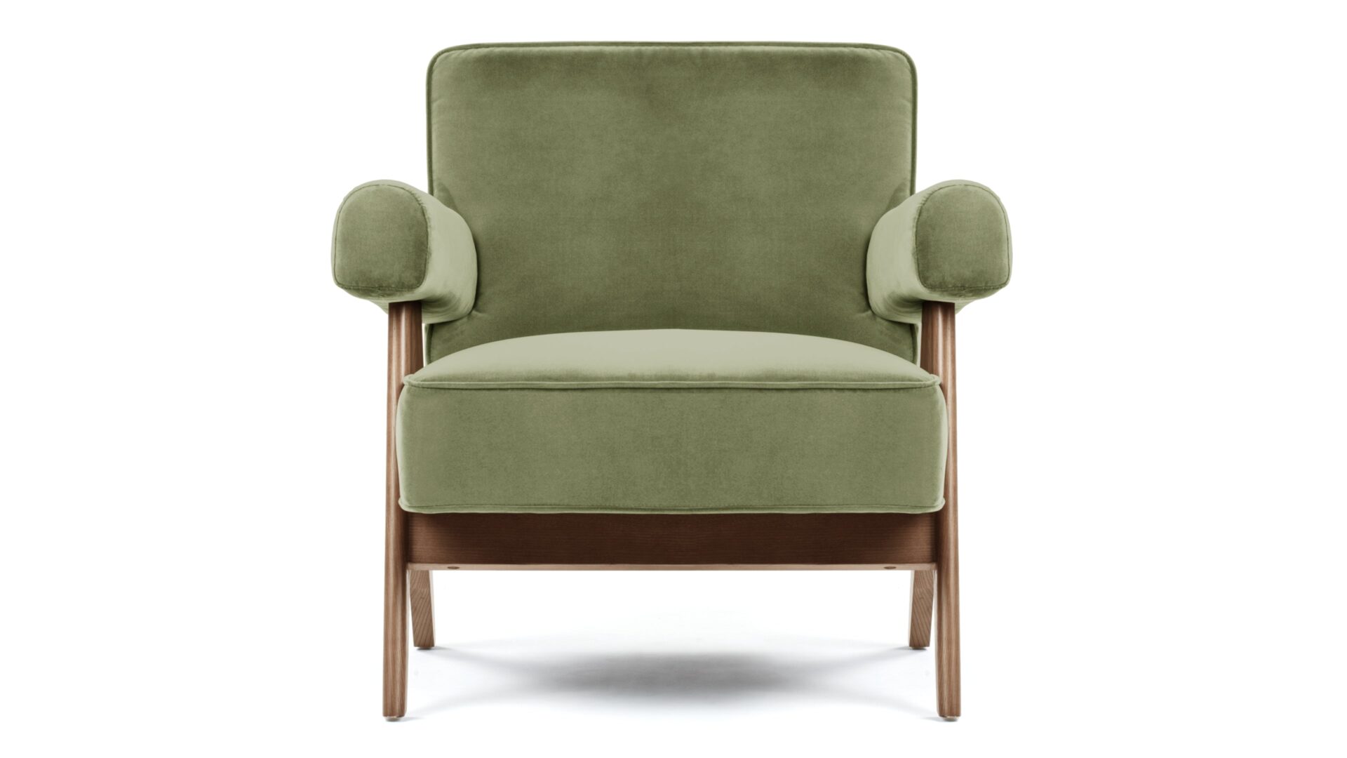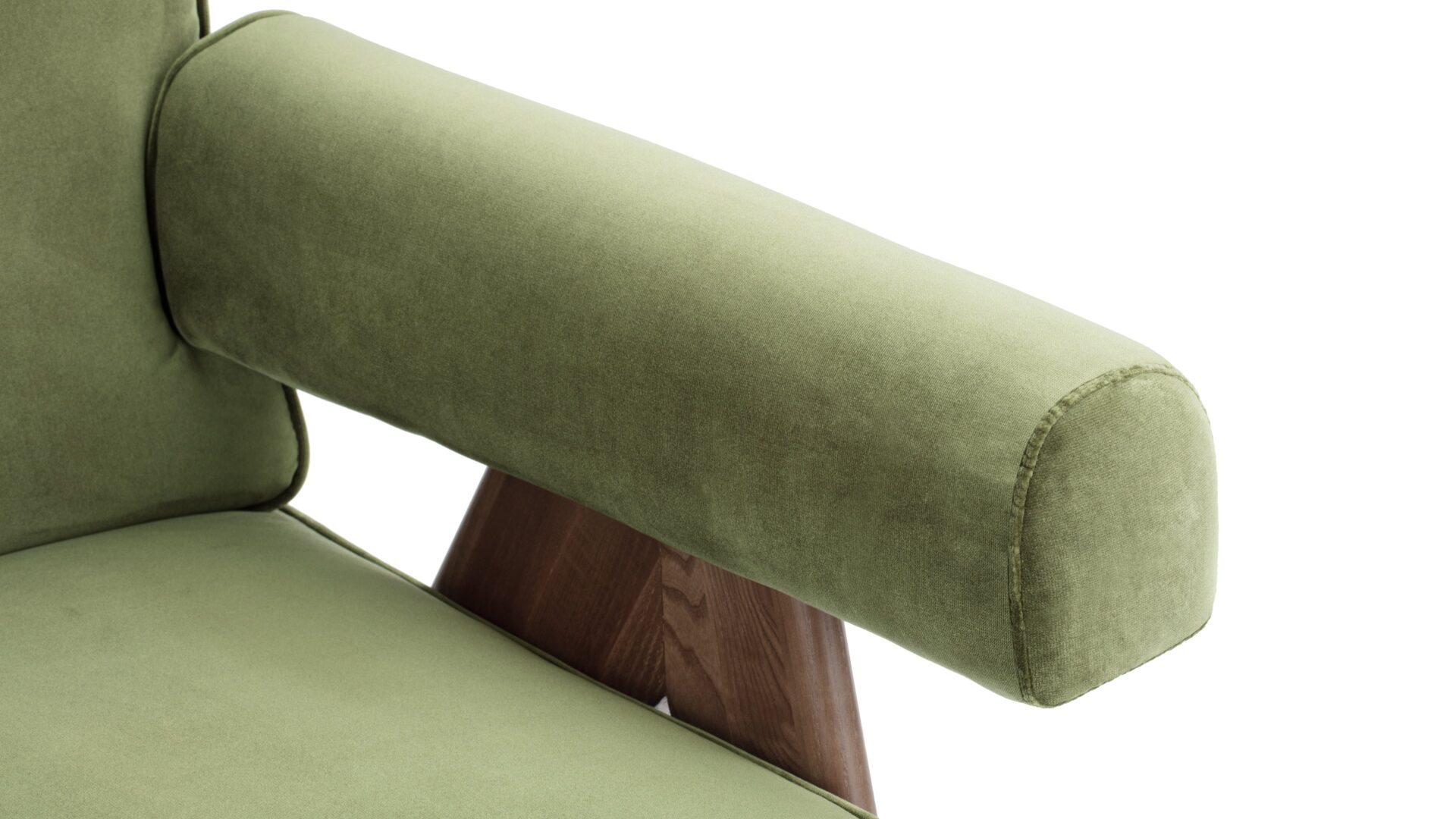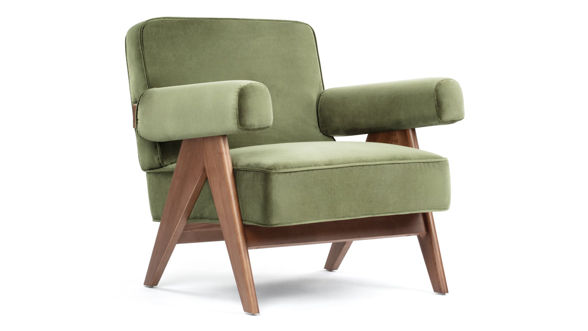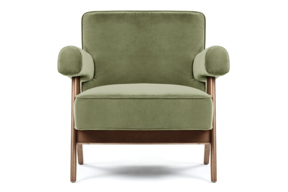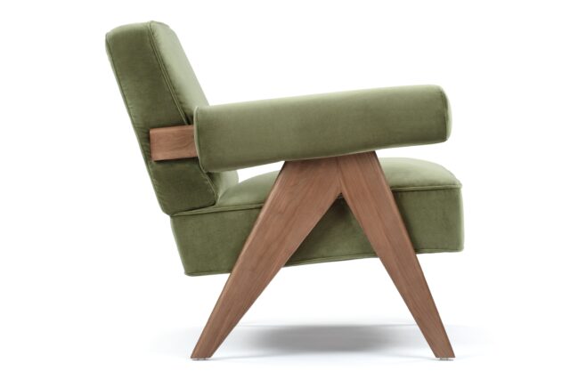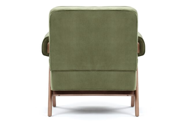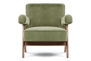 Immerse yourself in the timeless allure of the Pierre Jeanneret Armchair, a tribute to mid-century modern design. Featuring sleek lines and ergonomic construction, it seamlessly merges style and comfort. Bring a touch of sophistication to any space with its versatile olive green velvet material option, enhancing the ambiance with its enduring appeal and adaptability. Crafted with meticulous attention to detail, the Armando Armchair offers unparalleled durability and organic beauty with its natural grain and warm tone wood frame. Experience elevated relaxation and support with its ergonomically designed seat and backrest.