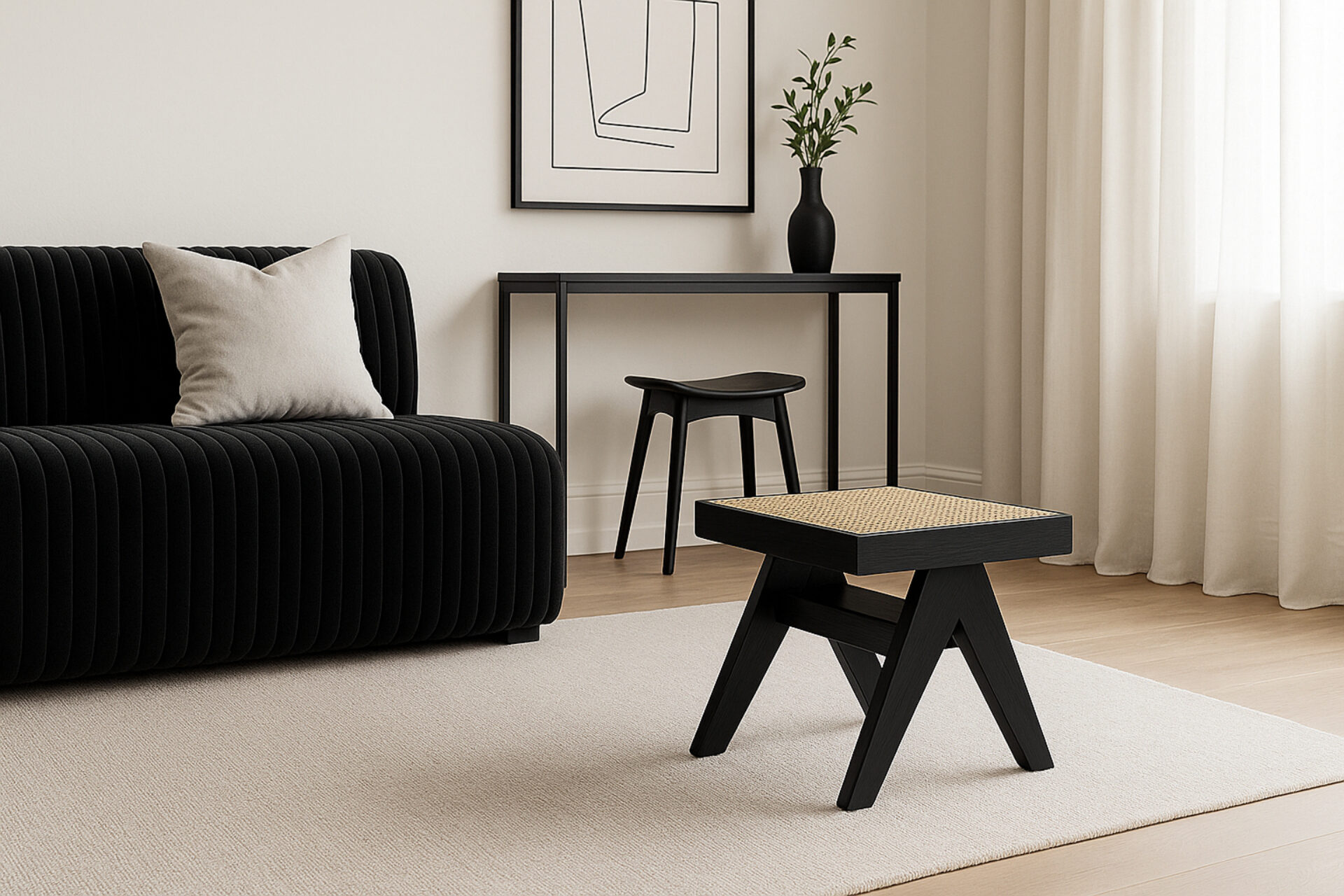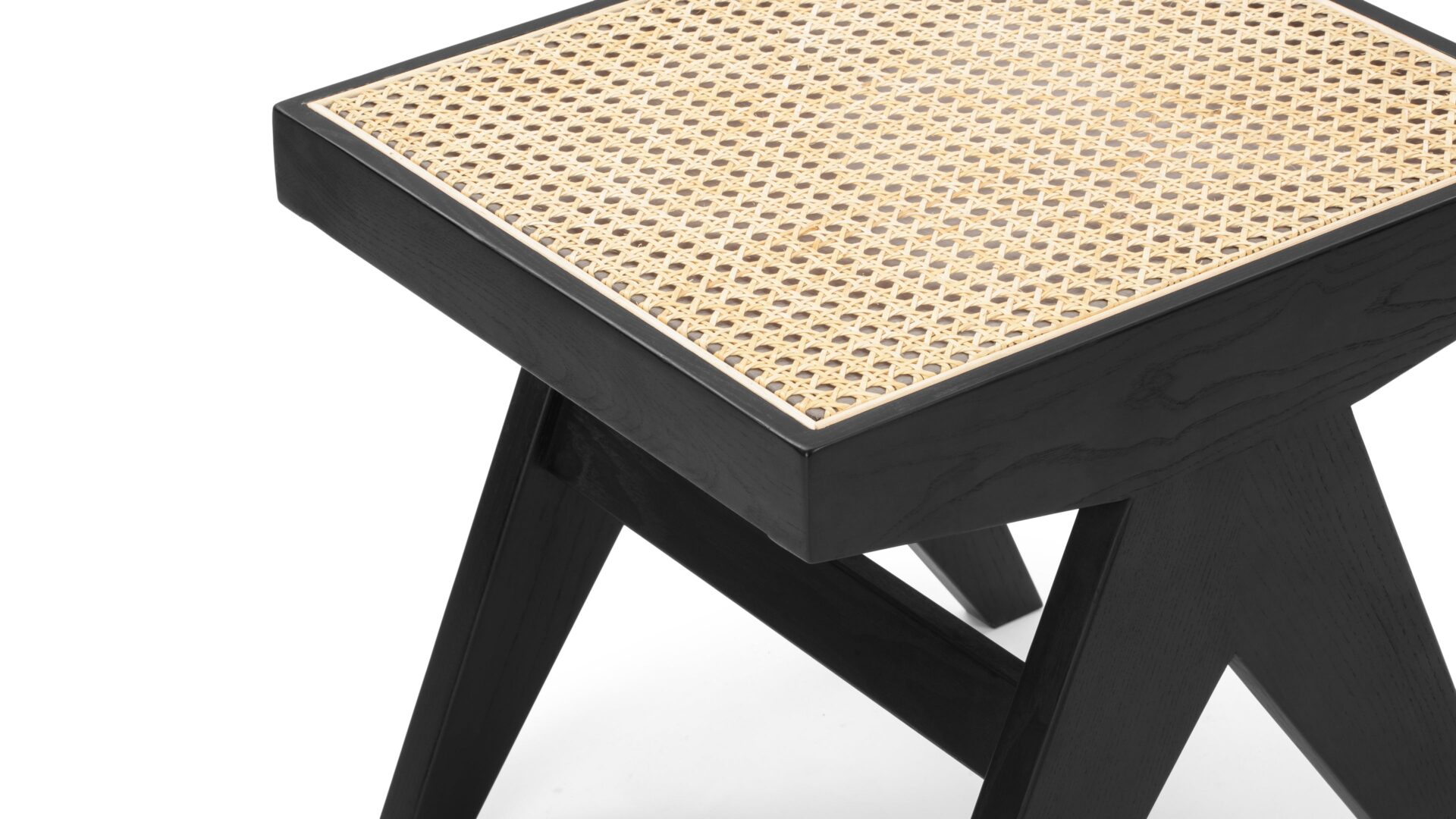 Discover the Pierre Jeanneret Stool, a timeless icon exuding grace and practicality. Meticulously crafted with premium black solid wood and sleek cane seats, this stool radiates subtle opulence. Its elegant silhouette harmonizes with various interior styles. Elevate your space with this durable and versatile piece that beautifully merges aesthetics with functionality.