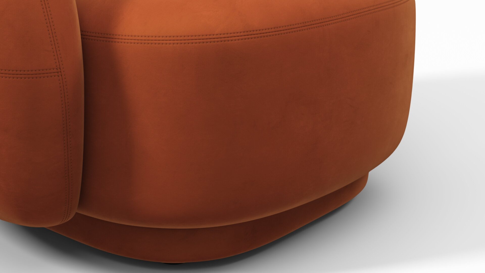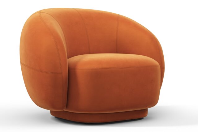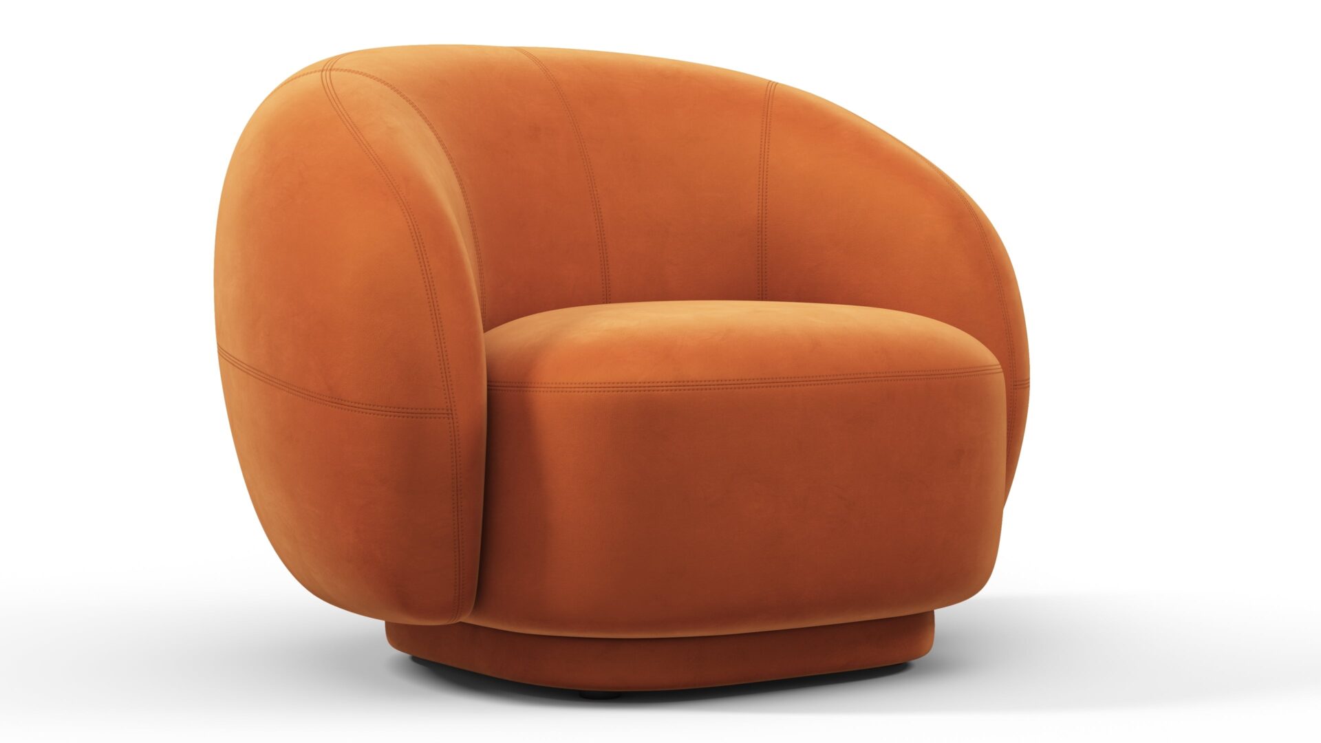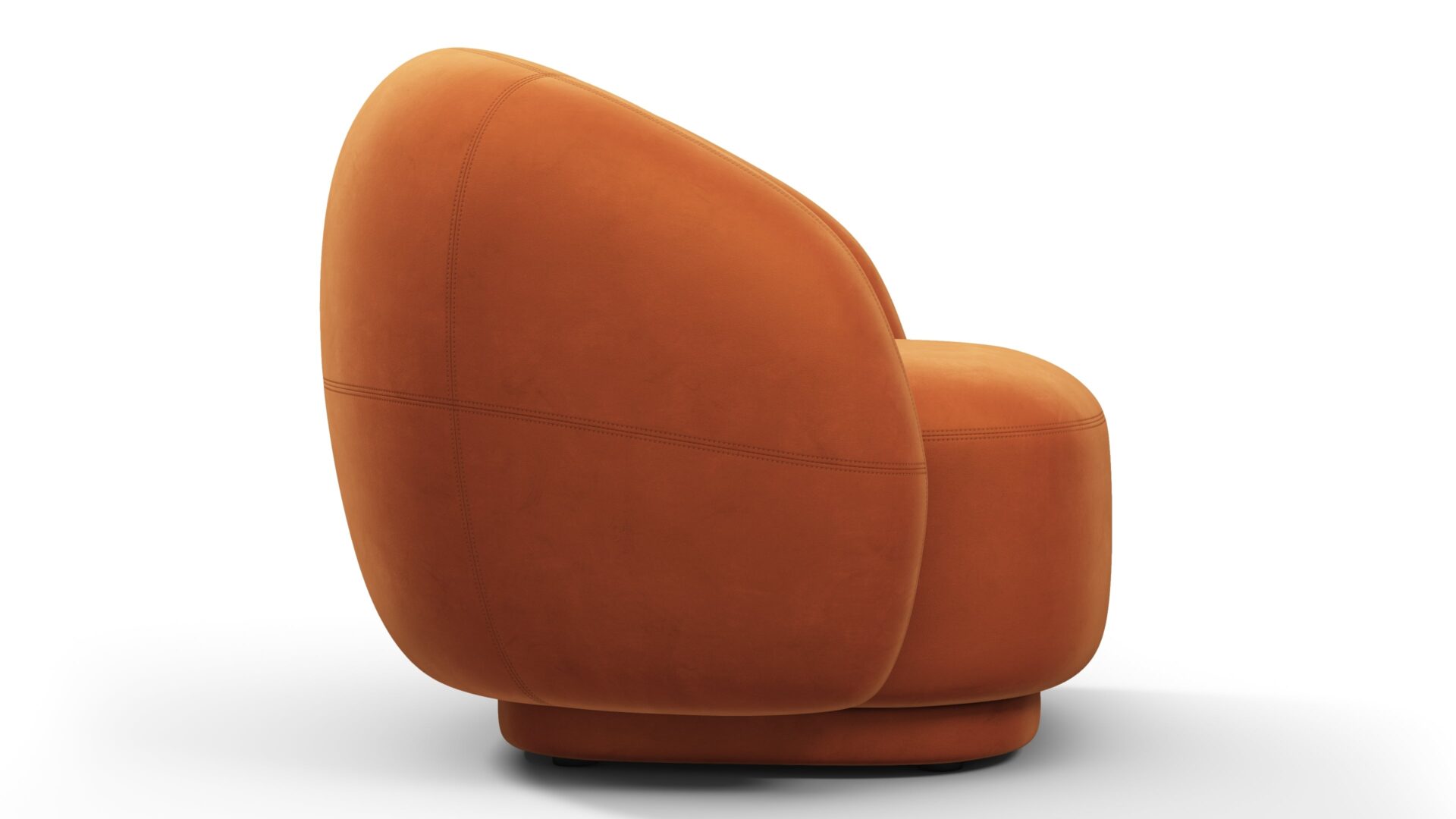 Indulge in the captivating allure of the Julep collection, where graphic simplicity meets whimsy. The iconic silhouette of the Julep pieces reimagines midcentury modern design with a vibrant twist. Featuring the Modern Curvature armchair in Apricot Velvet, its cocoon-like shape exudes cozy comfort with a modern classic touch. This sleek and contemporary piece seamlessly blends vintage charm with modern sophistication, creating a striking statement in any contemporary living space.