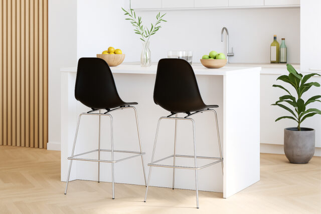 Elevate your space with the sleek and contemporary molded Barcelona Barstool in Black. Crafted with premium materials, it offers structural security and modern design, contouring to the body for maximum comfort. The contrasting materials add visual charm, making it the perfect choice for minimalist and industrial aesthetics. Pair it with the versatile Kooper stool for a seamless transition between retro and modern styles.