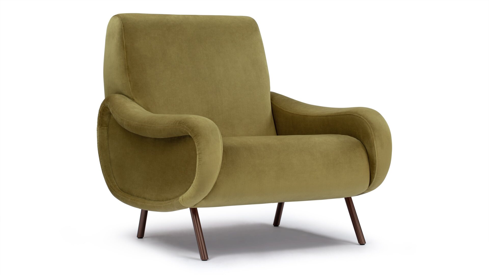 Retro-chic Lady Armchair: Olive Gold Luxe