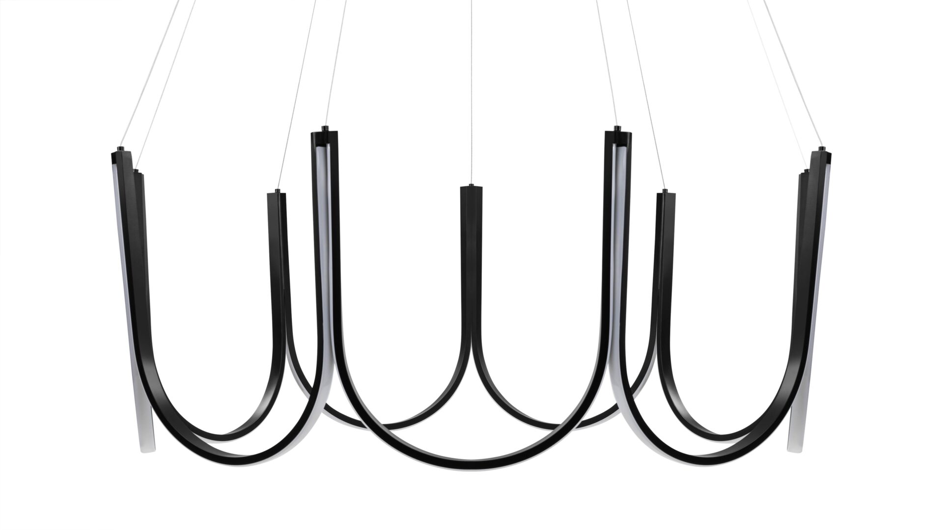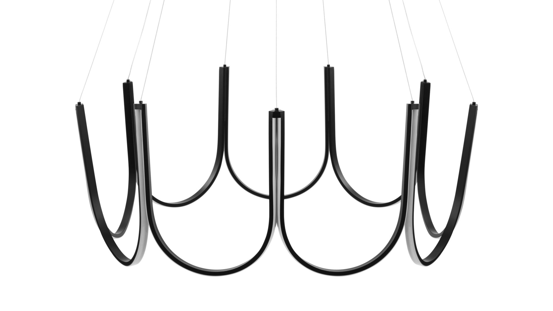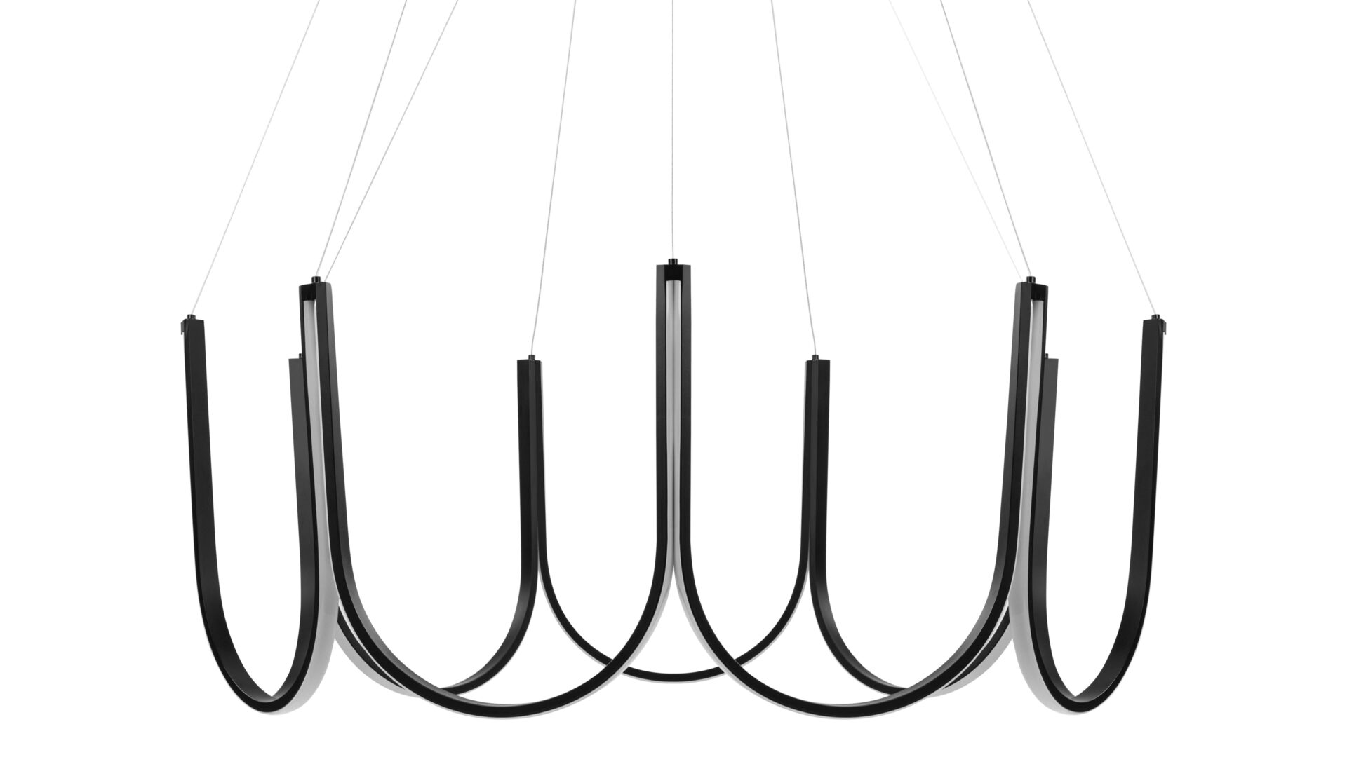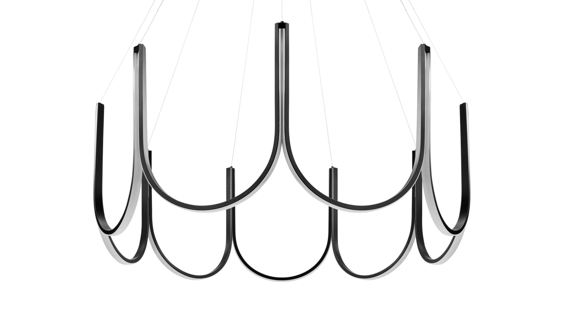 Crafted from premium silicone and high-quality aluminum, this exquisite chandelier showcases gracefully curved arms in a scalloped pattern with an integrated LED strip that elegantly follows the contours of the frame. Suspended by discreet wires, this luminary exudes a sense of weightlessness and sophistication.