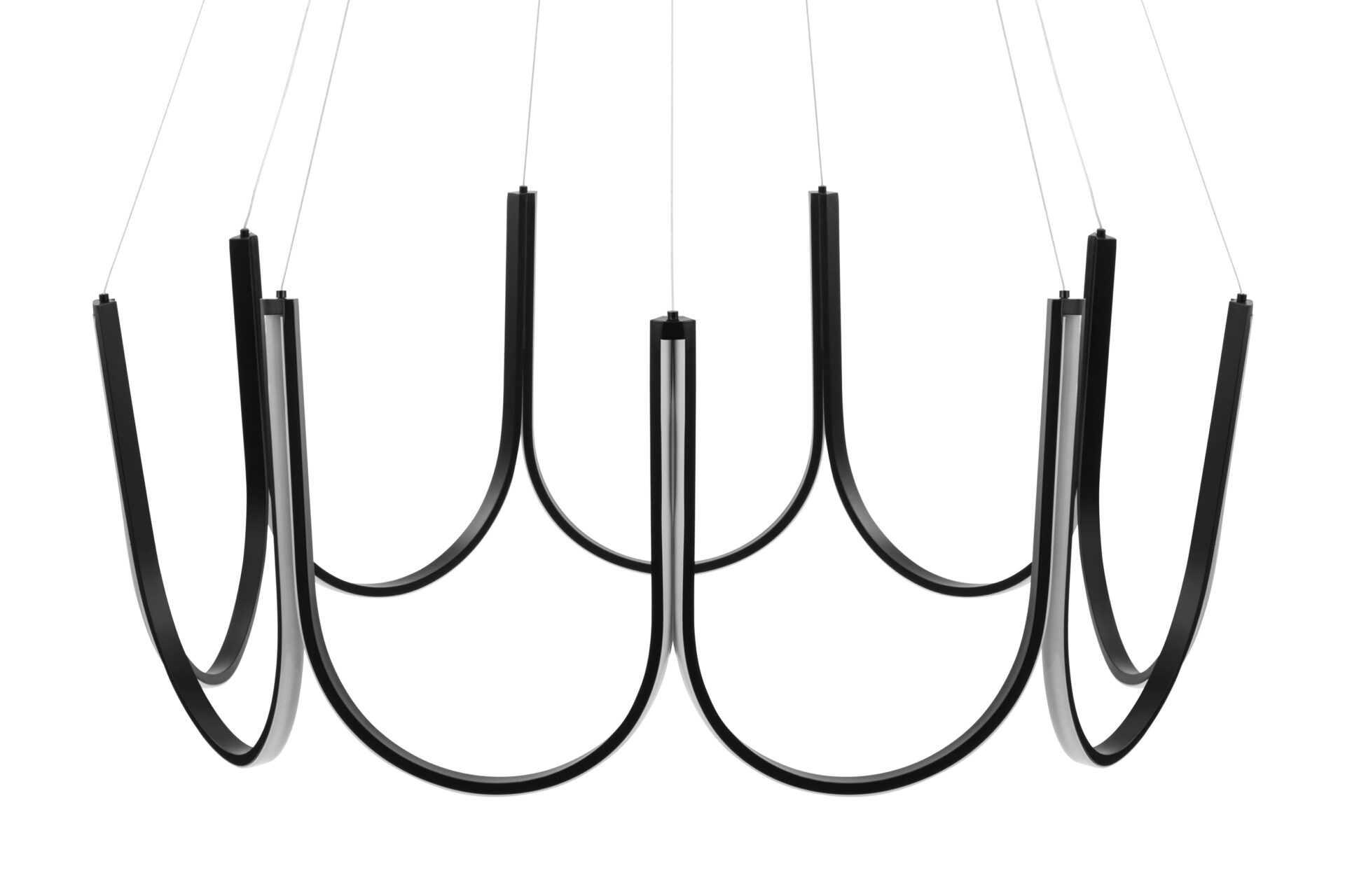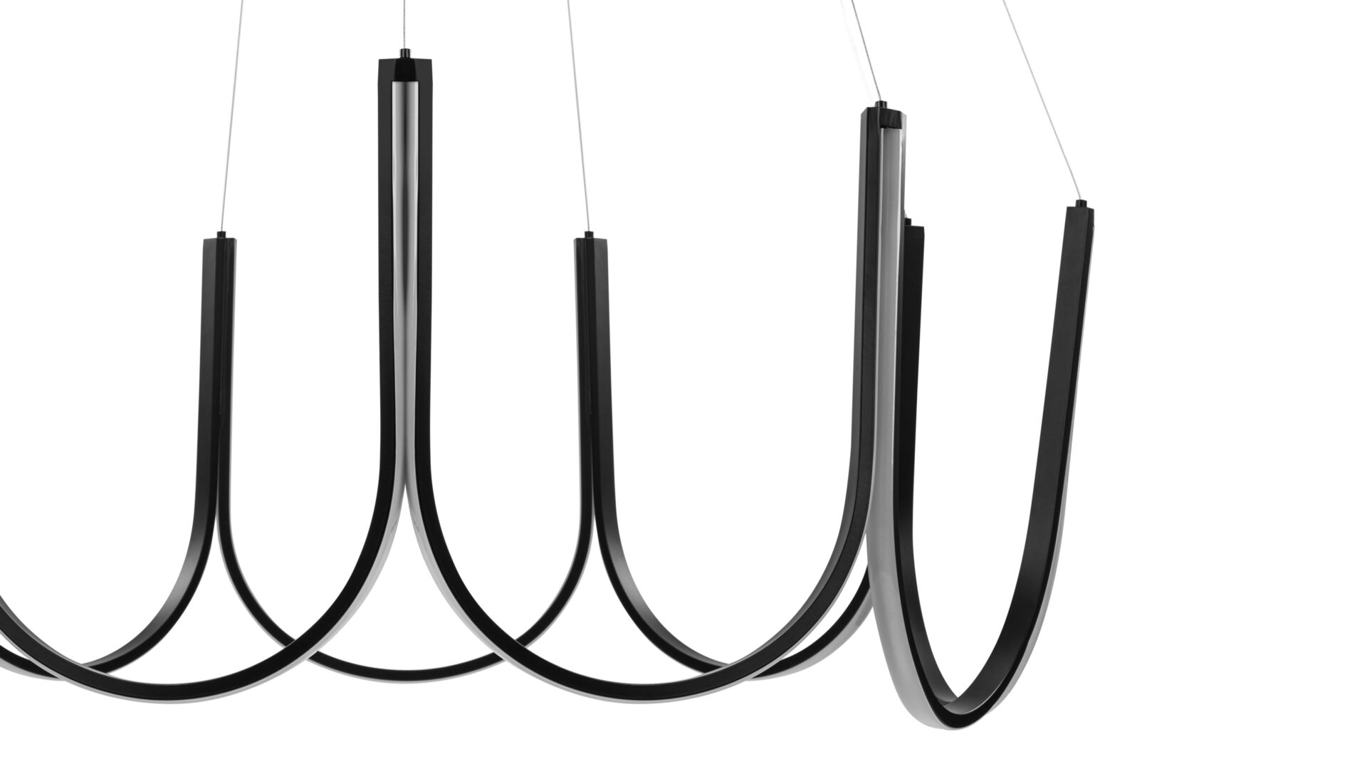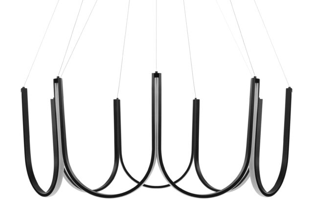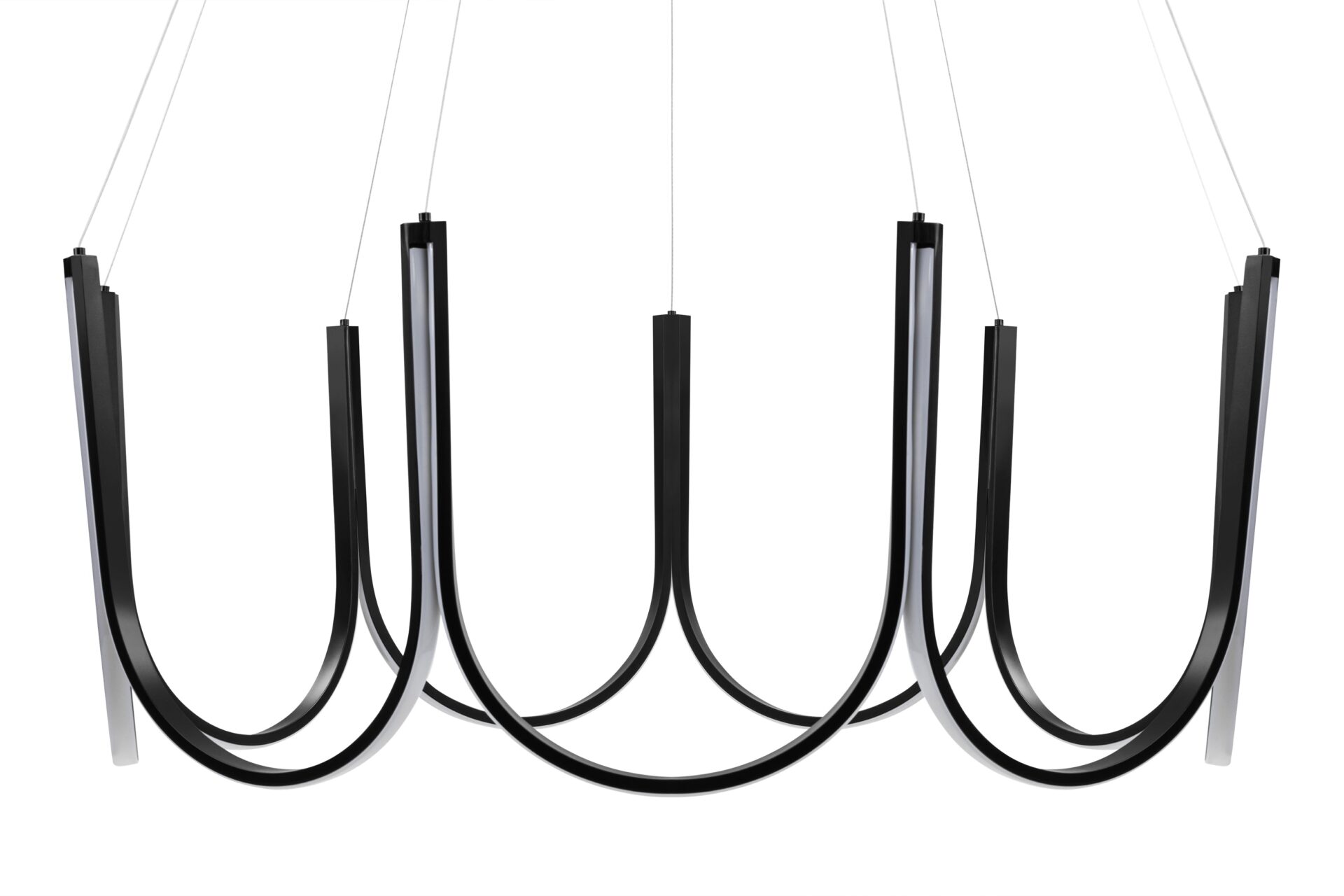 Crafted from premium silicone and high-quality aluminum, this exquisite chandelier showcases gracefully curved arms in a scalloped pattern with an integrated LED strip that elegantly follows the contours of the frame. Suspended by discreet wires, this luminary exudes a sense of weightlessness and sophistication.