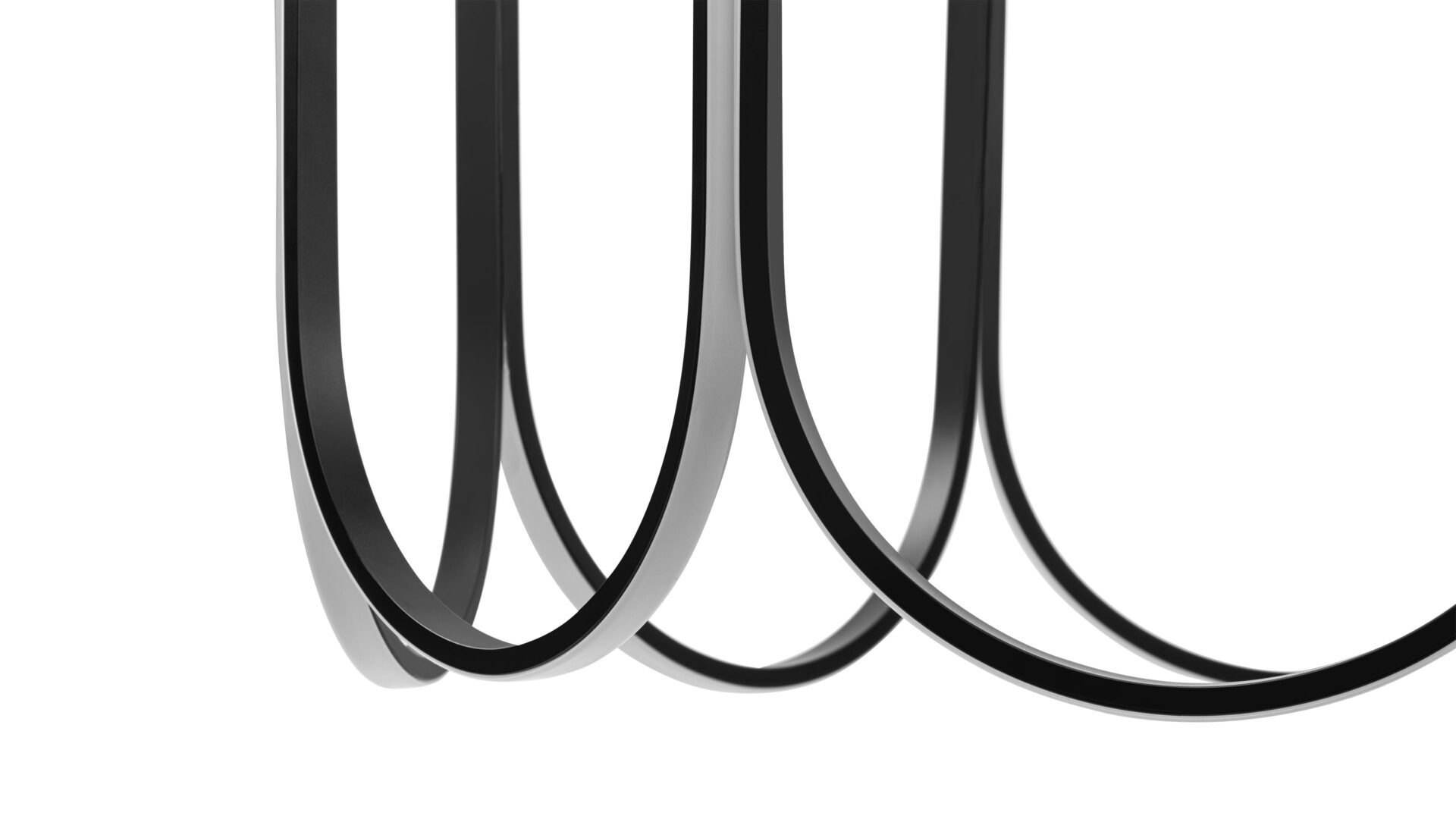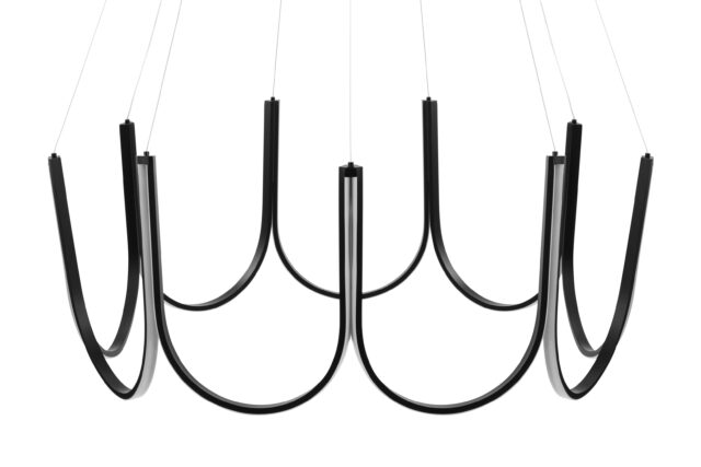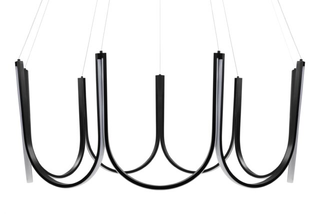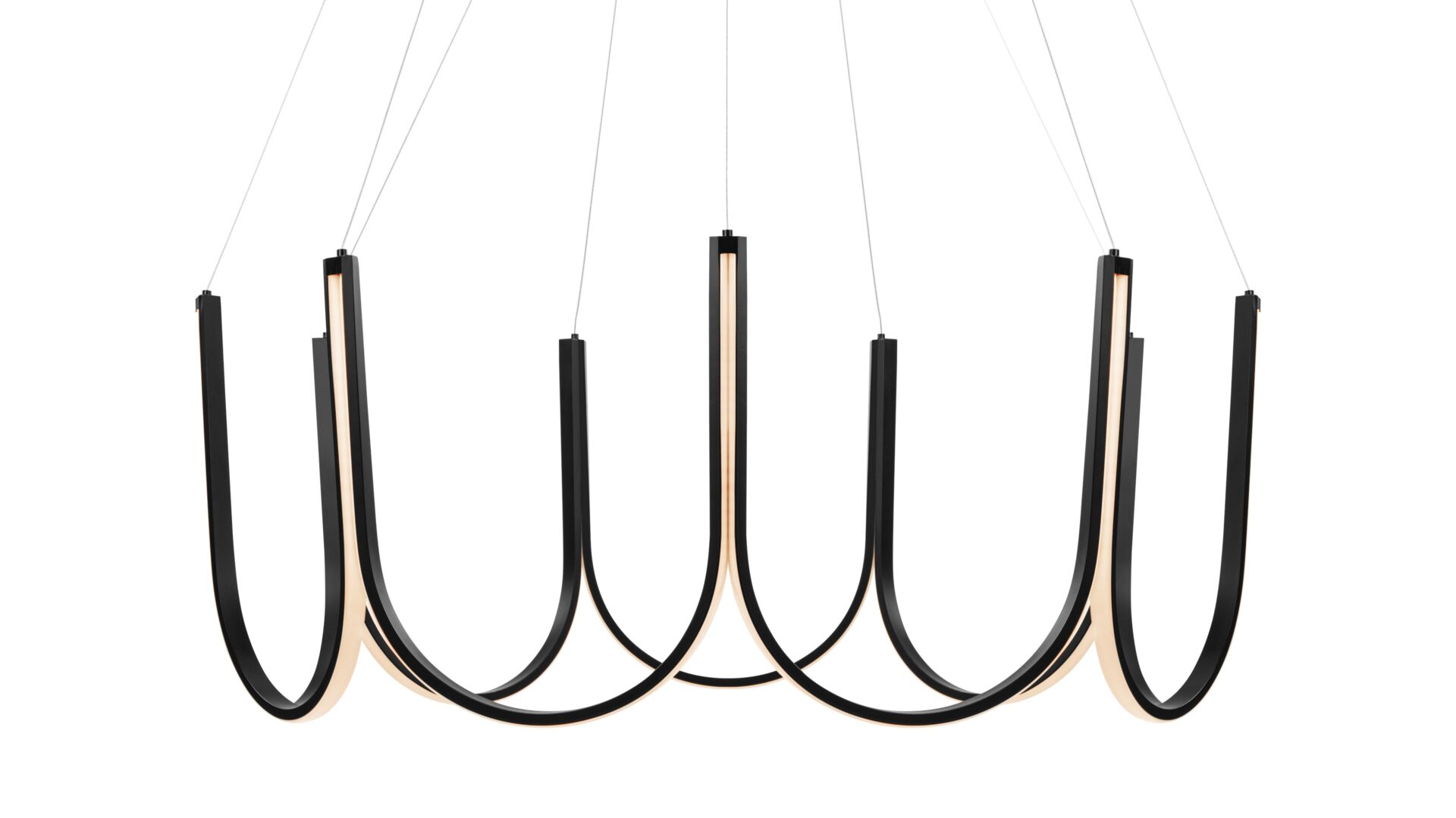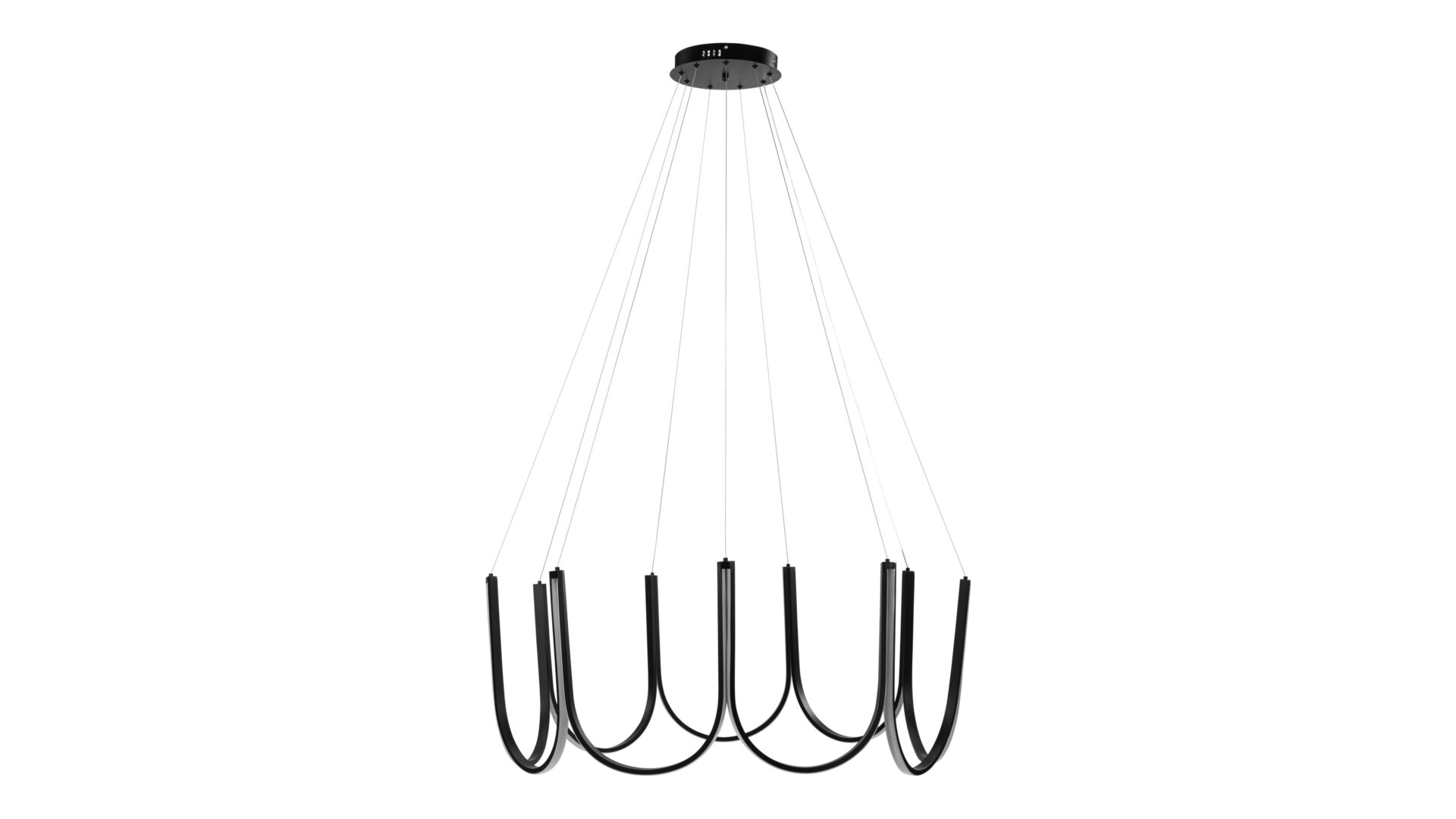 Crafted from premium silicone and high-quality aluminum, this exquisite chandelier showcases gracefully curved arms in a scalloped pattern with an integrated LED strip that elegantly follows the contours of the frame. Suspended by discreet wires, this luminary exudes a sense of weightlessness and sophistication.