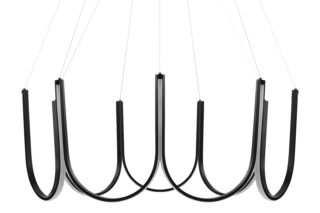 Illuminate your space with the Lagom Chandelier, a ceiling light fixture that emits a warm white light in a downward direction. Crafted from silicone and aluminum, this chandelier showcases curved arms in a scalloped design with an LED strip running beneath to accentuate the frame's lines. Suspended by discreet wires, it creates a weightless and sophisticated look. Its minimalist aesthetic adds a striking touch to any setting, whether placed above a dining table or as a centerpiece in a living space. The Lagom Chandelier seamlessly combines functionality and visual appeal, making it an excellent choice for those seeking a contemporary and elegant lighting solution.