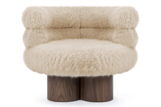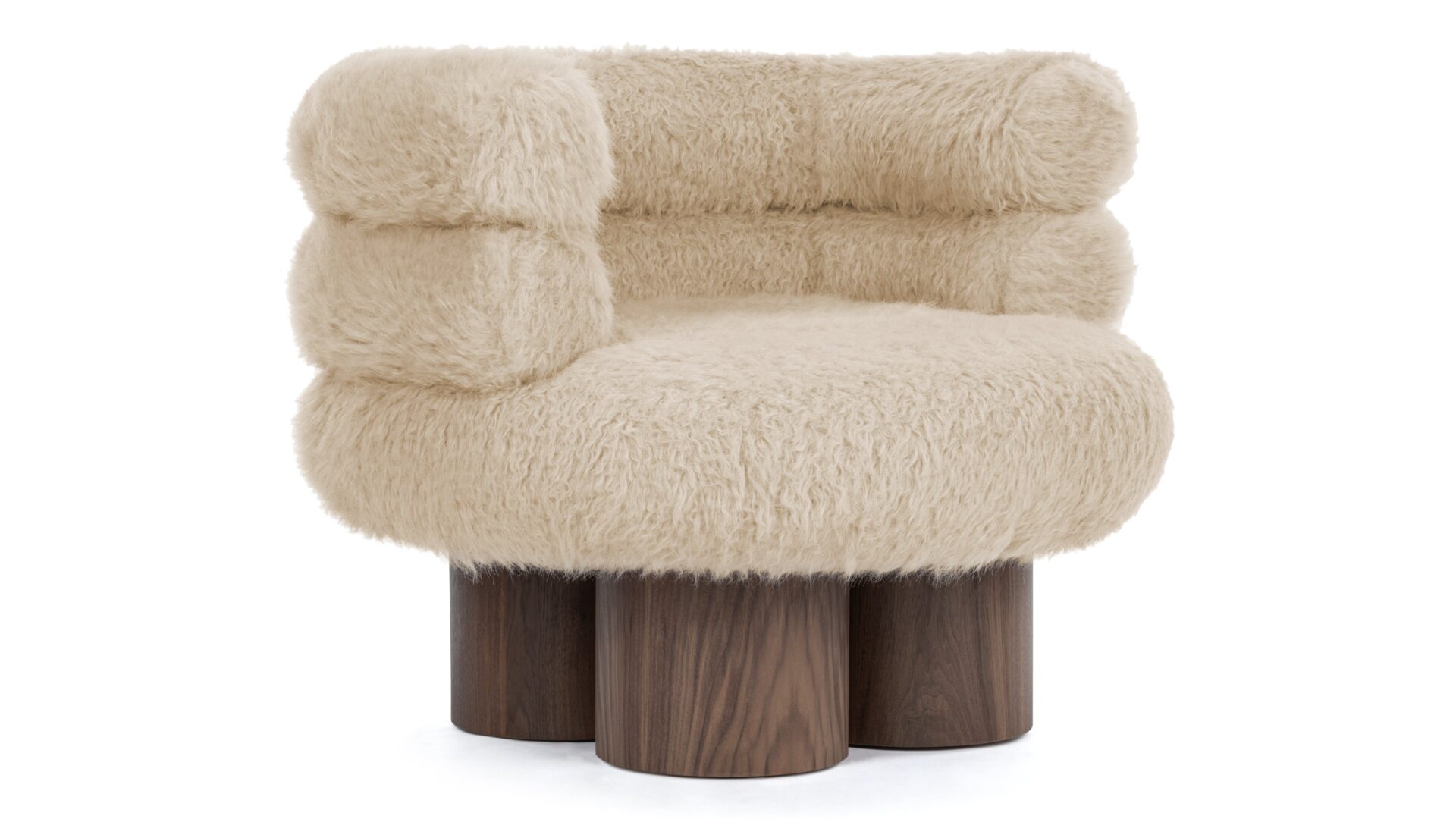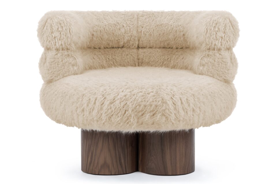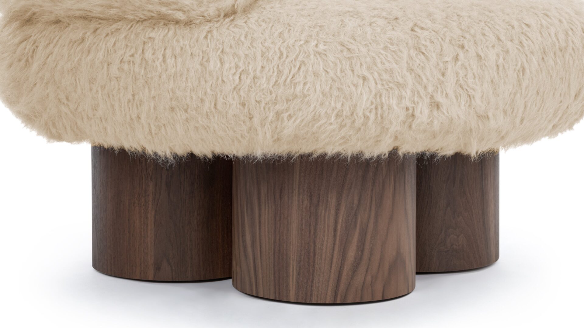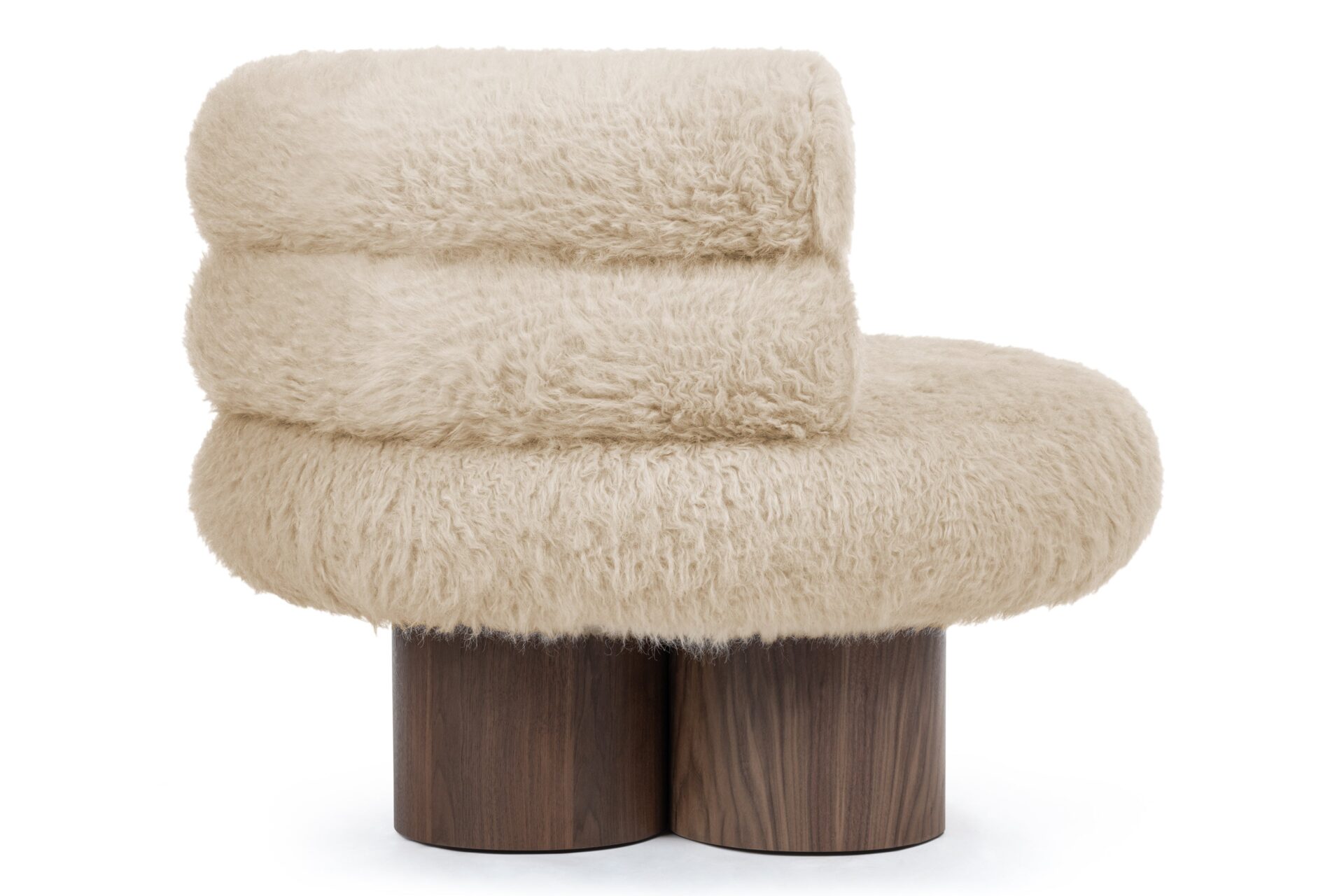 Inspired by the clouds, mist, and mountain ranges of Momostenango in the afternoon, the design of the Lana Chair captures a playful and whimsical essence, bursting with character. Crafted with luxurious materials and an imaginative form, this chair exudes other-worldly softness reminiscent of fleece-like upholstery. Paired with rich walnut legs, the Lana Chair draws the eye, inviting you into its cozy embrace.