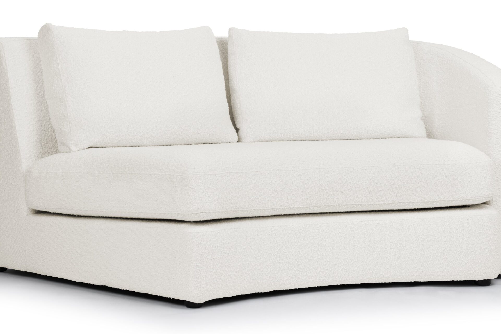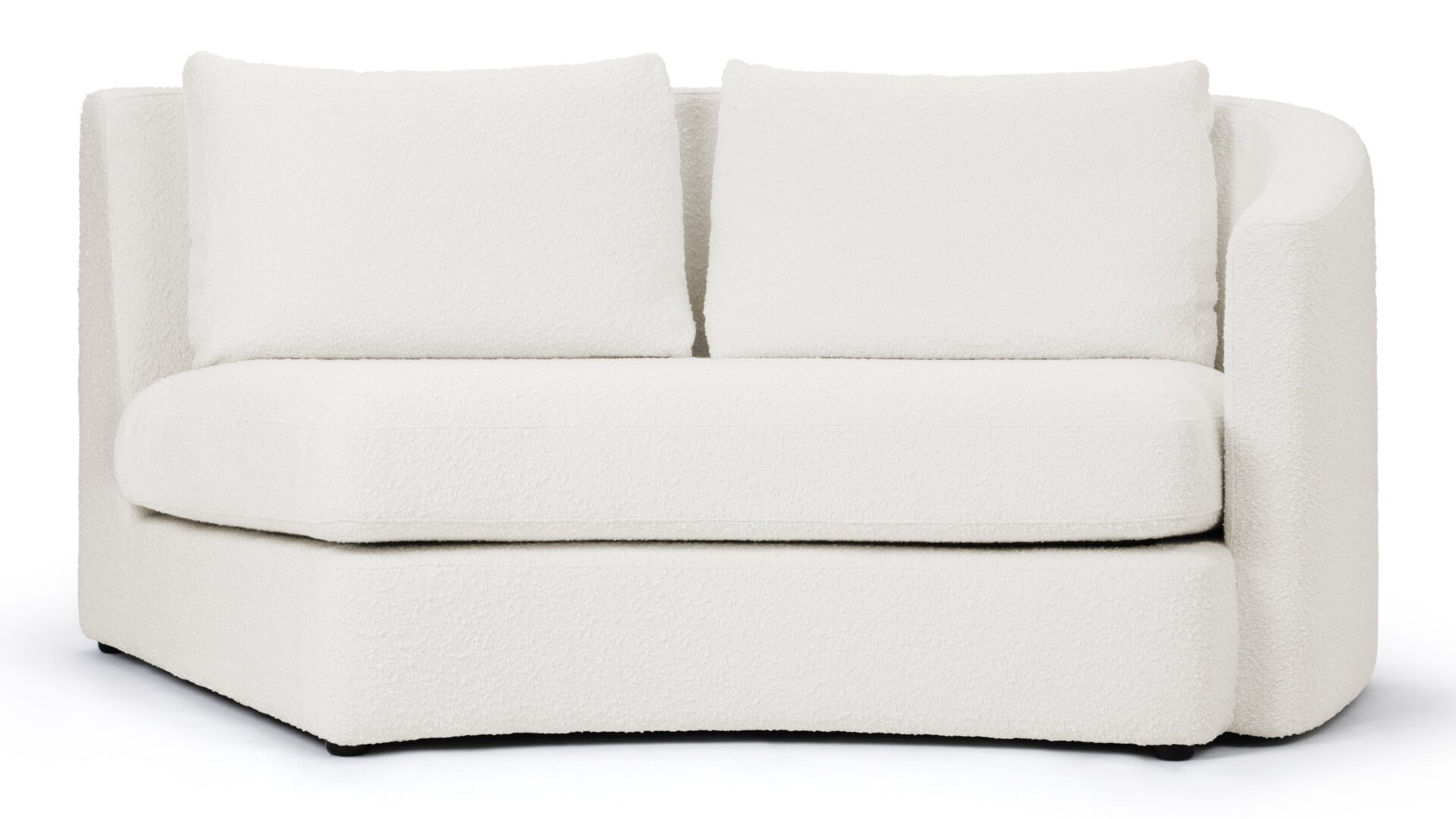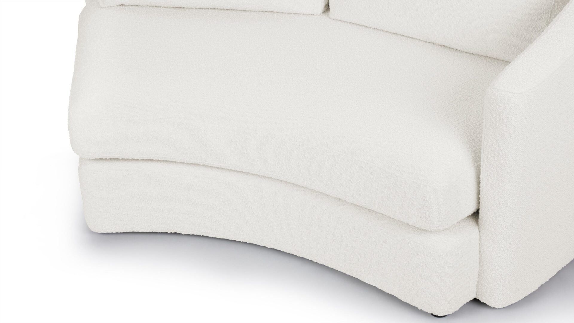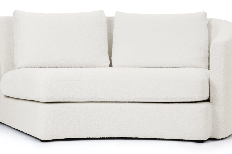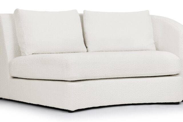 Elegantly Flowing CurvesIntroducing the Lanvin sectional collection featuring a sleek, curved silhouette and a contemporary minimalist design inspired by retro conversation sets. The warm white boucle fabric not only complements but also elevates the tactile and visual appeal of any room.