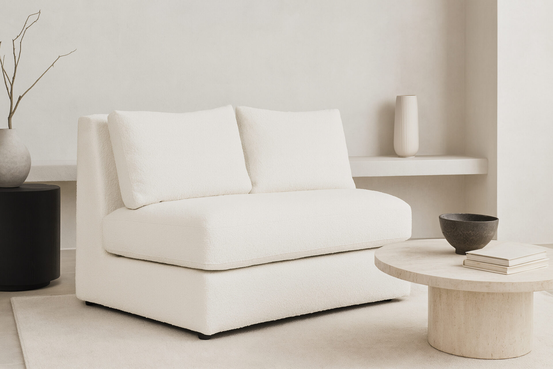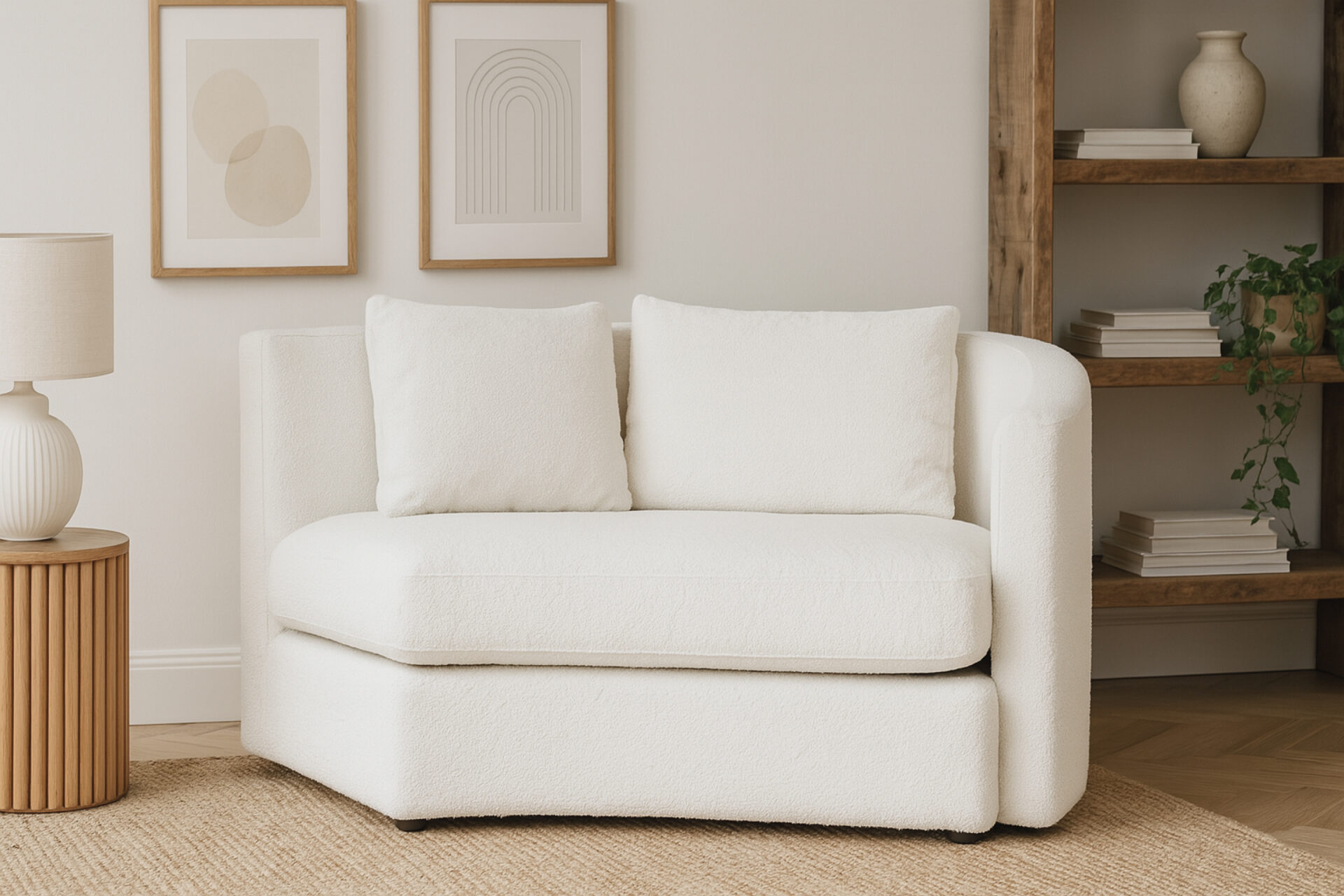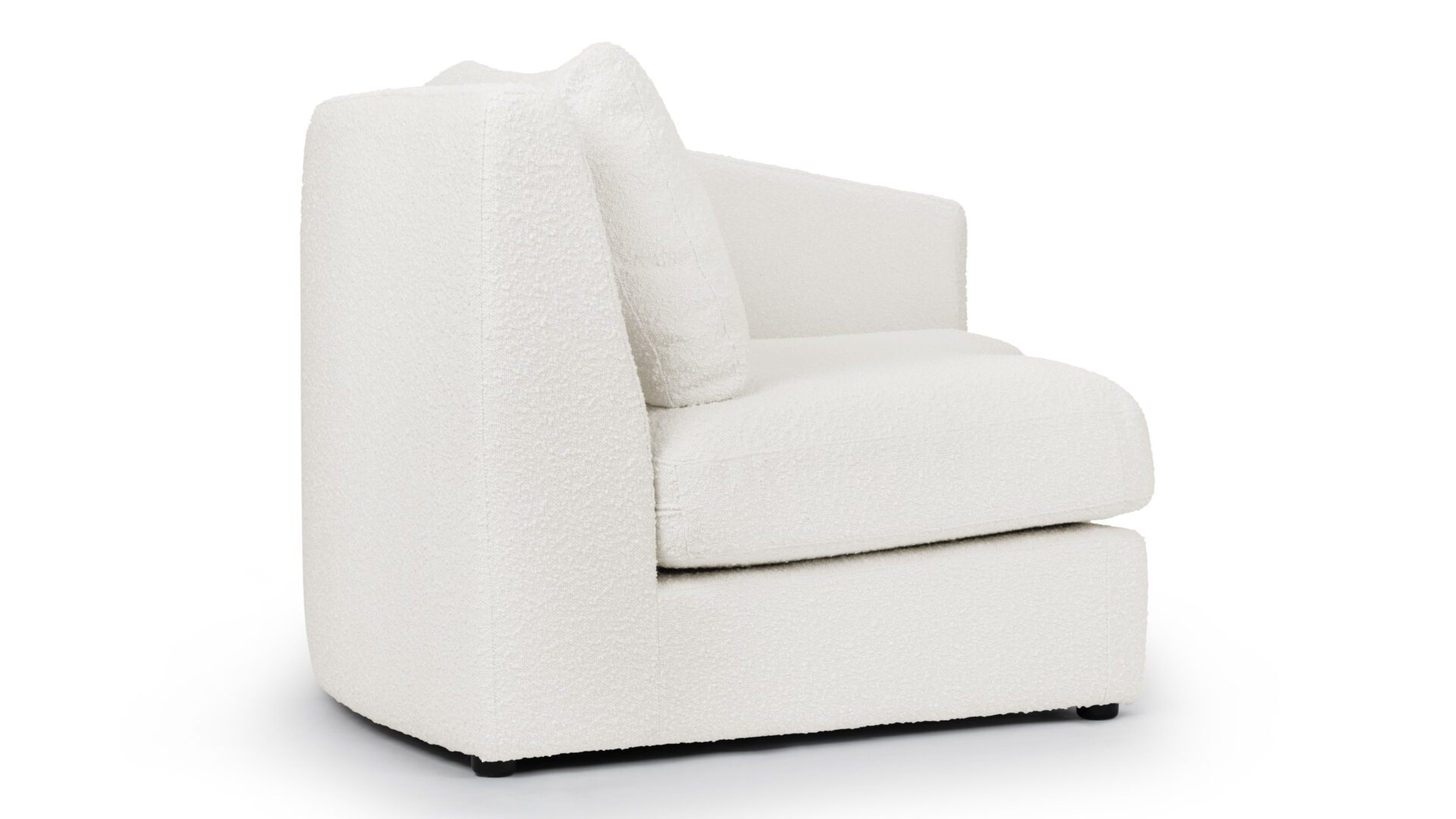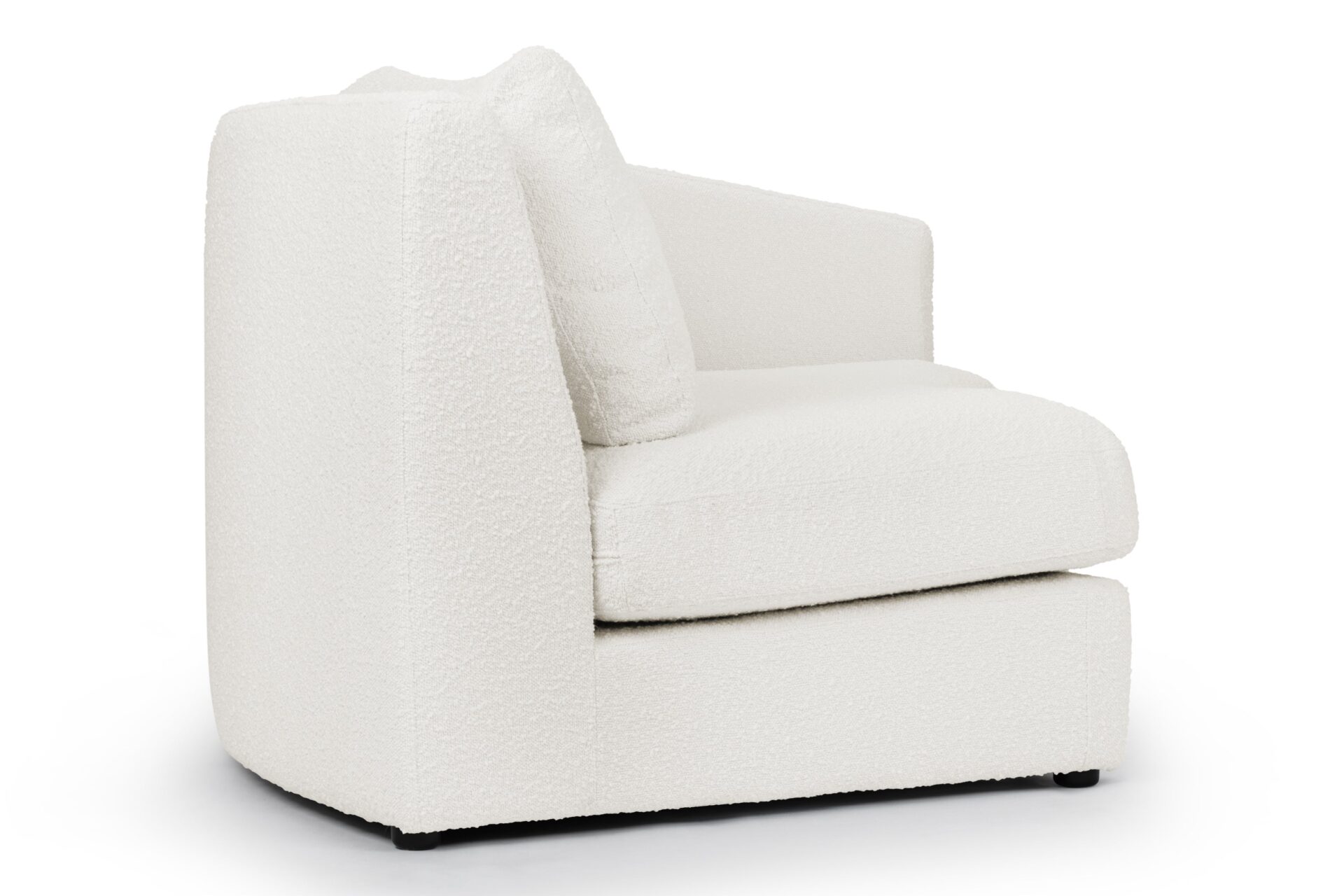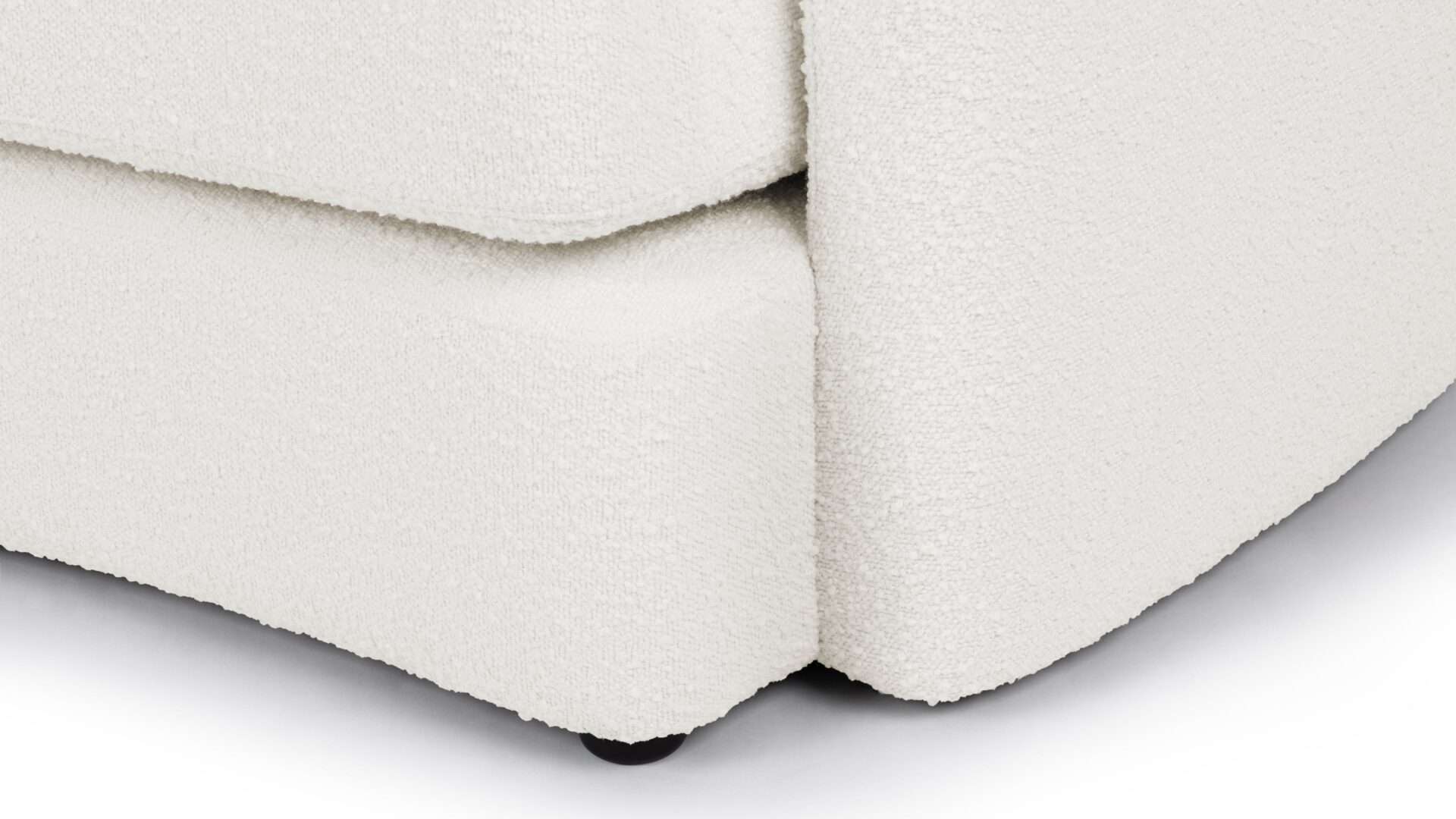 Elegant TextureExperience the luxurious texture of soft boucle fabric with our XYZ Sectional. Its sleek European-inspired silhouette is complemented by the tactile richness of the fabric. The warm white hue of the fabric enhances both comfort and contemporary visual appeal.
