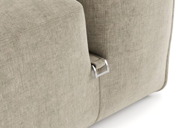 Discover our collection, available in both neutral-toned fabric and leather or vegan suede. Experience the deep comfort provided by the foam interior, complemented by understated wooden legs and sleek metal buckles for easy configuration.