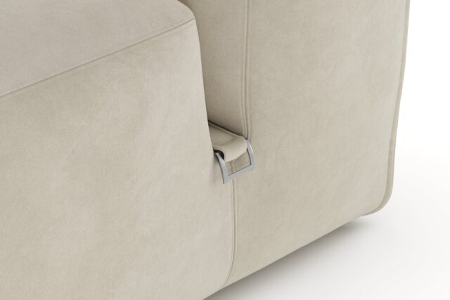 Discover our collection, available in both neutral-toned fabric and leather or vegan suede. Experience the deep comfort provided by the foam interior, complemented by understated wooden legs and sleek metal buckles for easy configuration.