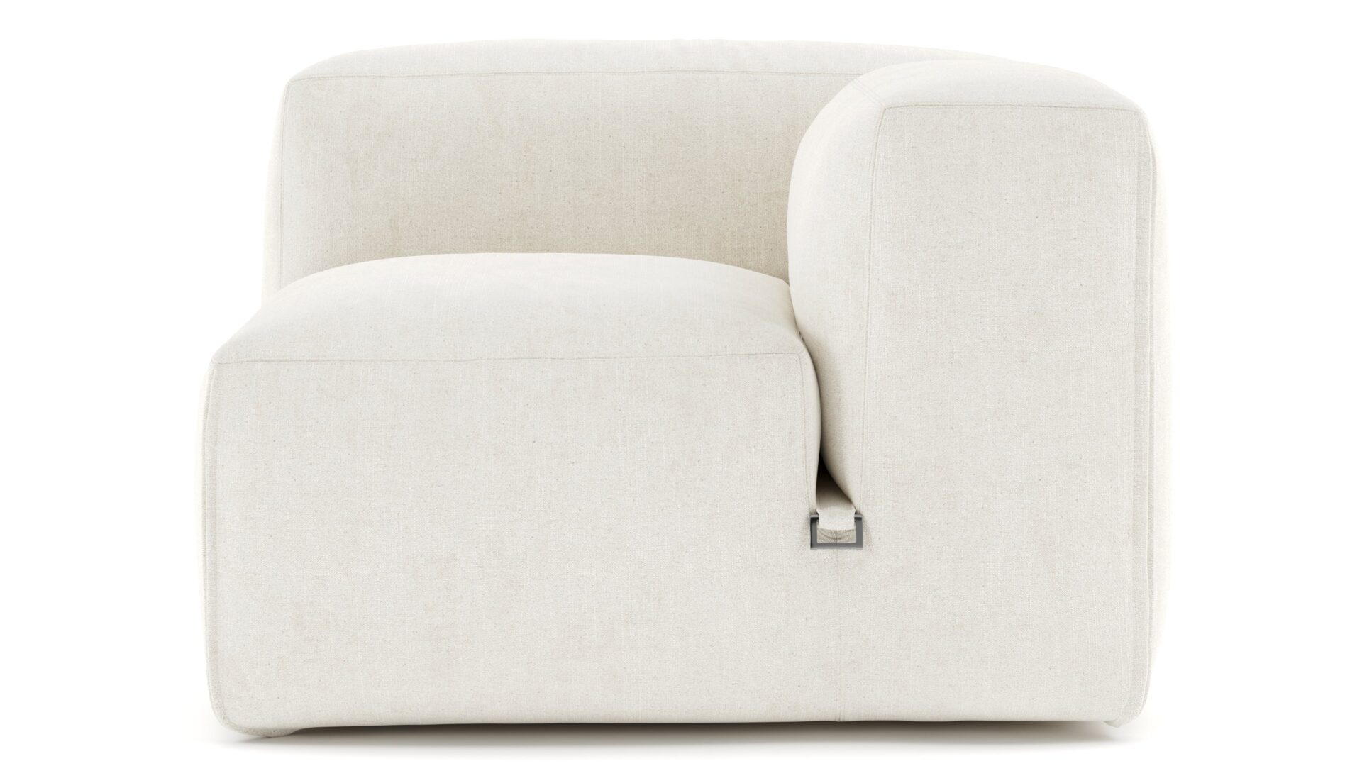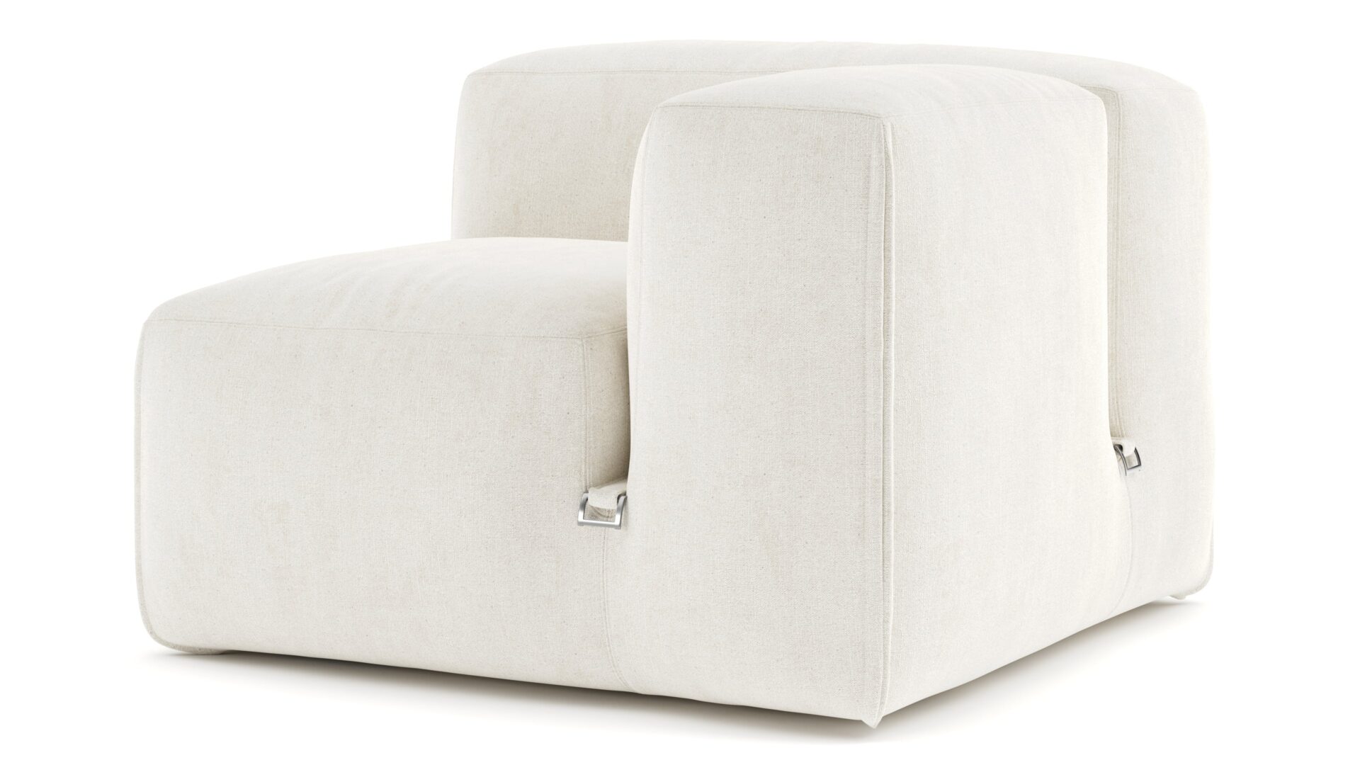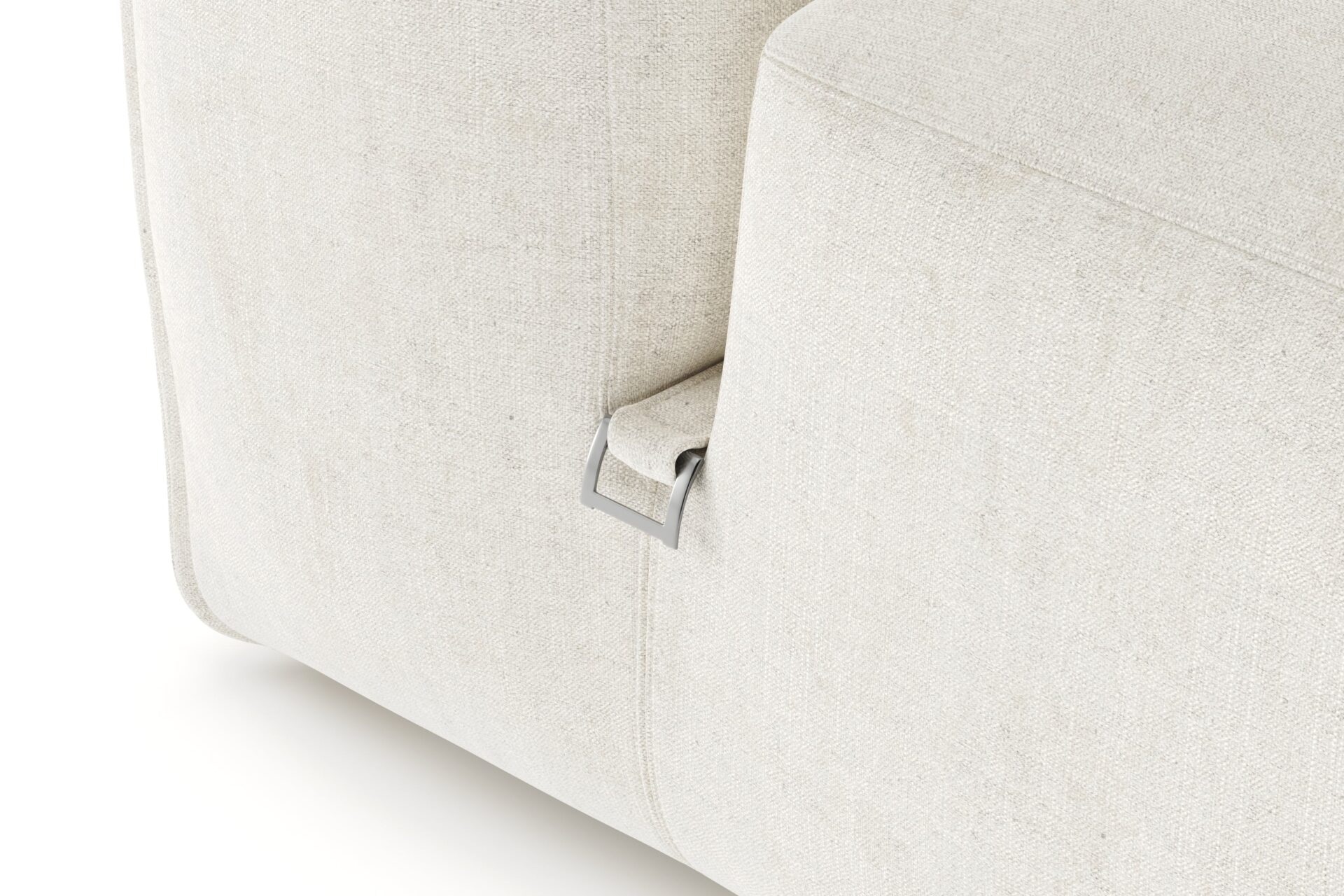 Discover the elegant and versatile Le Mura Sectional collection featuring the luxurious Natural Linen variation. With a plush foam interior and soft geometric shapes, this piece offers deep comfort and effortless style. The understated wooden legs and sleek metal buckles allow for easy reconfiguration, making it a perfect fit for any living space.