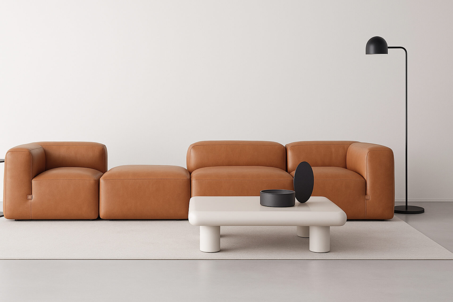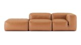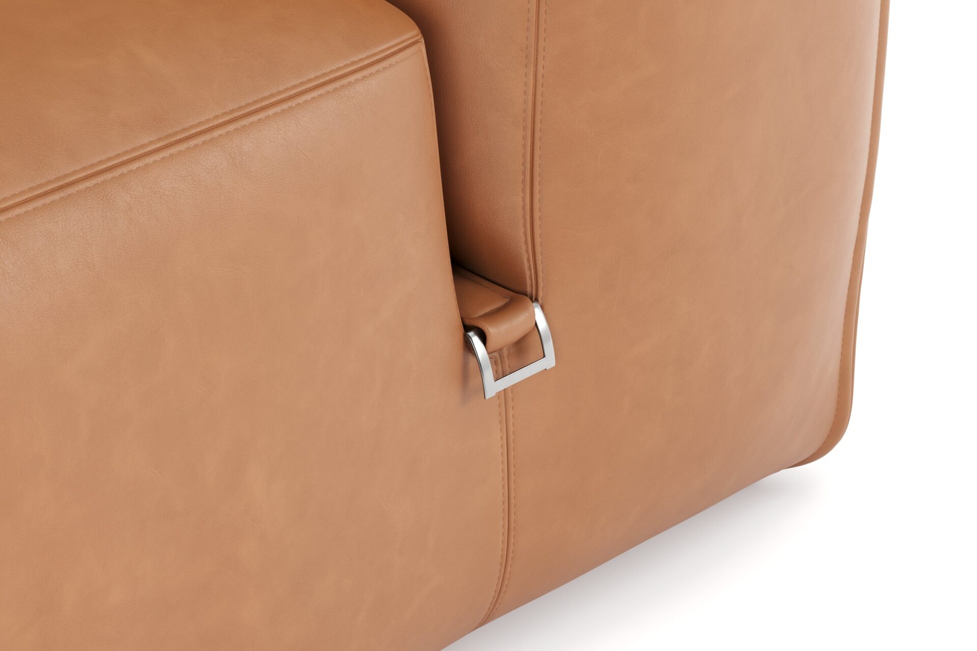 Discover our collection, available in both neutral-toned fabric and leather or vegan suede. Experience the deep comfort provided by the foam interior, complemented by understated wooden legs and sleek metal buckles for easy configuration.