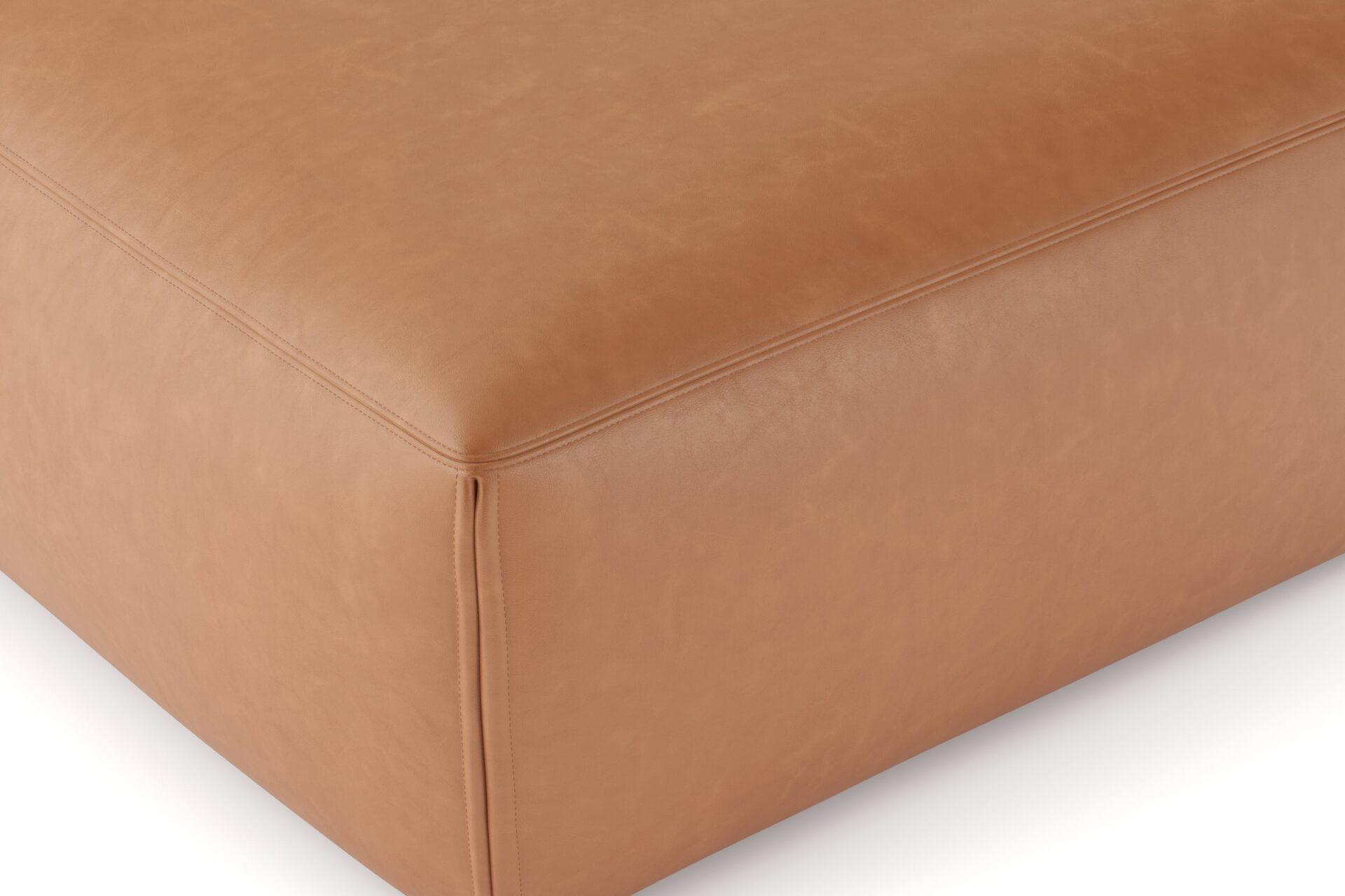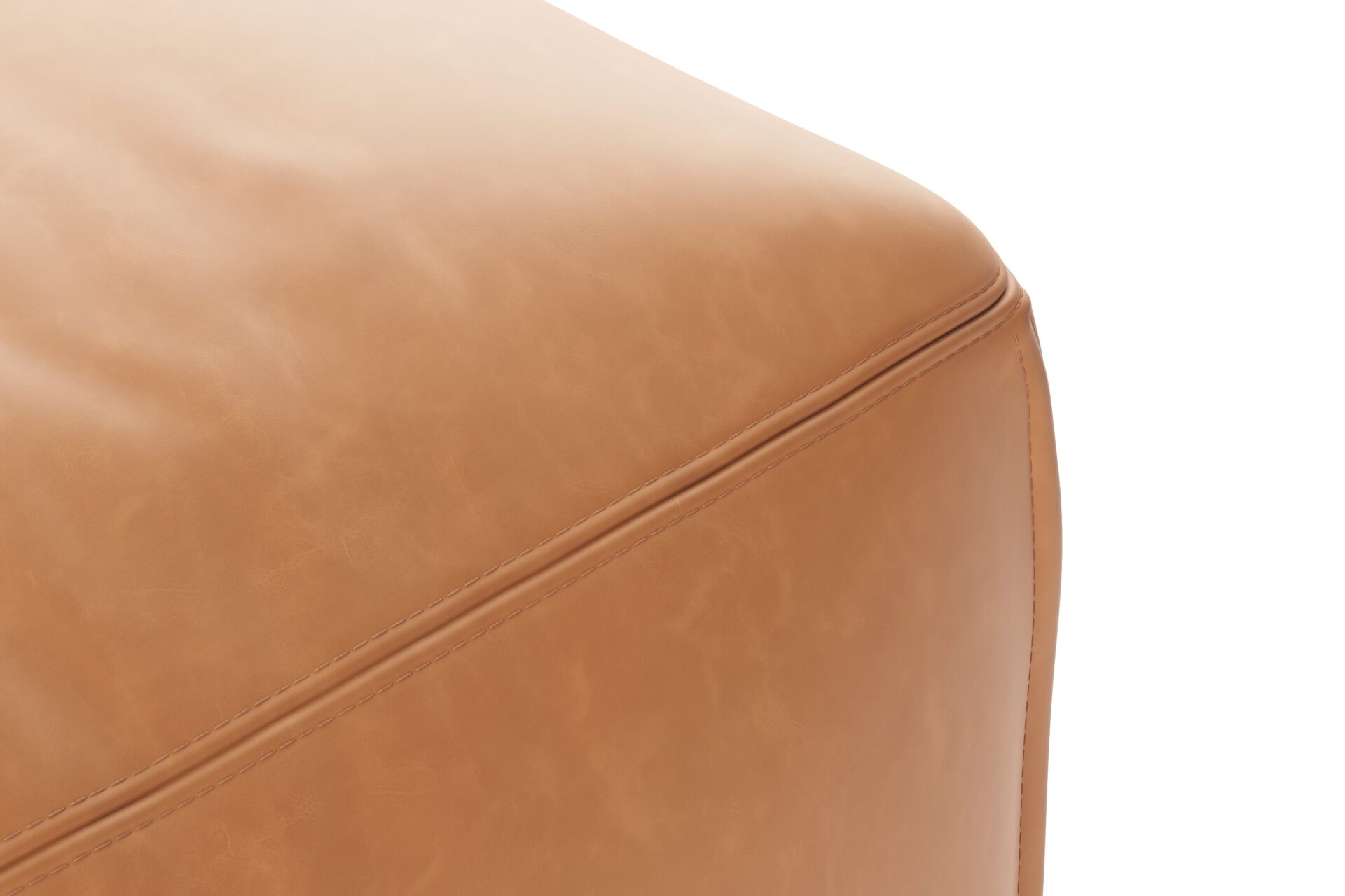Experience the versatile and stylish Le Mura Sectional collection, offering a comfortable seating solution with minimal maintenance. With a foam interior for deep comfort, soft geometric shapes in tan vegan leather provide enhanced relaxation. The sectional's modular design, featuring understated wooden legs and metal buckles, seamlessly adapts to any space, embodying a modern, luxurious finish.