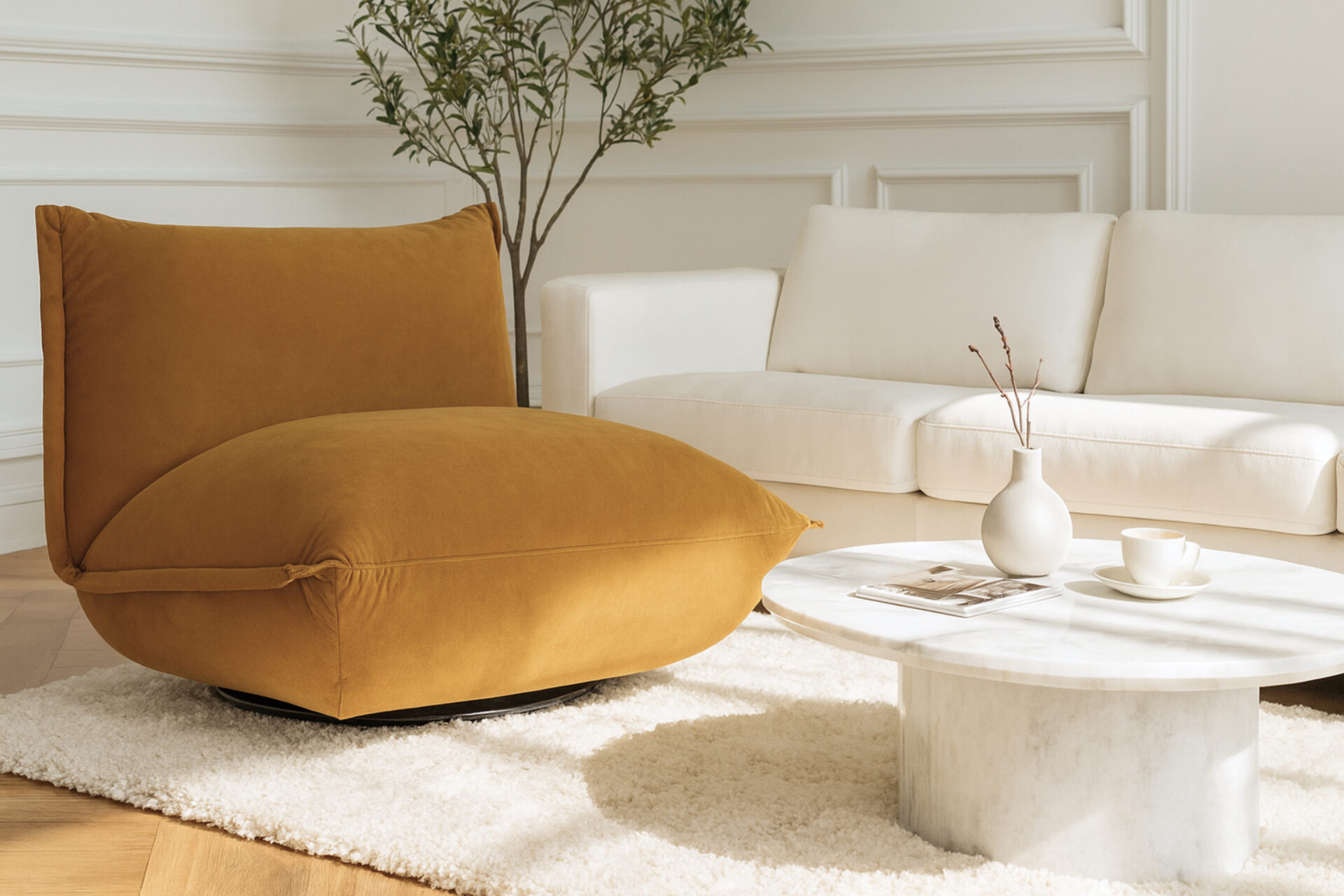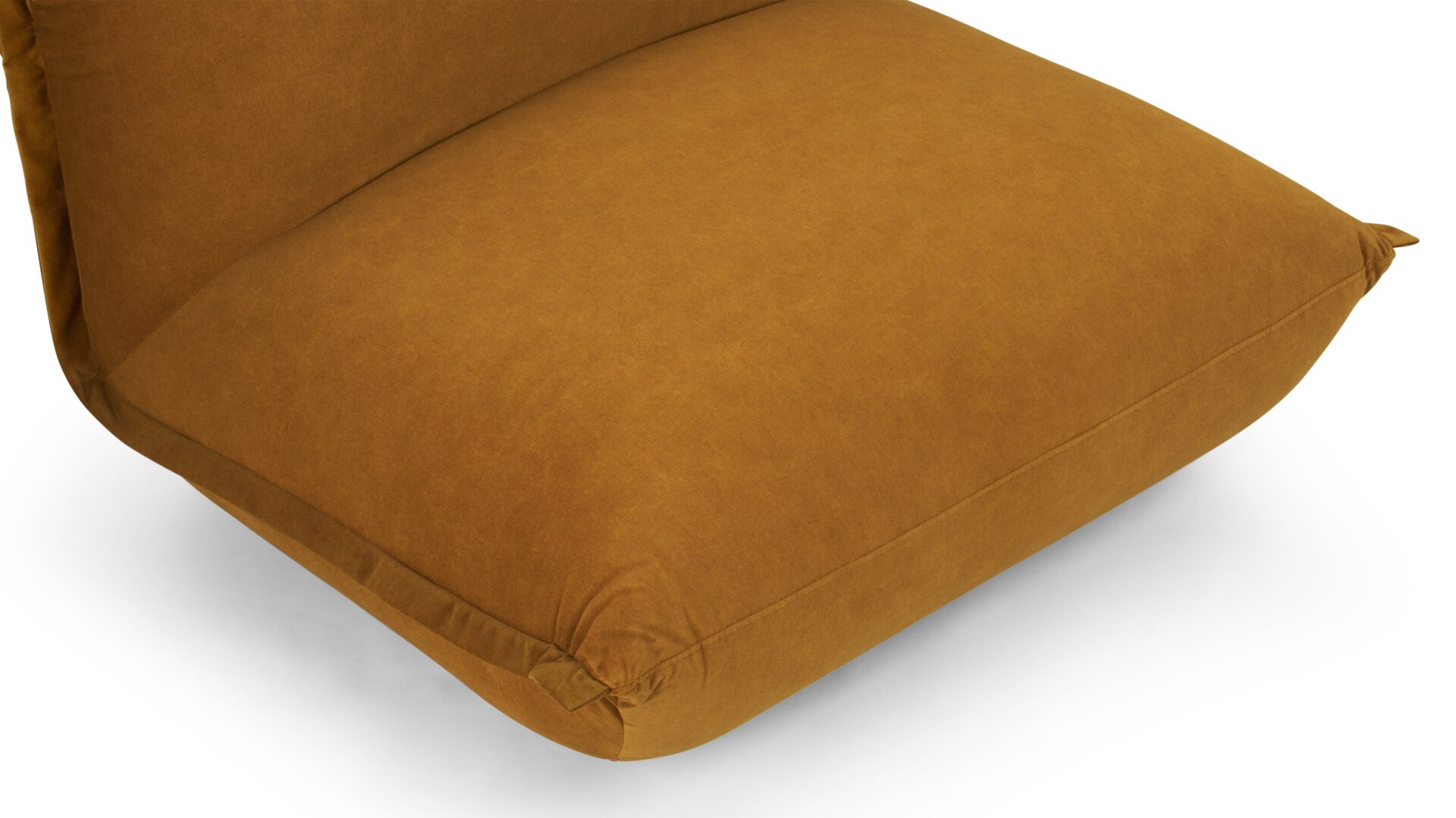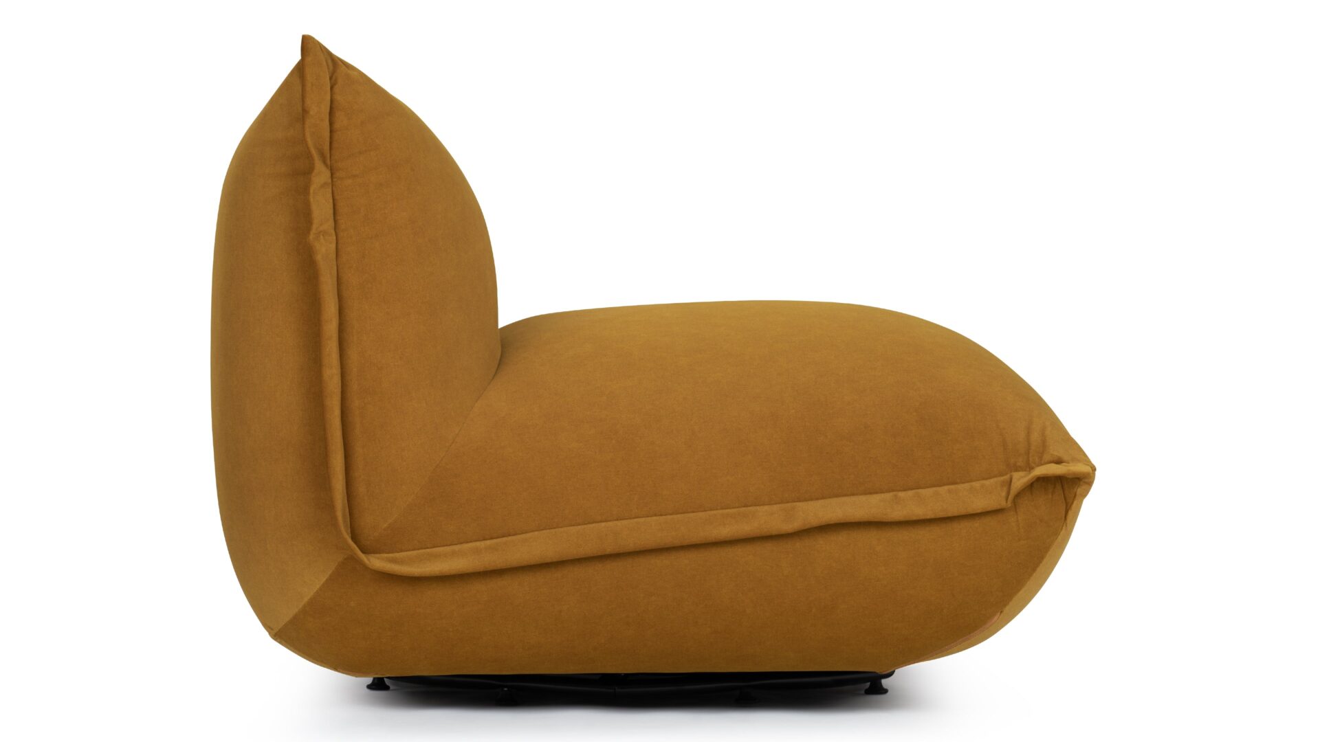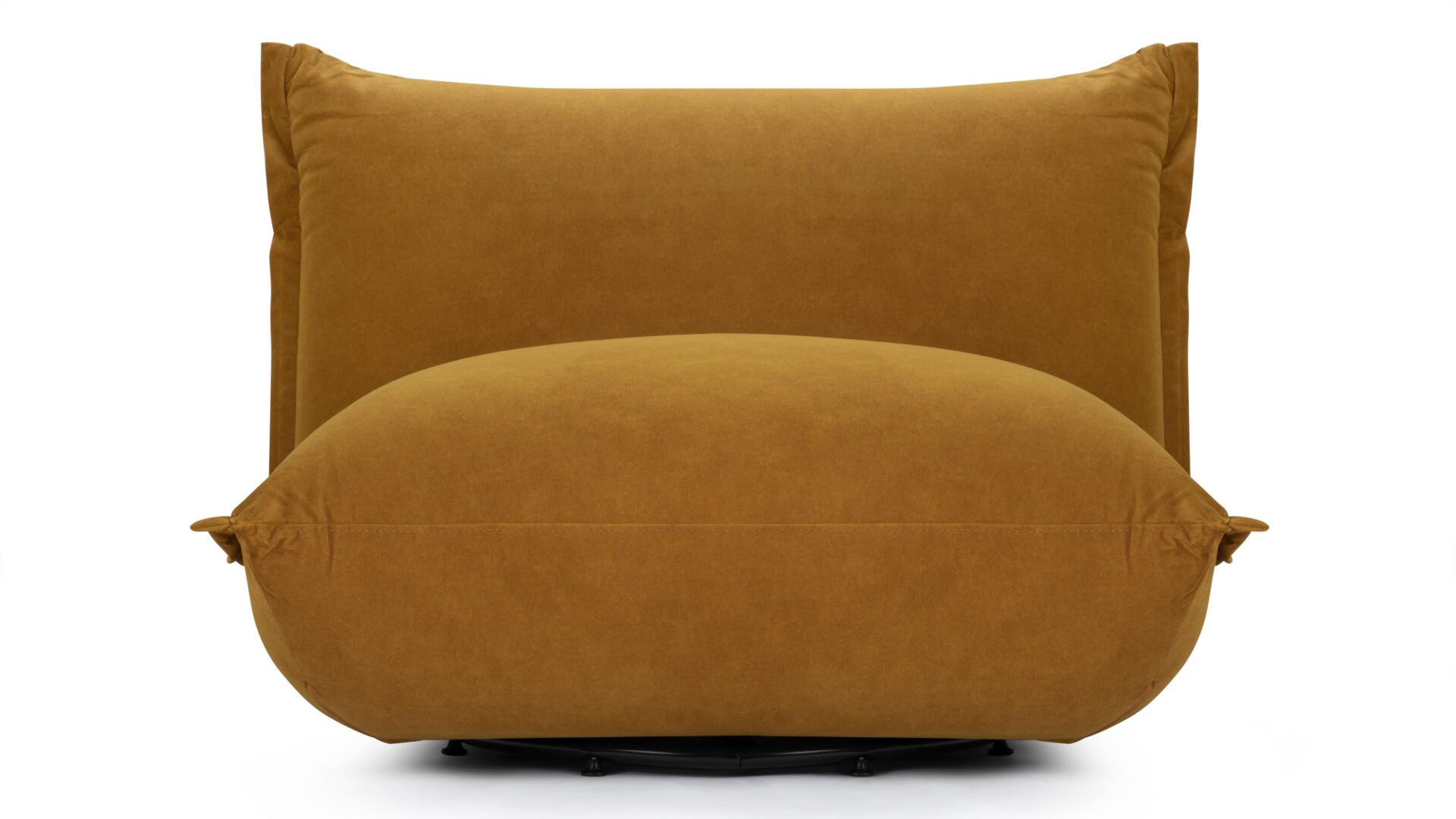 Discover the Lennox Swivel Lounge Chair, featuring low maintenance velvet upholstery available in a striking mustard hue, alongside other contemporary color options. Boasting a plush pillow design for sumptuous comfort, this chair showcases creased sections on each side reminiscent of a pillowcase. The swivel base comes in a sleek black finish, facilitating effortless rotation during use. With its armless, modern aesthetic, this chair is a captivating addition to any space. Perfect for a cozy reading corner or a secluded relaxation spot, it also lends itself well to group arrangements for a laid-back social area.