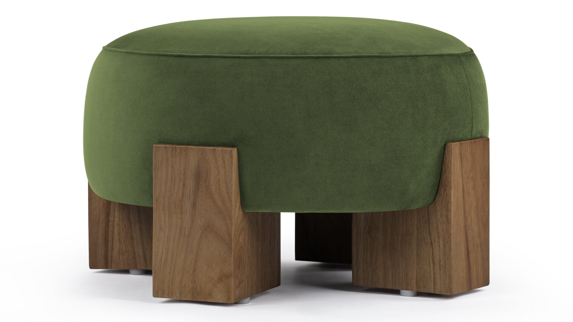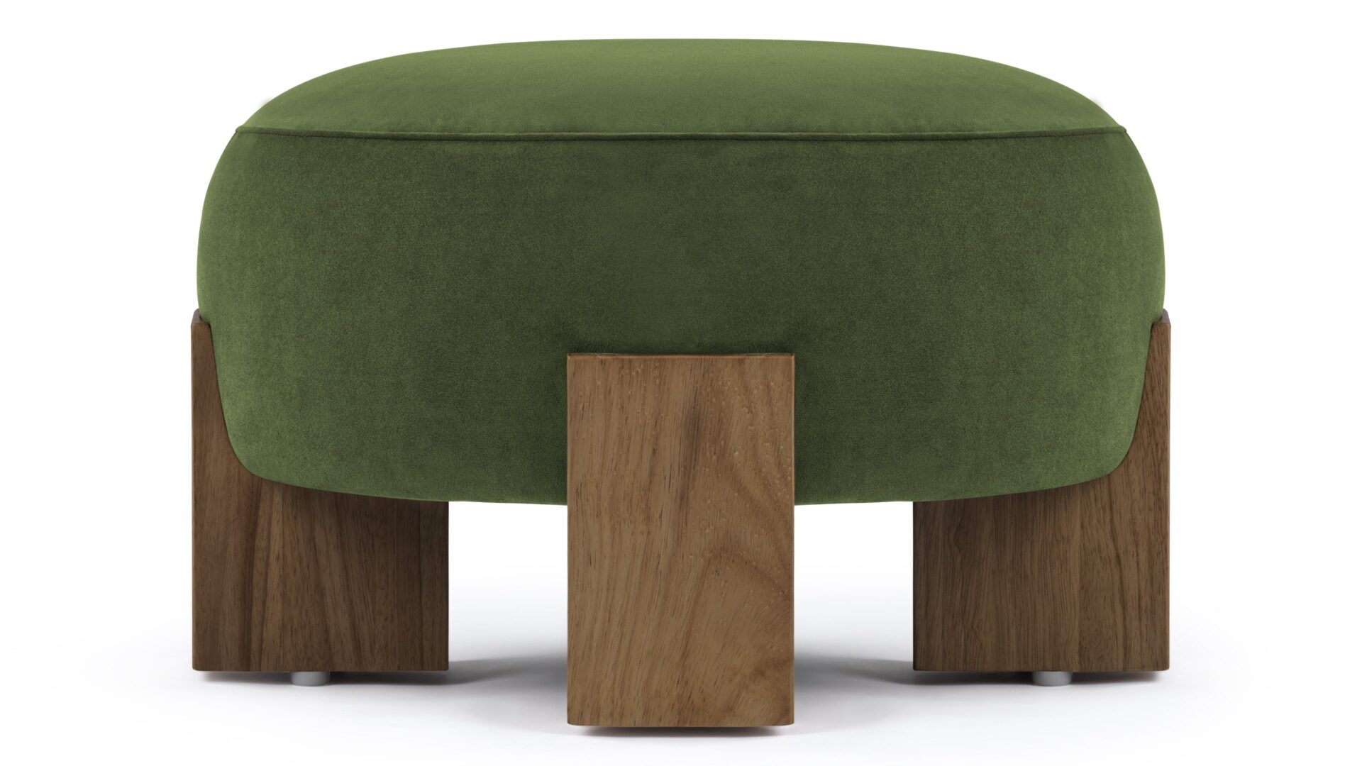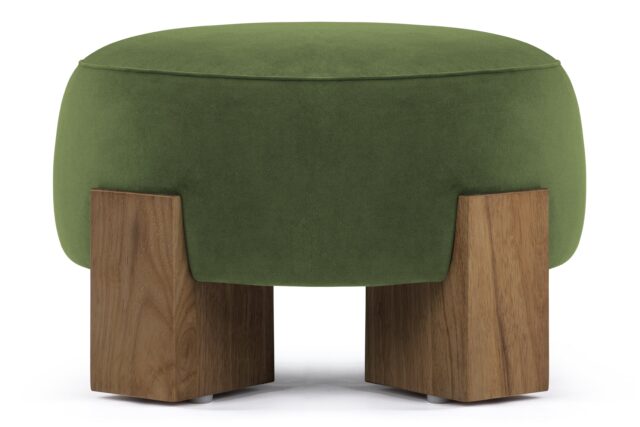 Experience a captivating juxtaposition of natural wood and luxurious material with the Liv Ottoman. Meticulously constructed with robust walnut supports, this piece features a substantial and durable frame, complemented by sumptuously textured fabric.