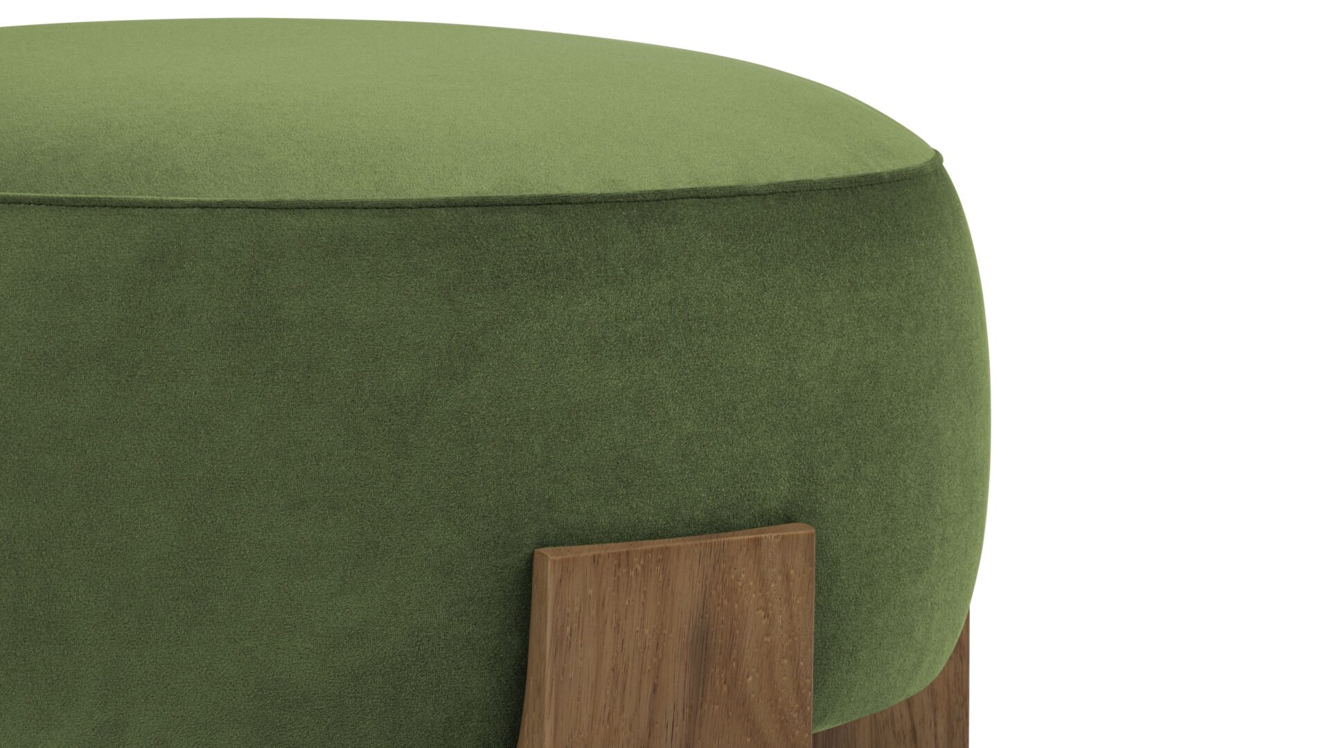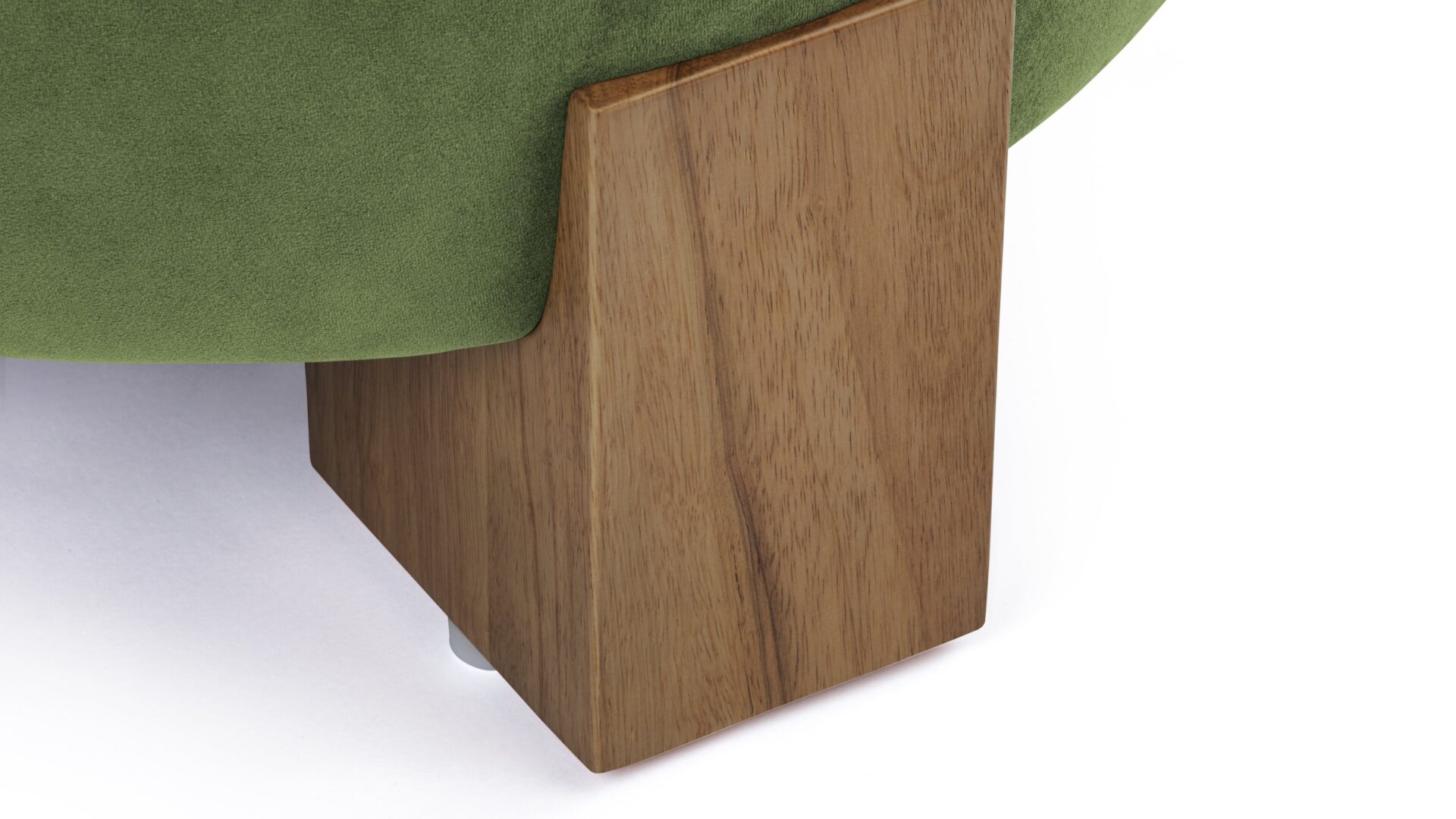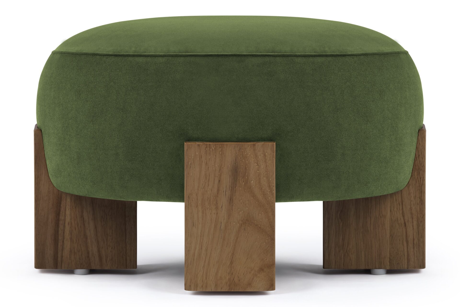 Experience a captivating juxtaposition of natural wood and luxurious material with the Liv Ottoman. Meticulously constructed with robust walnut supports, this piece features a substantial and durable frame, complemented by sumptuously textured fabric.