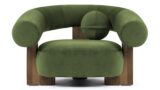 Experience the unique charm of a sculpted silhouette and a seamless fusion of dark walnut wood and plush upholstery with the Liv Ottoman. This piece radiates a daring yet whimsical vibe, making it an ideal companion for the eye-catching Liv Lounge Chair or any other furniture set you already own.