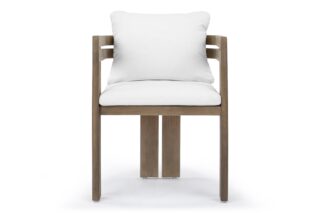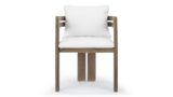Elevate your outdoor living space with the Lusso Outdoor Collection, inspired by midcentury modern elegance. Crafted from durable teak wood, the Lusso Outdoor Dining Chair in Weathered Teak with White Cushions embodies sophistication and resilience. Every detail is meticulously designed to enhance your outdoor area's allure and personality, creating a perfect blend of style and comfort for memorable gatherings.